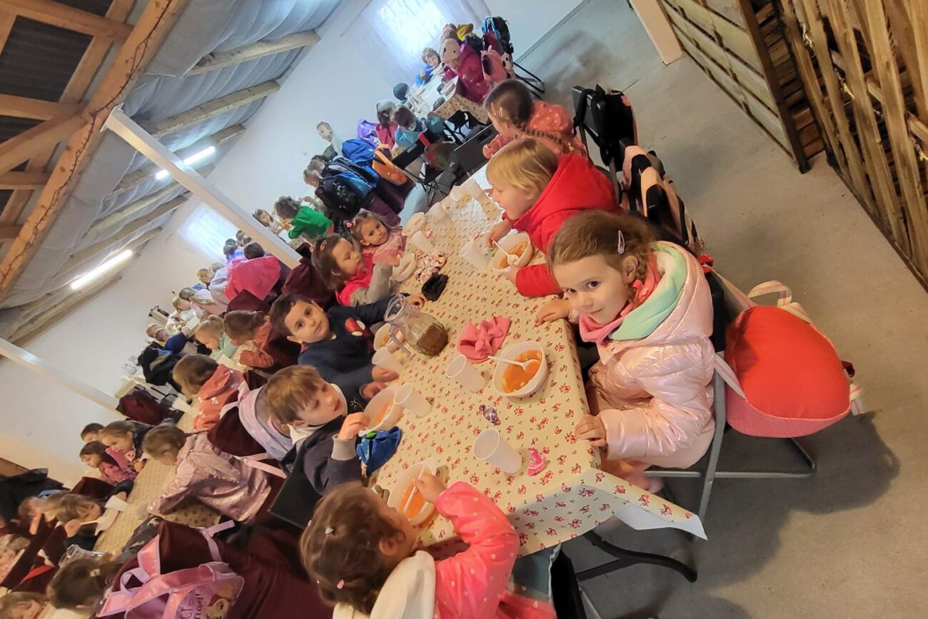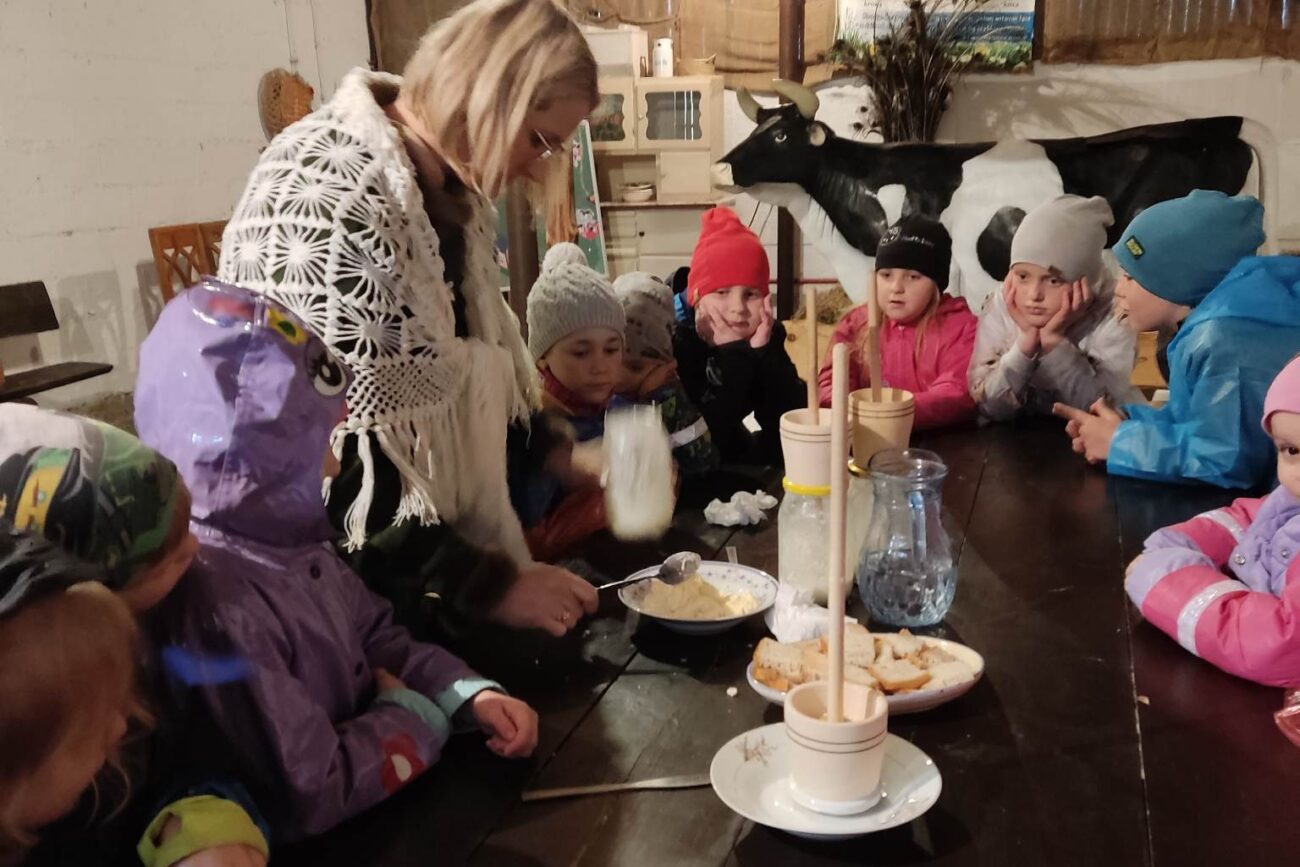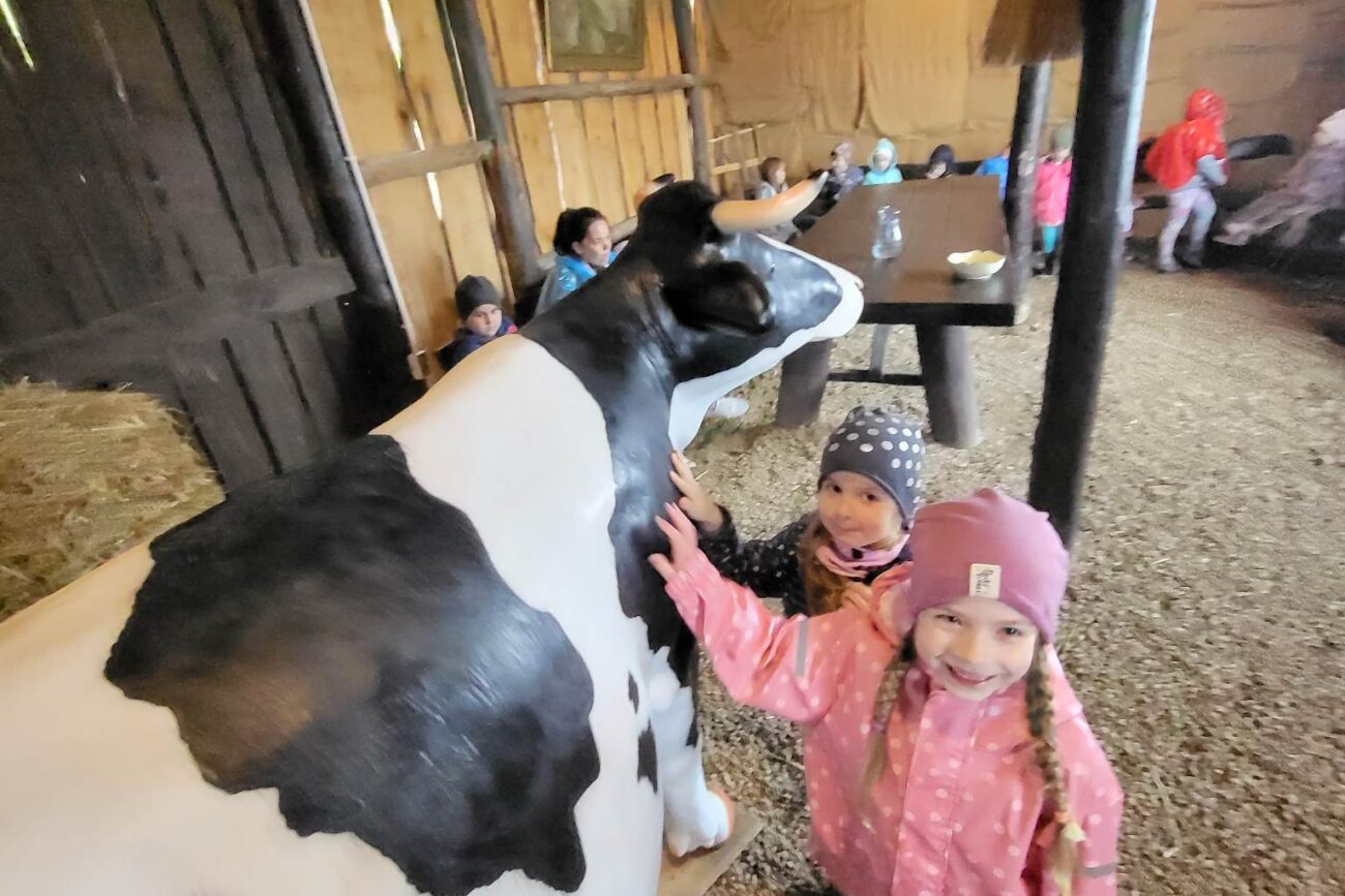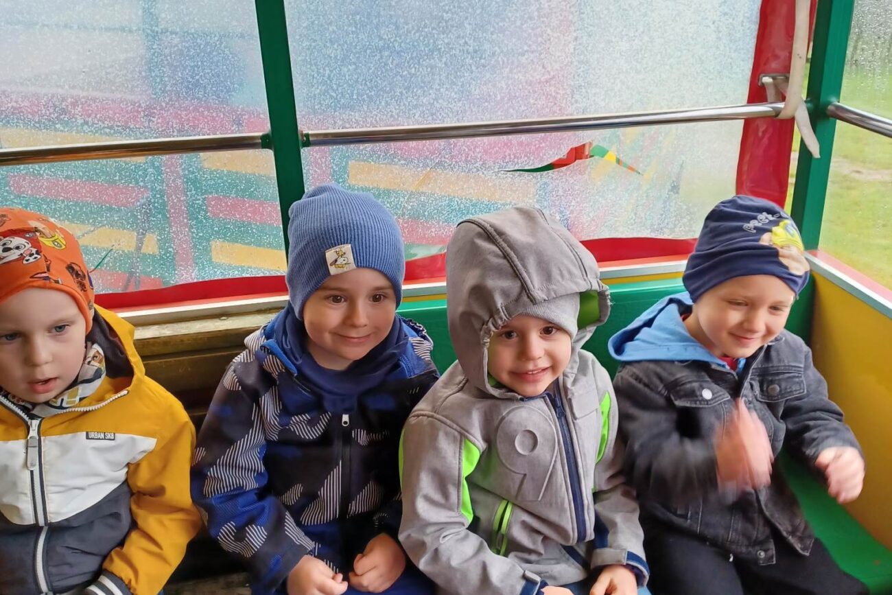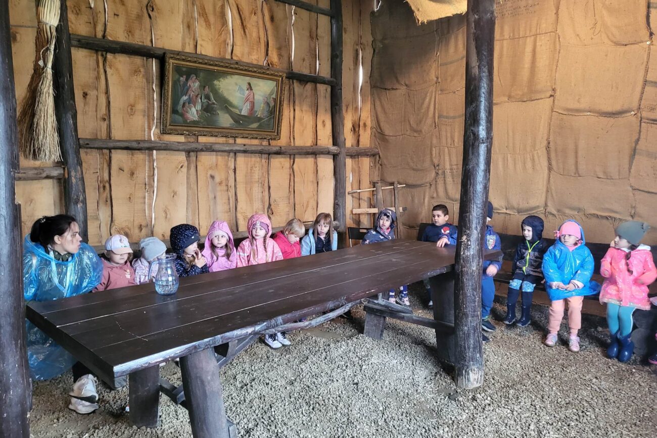Dnia 17.05.2023r. nasze przedszkolaki uczestniczyły w wycieczce do Agrogospodarstwa „Pod Skałką” w Przybynowie. Na miejscu czekała na nich ciepła herbata oraz słodki poczęstunek. Dzieci wraz z opiekunami zwiedzały okolice Agroskałki poprzez przejazd stylizowaną kolejką „Jurajski Ekspress”. Brały udział w warsztatach edukacyjnych pt. „Skąd się bierze mleko”, podczas których miały okazję doić sztuczną krowę oraz samodzielnie ubić masło i spróbować go. Zwiedzały skansen Wsi Jurajskiej, w tym chatę z XIX/XXw. wraz ze sprzętami użytkowymi wykorzystywanymi w codziennym życiu. Na zakończenie wycieczki zjadły pyszną zupę pomidorową oraz deser – watę cukrową. Choć pogoda nie dopisała, wszyscy świetnie się bawili.