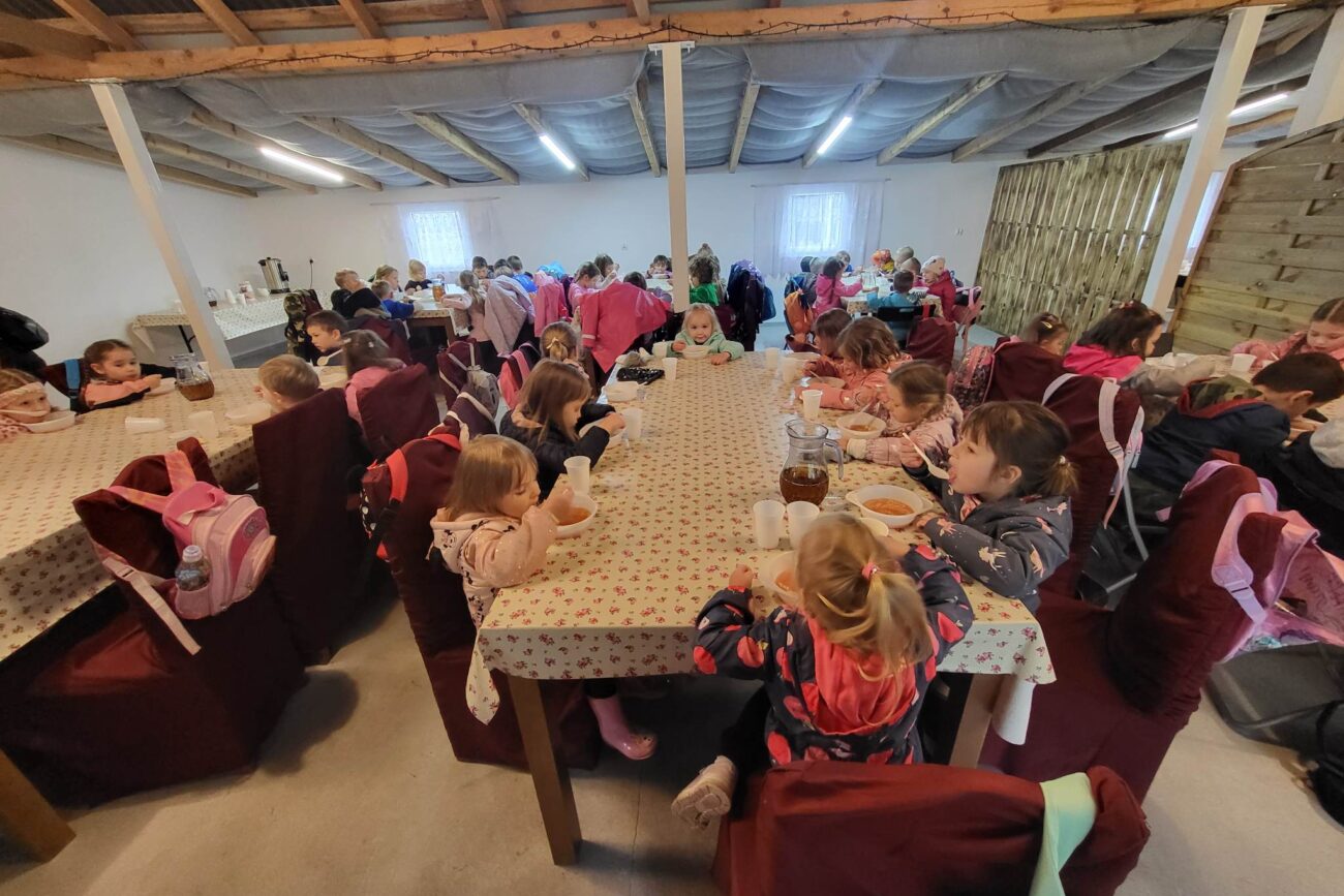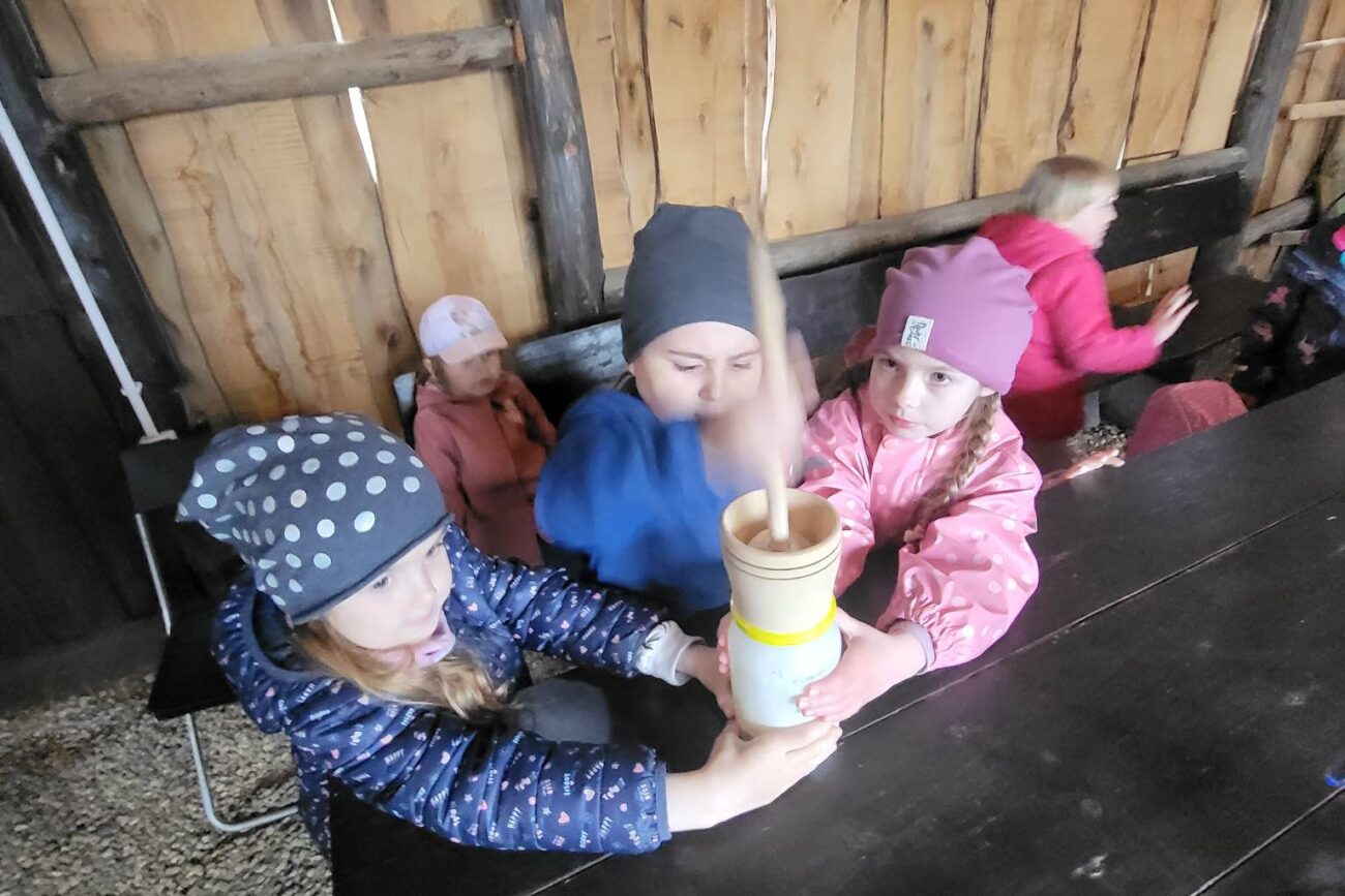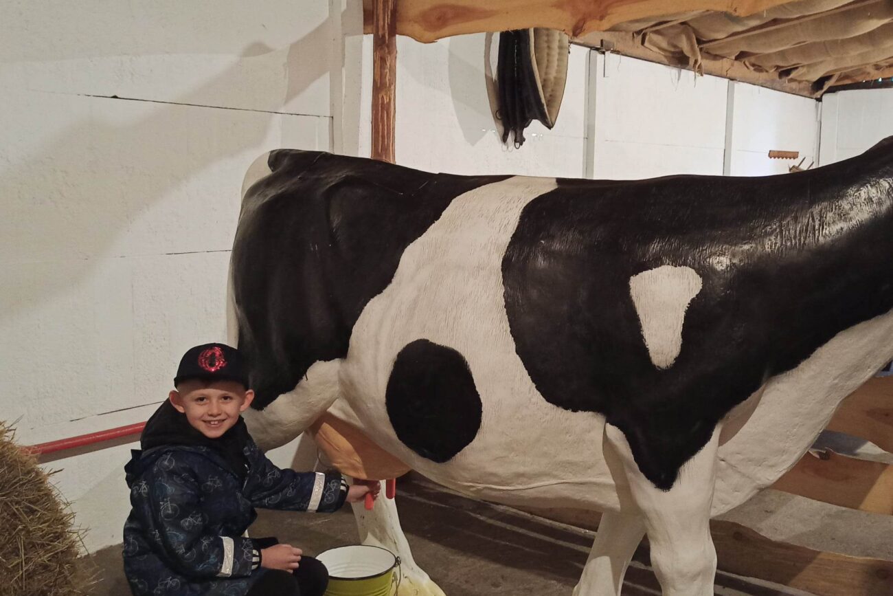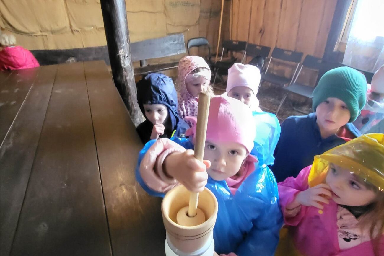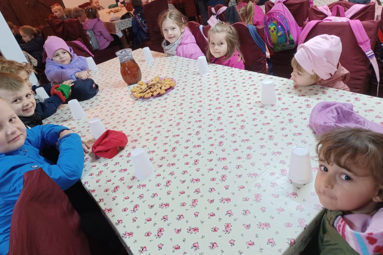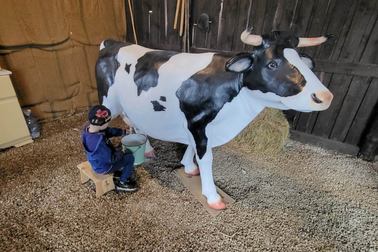 Dnia 17.05.2023r. nasze przedszkolaki uczestniczyły w wycieczce do Agrogospodarstwa „Pod Skałką” w Przybynowie. Na miejscu czekała na nich ciepła herbata oraz słodki poczęstunek. Dzieci wraz z opiekunami zwiedzały okolice Agroskałki poprzez przejazd stylizowaną kolejką „Jurajski Ekspress”. Brały udział w warsztatach edukacyjnych pt. „Skąd się bierze mleko”, podczas których miały okazję doić sztuczną krowę oraz samodzielnie ubić masło i spróbować go. Zwiedzały skansen Wsi Jurajskiej, w tym chatę z XIX/XXw. wraz ze sprzętami użytkowymi wykorzystywanymi w codziennym życiu. Na zakończenie wycieczki zjadły pyszną zupę pomidorową oraz deser – watę cukrową. Choć pogoda nie dopisała, wszyscy świetnie się bawili.