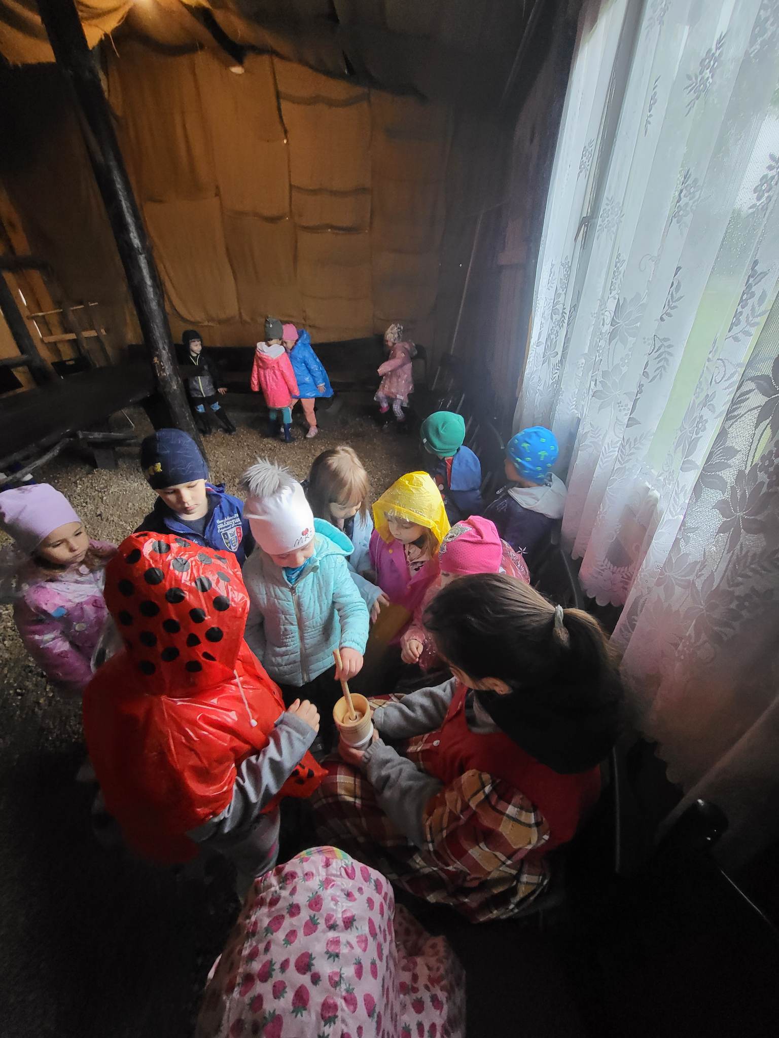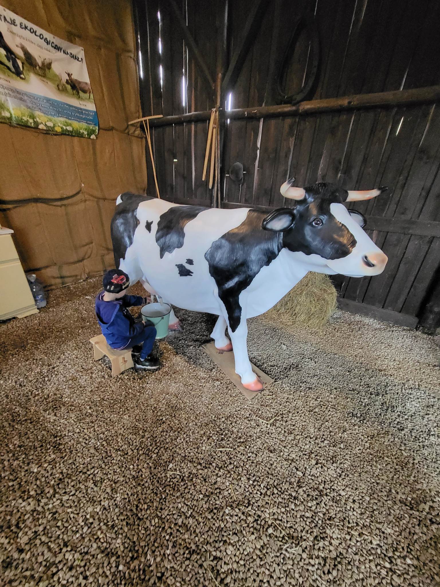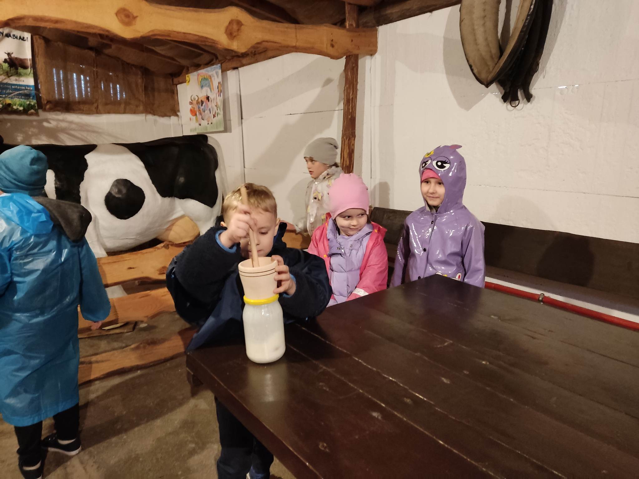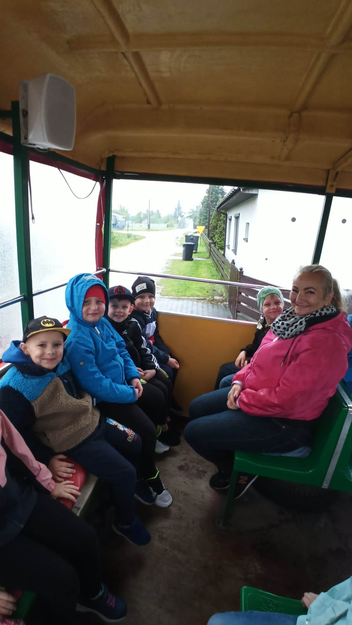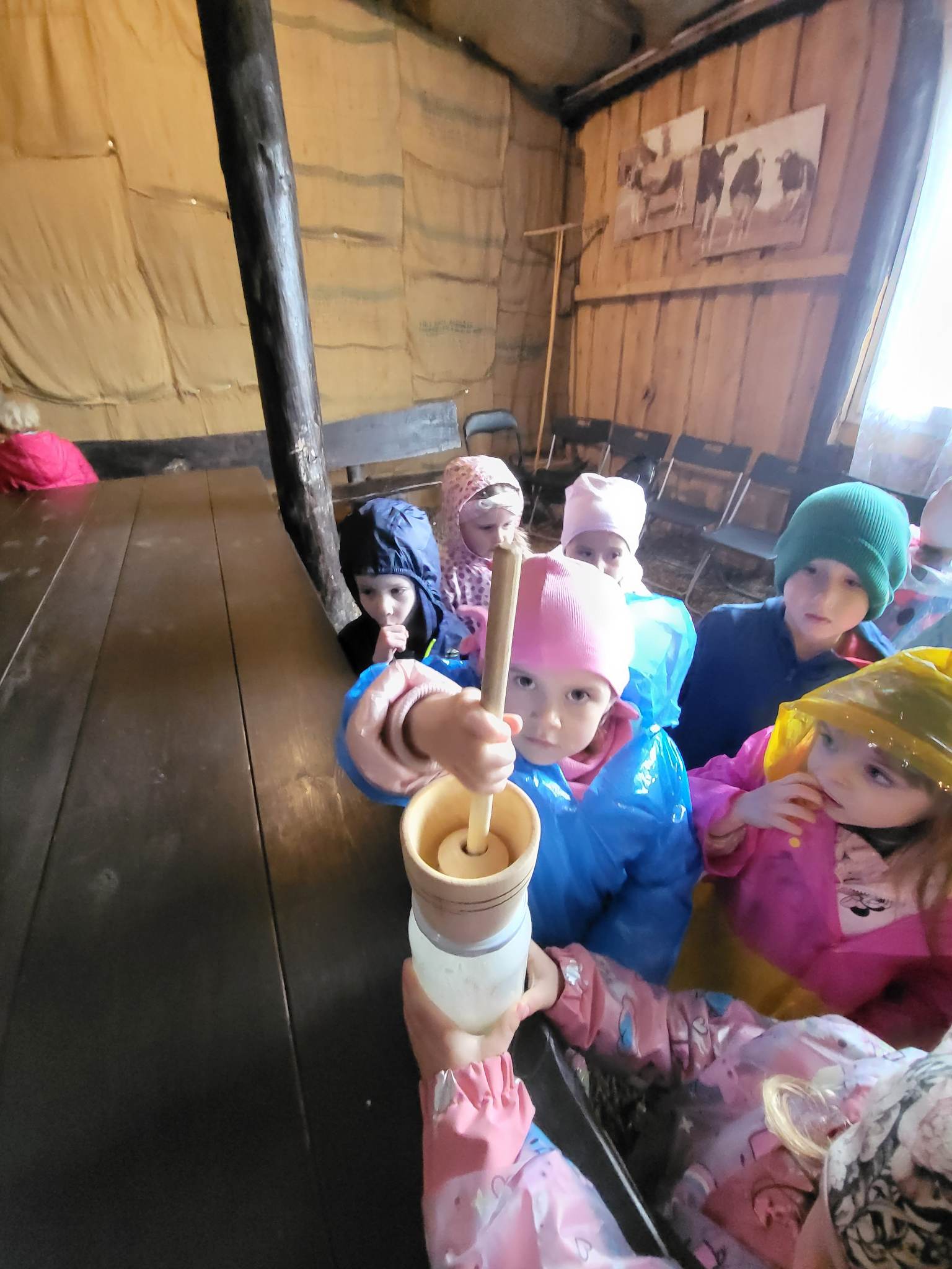 Dnia 17.05.2023r. nasze przedszkolaki uczestniczyły w wycieczce do Agrogospodarstwa „Pod Skałką” w Przybynowie. Na miejscu czekała na nich ciepła herbata oraz słodki poczęstunek. Dzieci wraz z opiekunami zwiedzały okolice Agroskałki poprzez przejazd stylizowaną kolejką „Jurajski Ekspress”. Brały udział w warsztatach edukacyjnych pt. „Skąd się bierze mleko”, podczas których miały okazję doić sztuczną krowę oraz samodzielnie ubić masło i spróbować go. Zwiedzały skansen Wsi Jurajskiej, w tym chatę z XIX/XXw. wraz ze sprzętami użytkowymi wykorzystywanymi w codziennym życiu. Na zakończenie wycieczki zjadły pyszną zupę pomidorową oraz deser – watę cukrową. Choć pogoda nie dopisała, wszyscy świetnie się bawili.