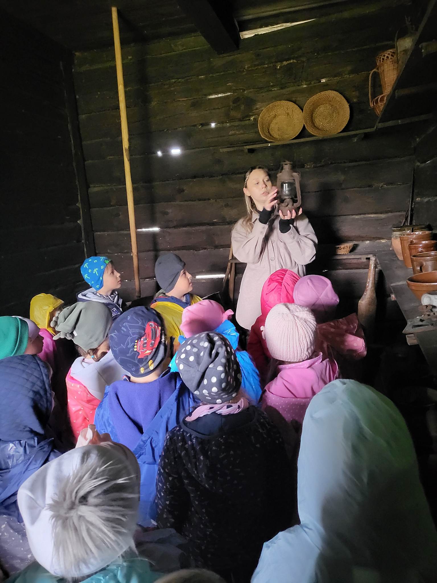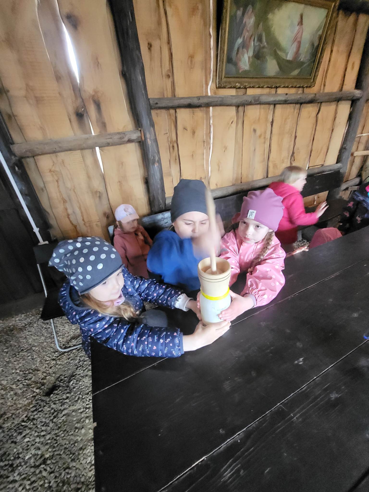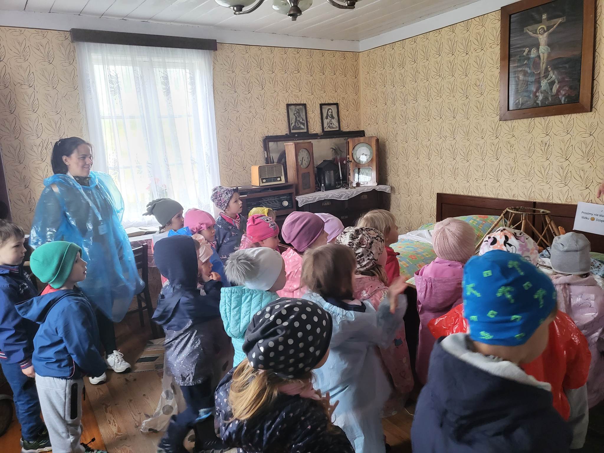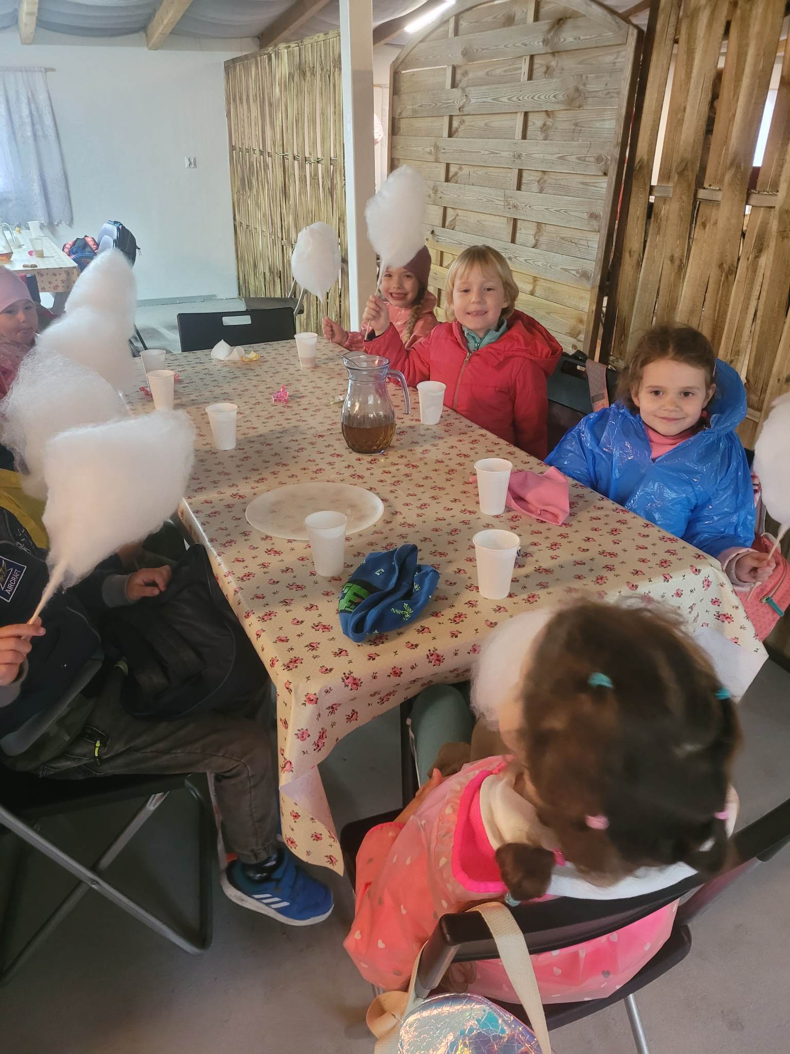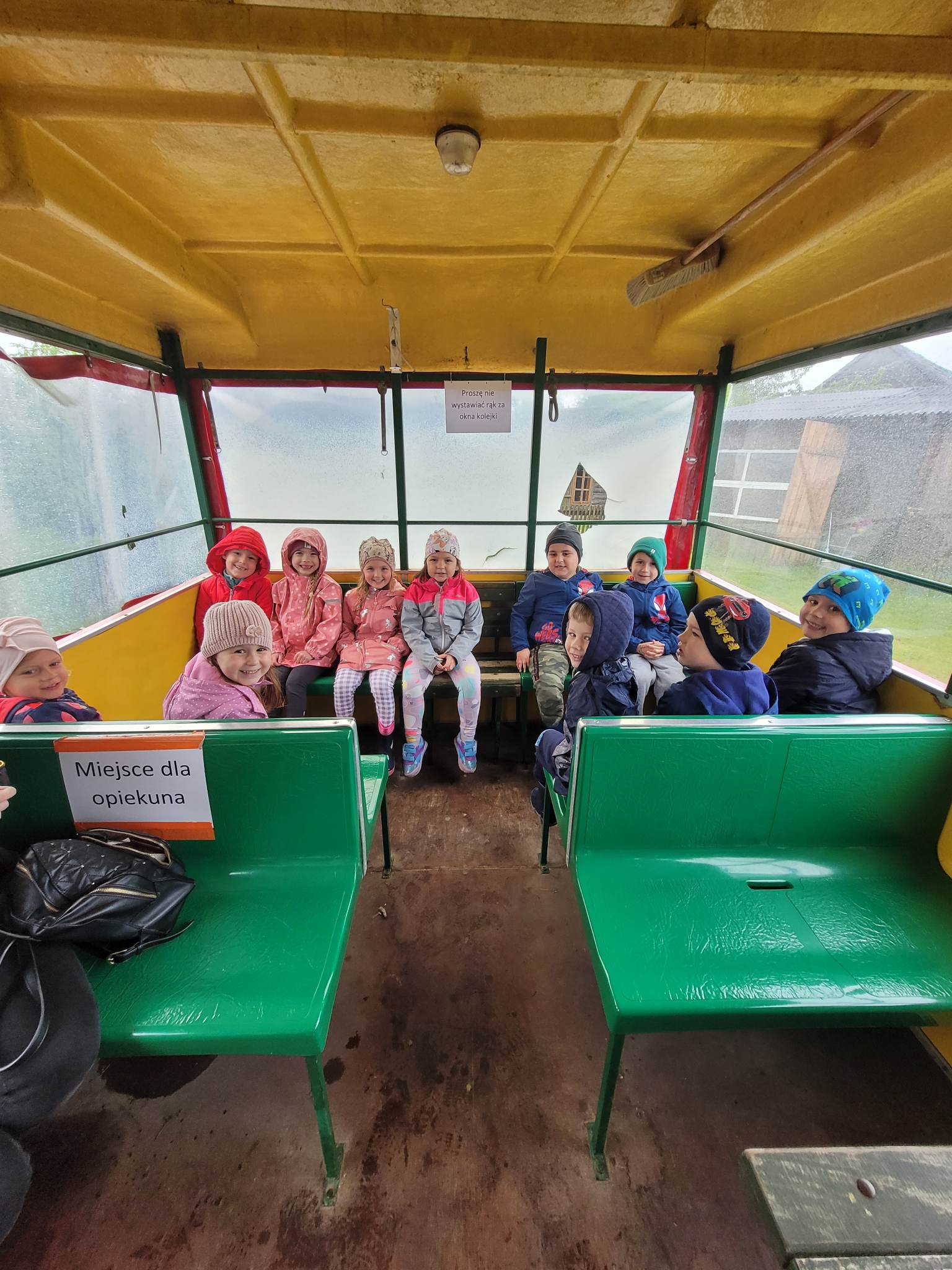 Dnia 17.05.2023r. nasze przedszkolaki uczestniczyły w wycieczce do Agrogospodarstwa „Pod Skałką” w Przybynowie. Na miejscu czekała na nich ciepła herbata oraz słodki poczęstunek. Dzieci wraz z opiekunami zwiedzały okolice Agroskałki poprzez przejazd stylizowaną kolejką „Jurajski Ekspress”. Brały udział w warsztatach edukacyjnych pt. „Skąd się bierze mleko”, podczas których miały okazję doić sztuczną krowę oraz samodzielnie ubić masło i spróbować go. Zwiedzały skansen Wsi Jurajskiej, w tym chatę z XIX/XXw. wraz ze sprzętami użytkowymi wykorzystywanymi w codziennym życiu. Na zakończenie wycieczki zjadły pyszną zupę pomidorową oraz deser – watę cukrową. Choć pogoda nie dopisała, wszyscy świetnie się bawili.