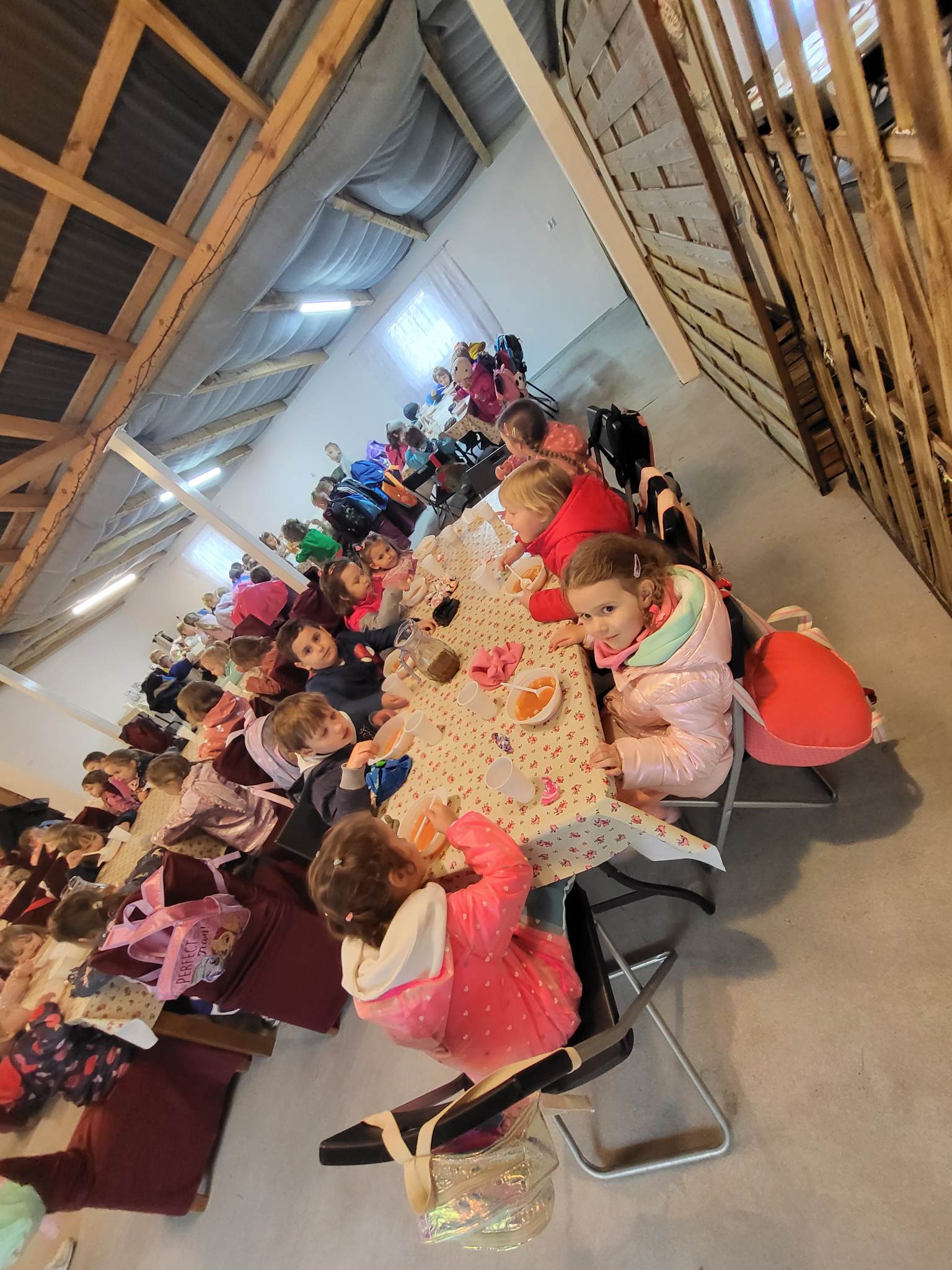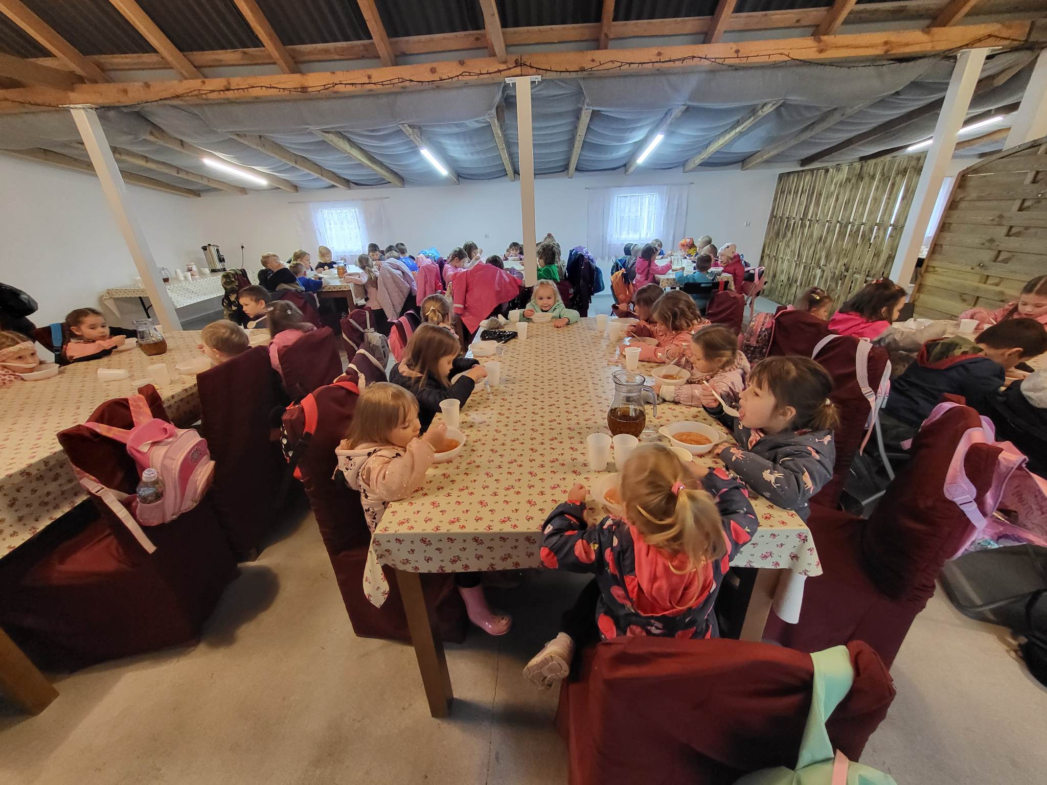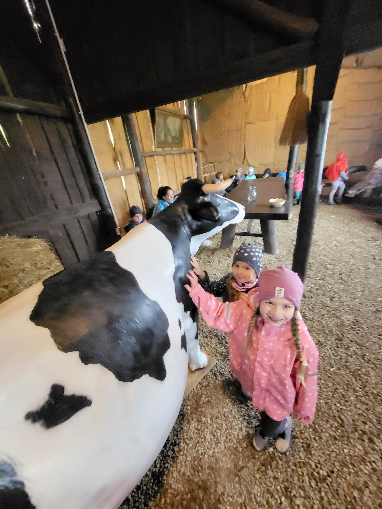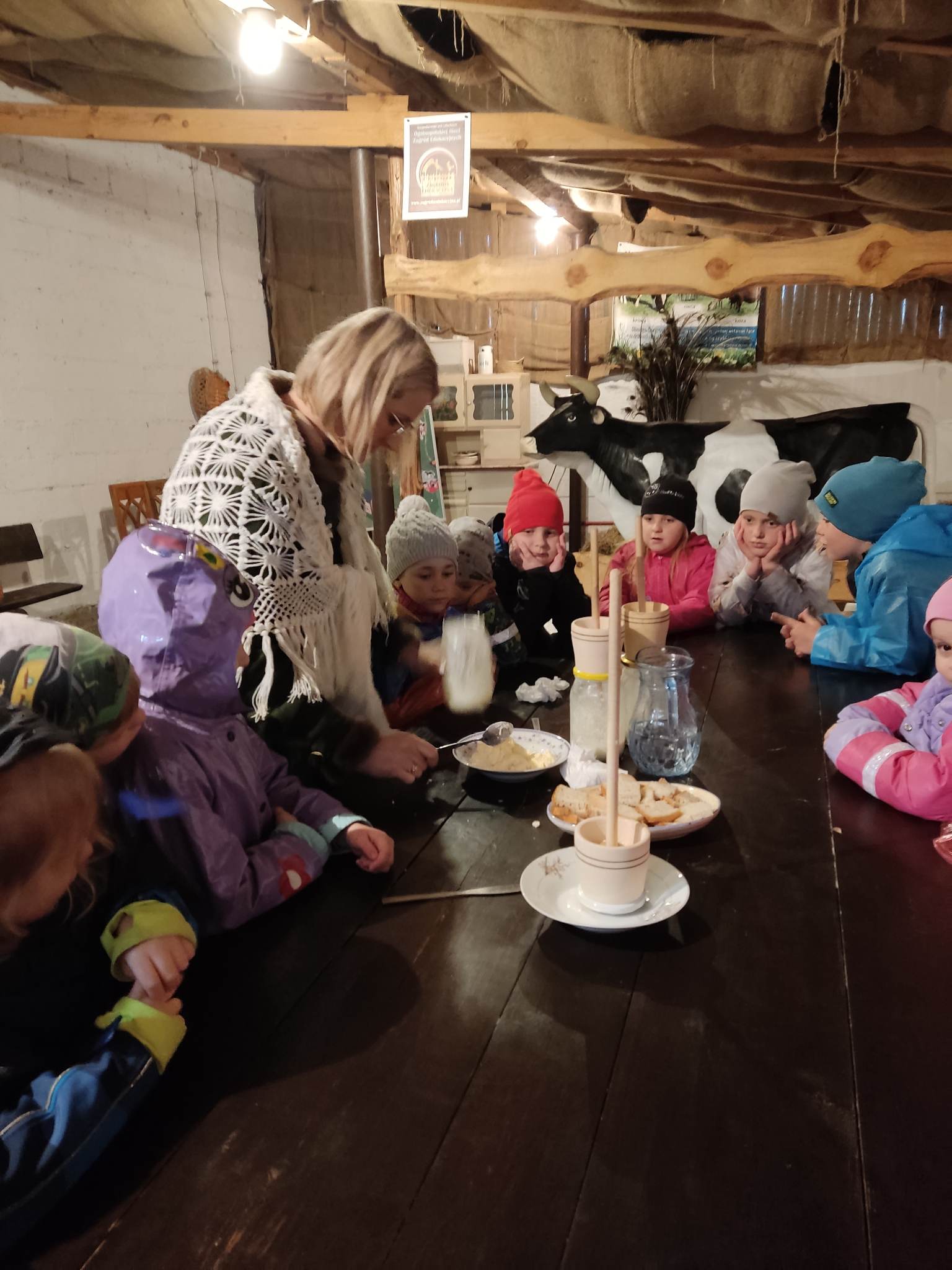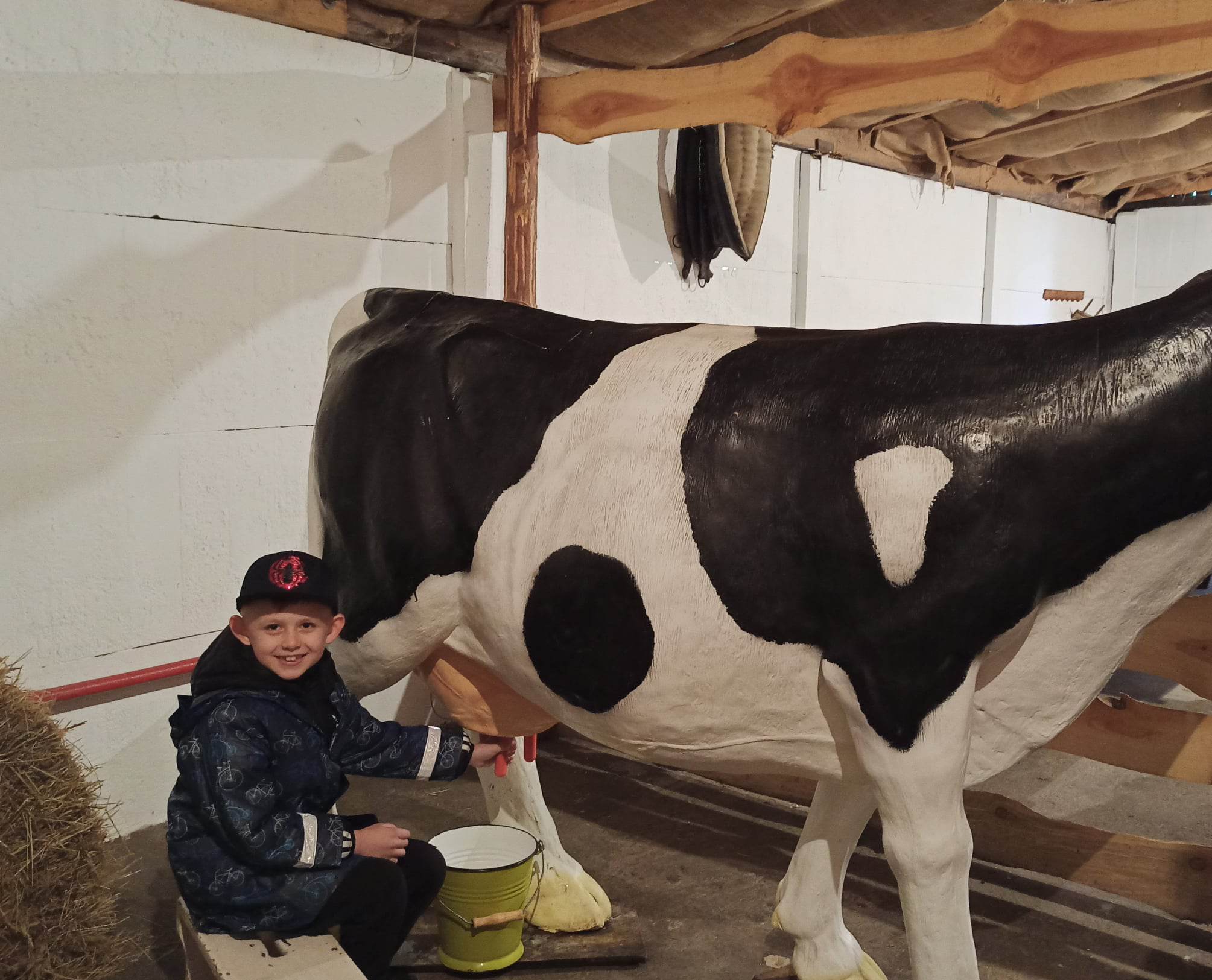 Dnia 17.05.2023r. nasze przedszkolaki uczestniczyły w wycieczce do Agrogospodarstwa „Pod Skałką” w Przybynowie. Na miejscu czekała na nich ciepła herbata oraz słodki poczęstunek. Dzieci wraz z opiekunami zwiedzały okolice Agroskałki poprzez przejazd stylizowaną kolejką „Jurajski Ekspress”. Brały udział w warsztatach edukacyjnych pt. „Skąd się bierze mleko”, podczas których miały okazję doić sztuczną krowę oraz samodzielnie ubić masło i spróbować go. Zwiedzały skansen Wsi Jurajskiej, w tym chatę z XIX/XXw. wraz ze sprzętami użytkowymi wykorzystywanymi w codziennym życiu. Na zakończenie wycieczki zjadły pyszną zupę pomidorową oraz deser – watę cukrową. Choć pogoda nie dopisała, wszyscy świetnie się bawili.