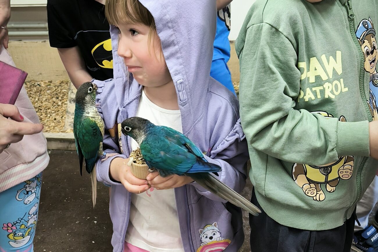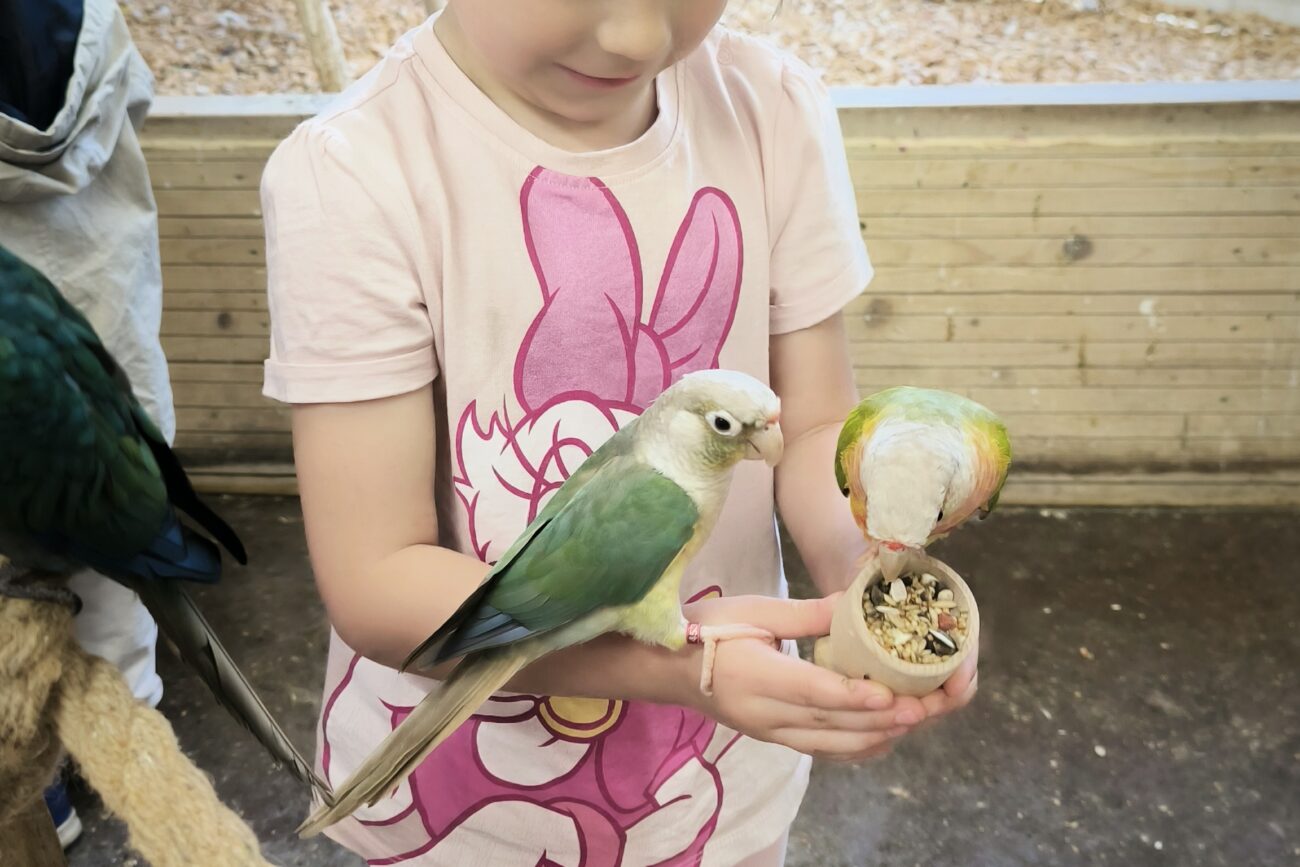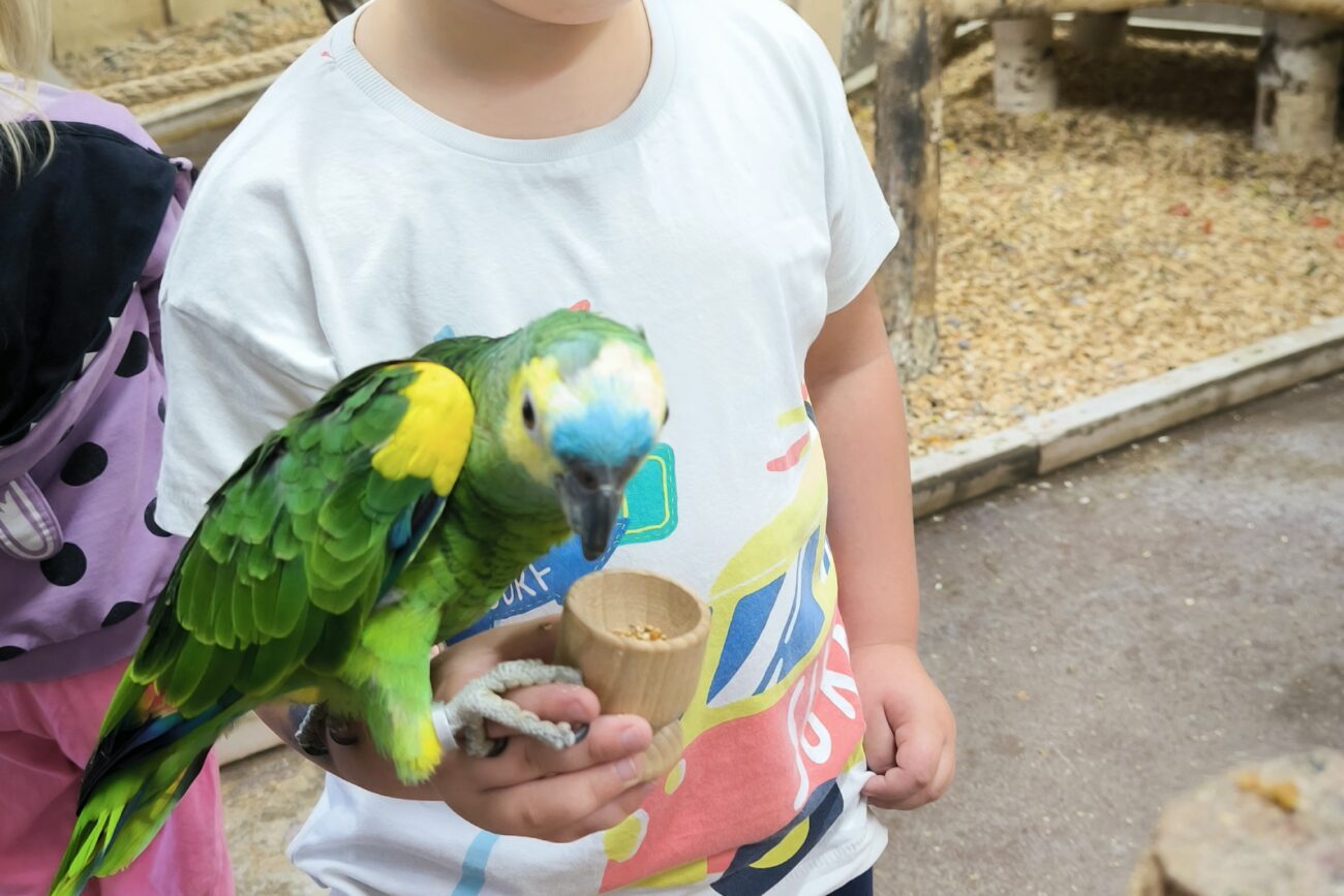 Dzieci mogły posłuchać jak papugi skrzeczą, a nawet jak mówią. Ponadto miały możliwość nakarmienia papug, specjalnym pokarmem. Papużki były bardzo zaczepne i towarzyskie.