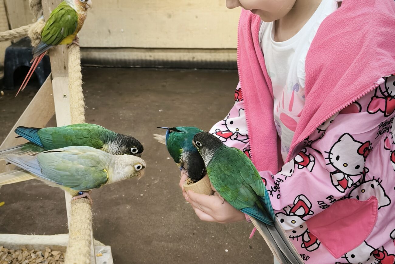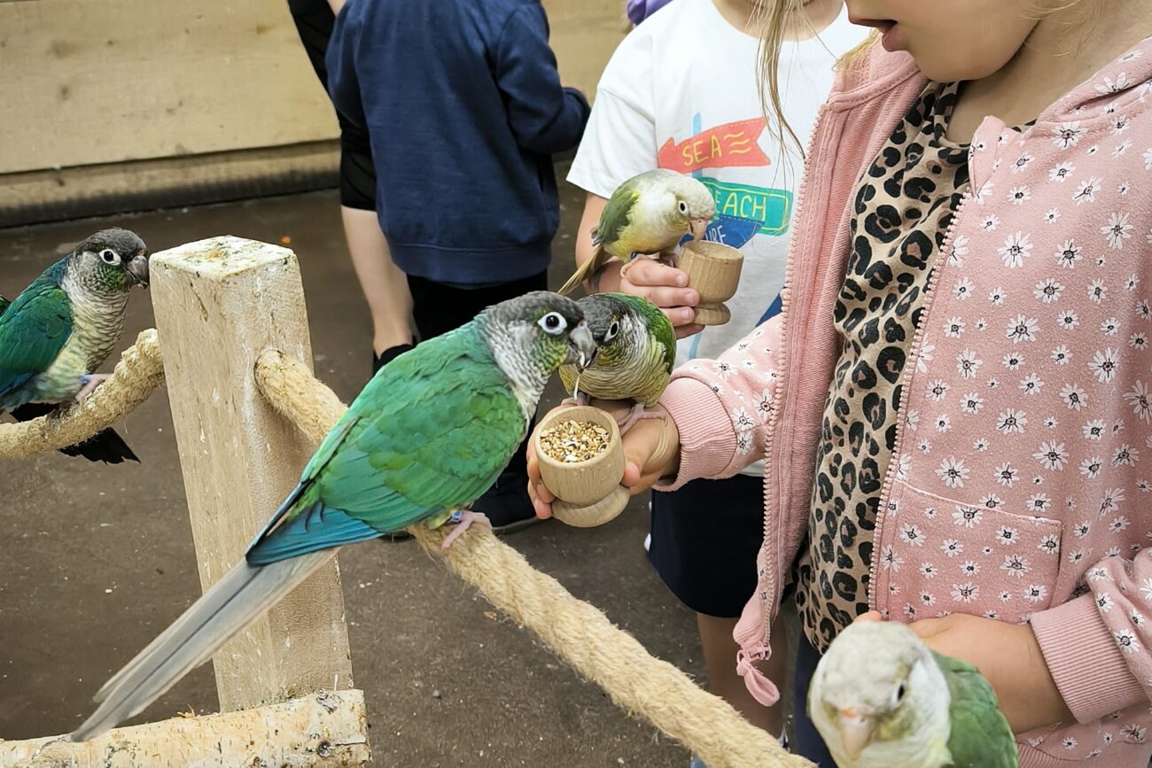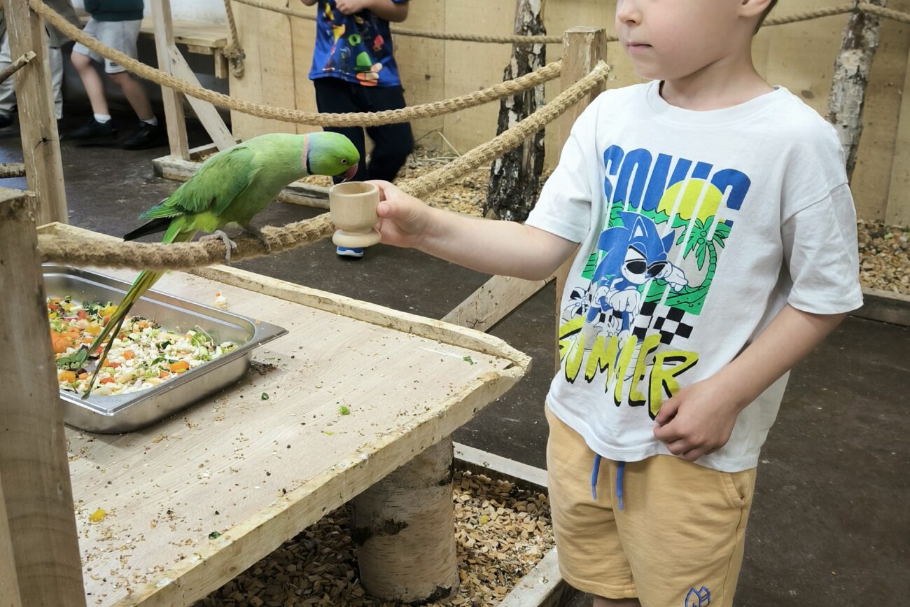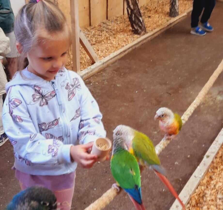 Dzieci mogły posłuchać jak papugi skrzeczą, a nawet jak mówią. Ponadto miały możliwość nakarmienia papug, specjalnym pokarmem. Papużki były bardzo zaczepne i towarzyskie.