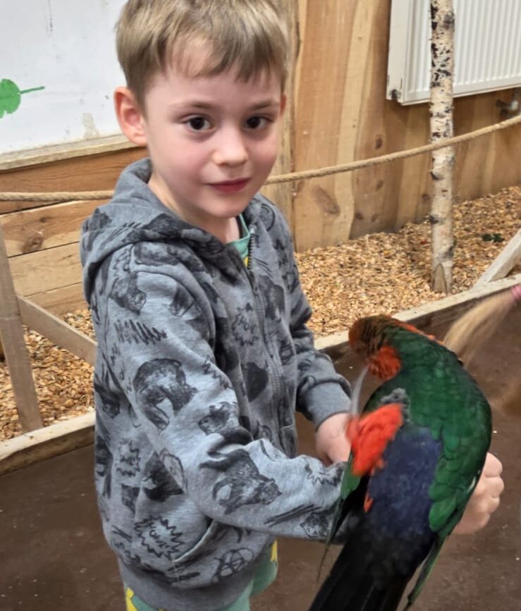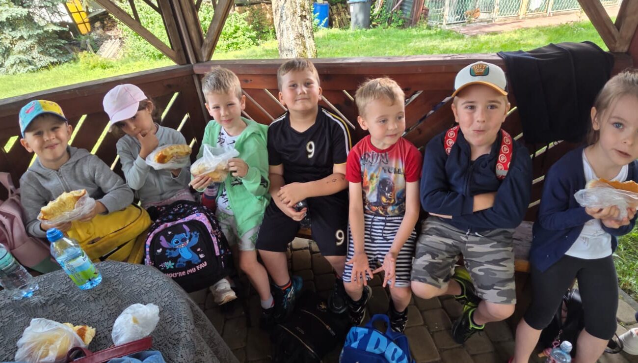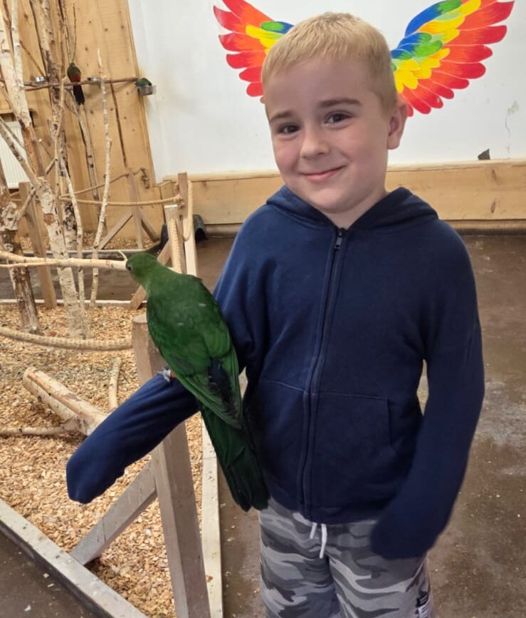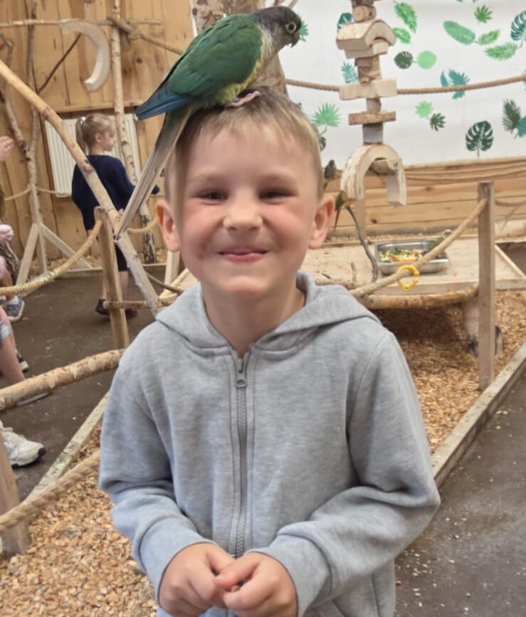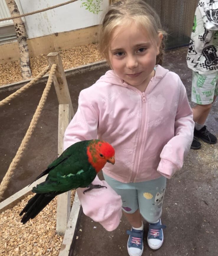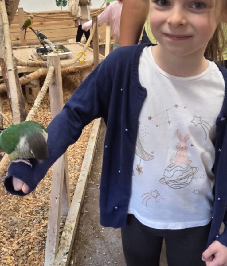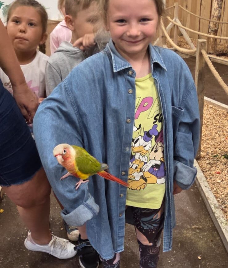 Dnia 06.06.25 wyruszyliśmy z naszego przedszkola do kolorowego świata papug – papugarni „JuRajskie Ptaki” w Żarkach.