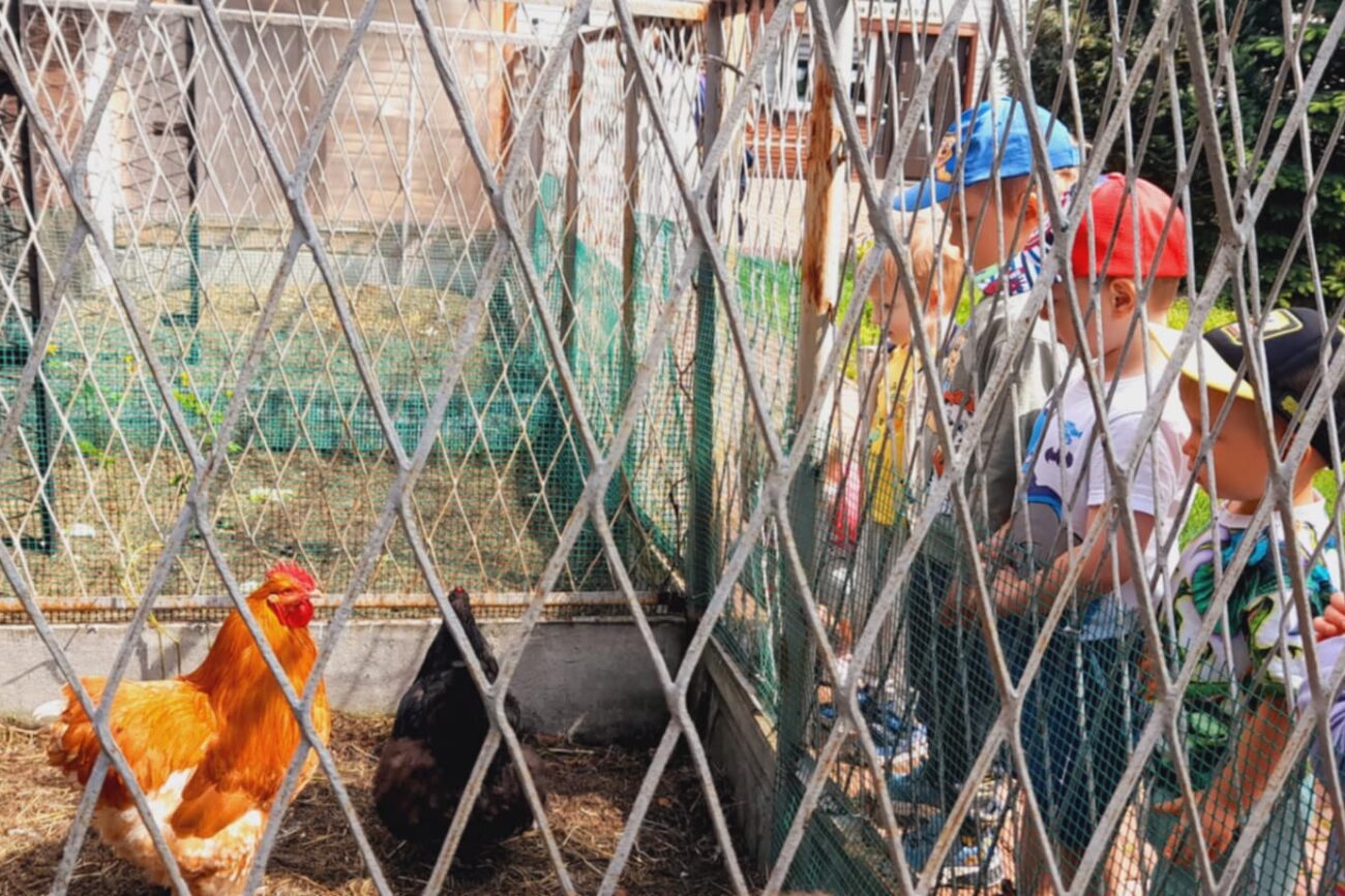 Na zewnątrz przygotowana jest woliera dla gołębi, gdzie żyje około 40 gołębi ozdobnych. Obok mieszkają też niewielkie kury Silki.