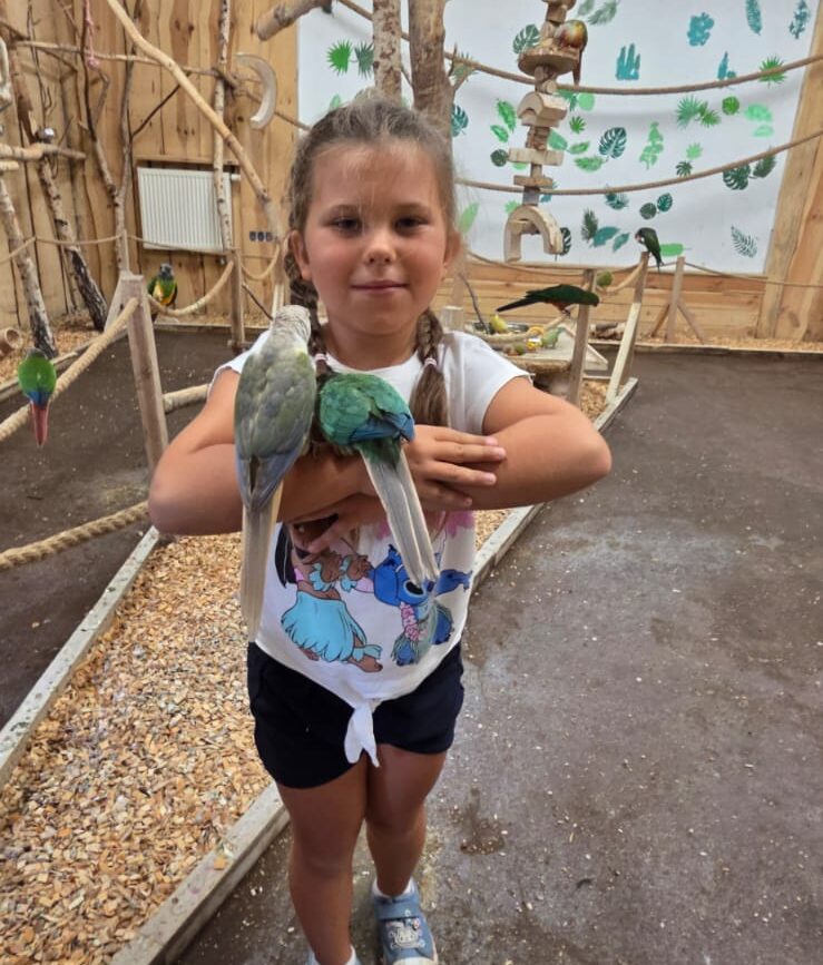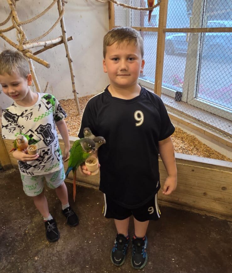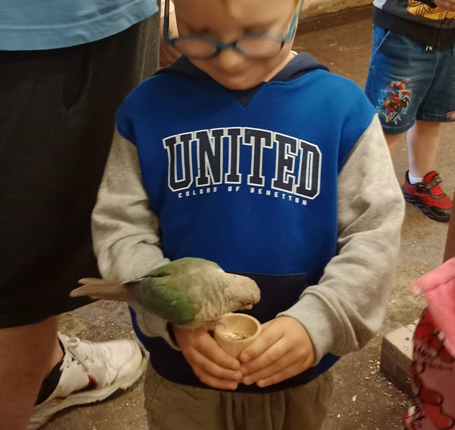Chętnie podlatywały do dzieci, siadały na ramionach, rękach, a co niektórym papugi weszły nawet na głowę 🙂