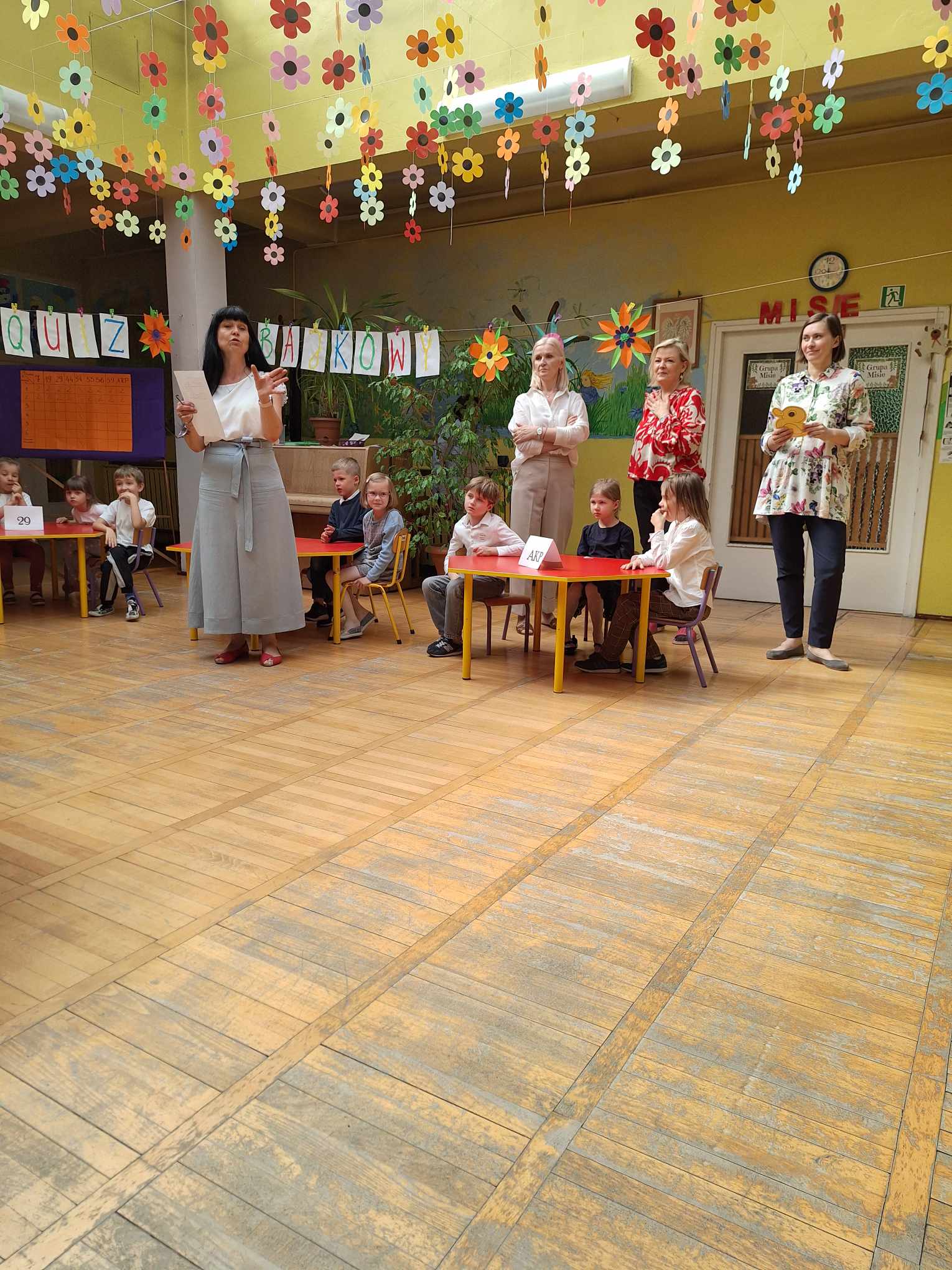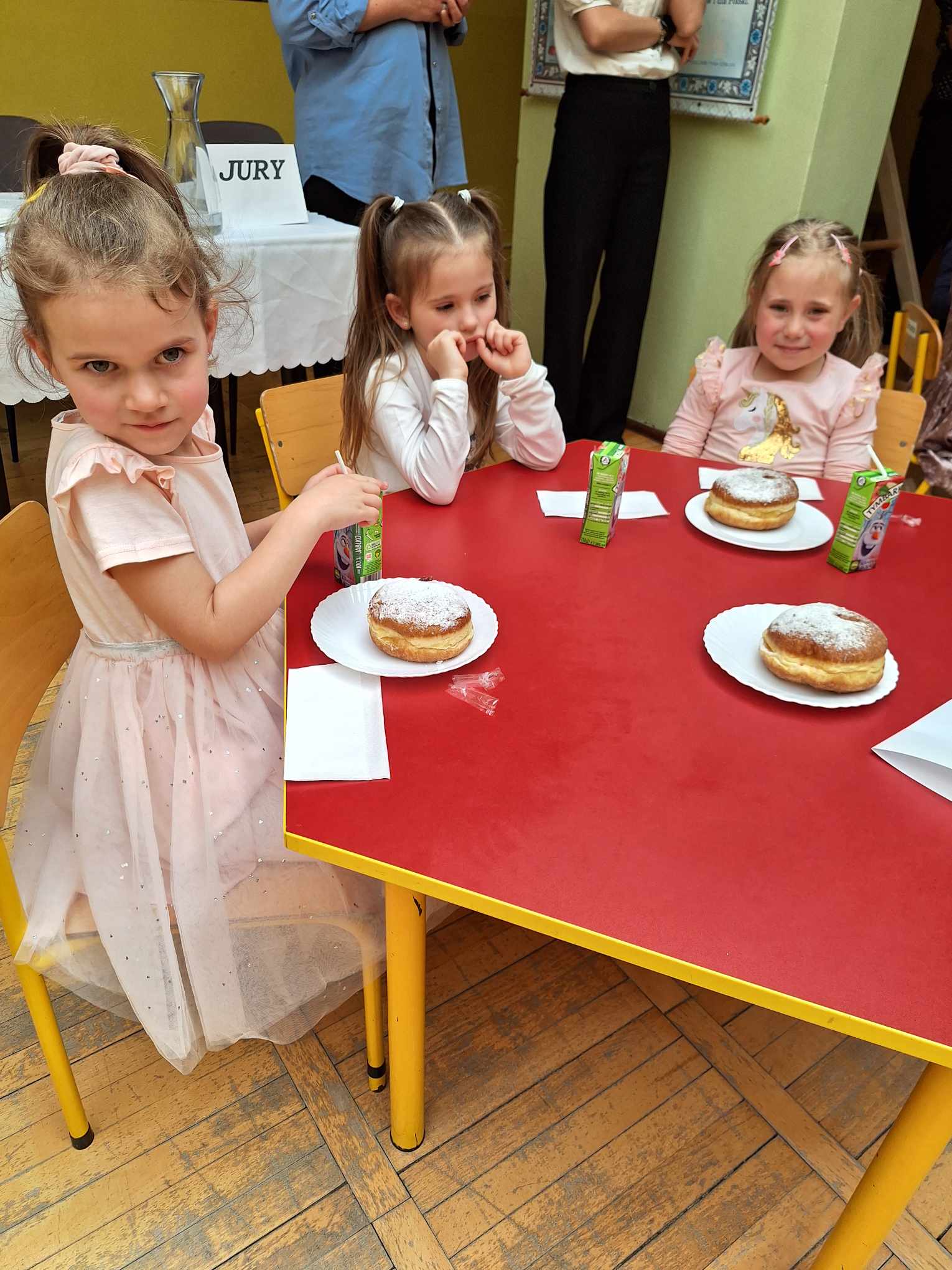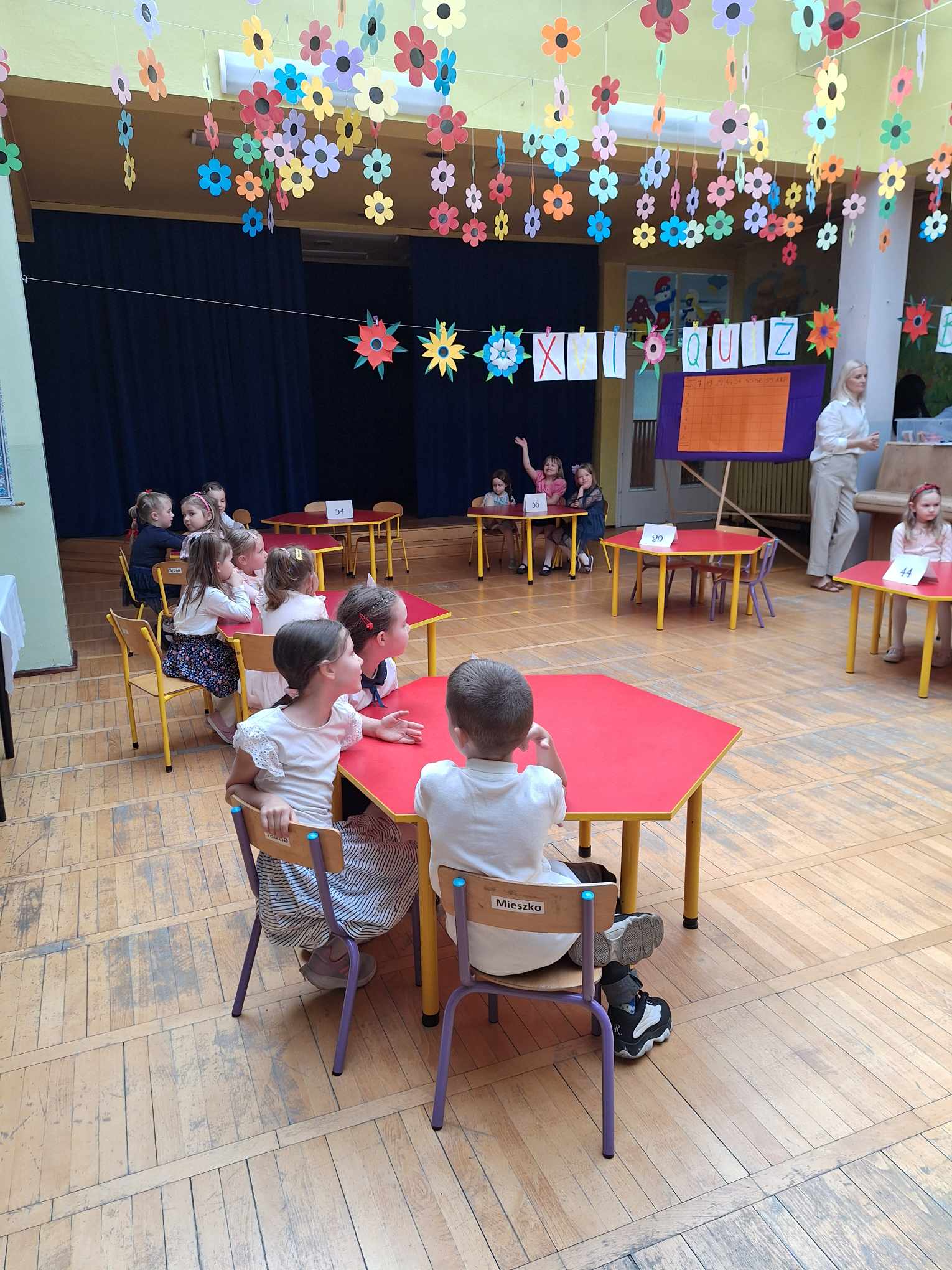 W dniu 08.05.2024r nasze dzielne Przedszkolaki – Matylda, Zosia i Kornelka reprezentowały Przedszkole w XVI Quzie Bajkowym zorganizowanym przez Przedszkole Miejskie nr 55 z Oddziałami dla Dzieci Specjalnej Troski w Sosnowcu. Dziewczynki zmagały się razem z innymi 8 przedszkolami z gminy Sosnowiec. Odpowiadały na pytania związane z następującymi bajkami „Brzydkie Kaczątko”, „Nie-zły pies”, „Rzepka”, „Stefek Burczymucha”, „Spóźniony słowik” oraz miały za zadanie wytłumaczyć wybrane powiedzenia z książki „Co to znaczy…101 zabawnych historyjek, które pozwolą zrozumieć znaczenie niektórych powiedzeń”. Dziewczynki wykazały się ogromną wiedzą na temat przeczytanych bajek. Dziękujemy Rodzicom za pomoc w przygotowaniu dziewczynek do konkursu.