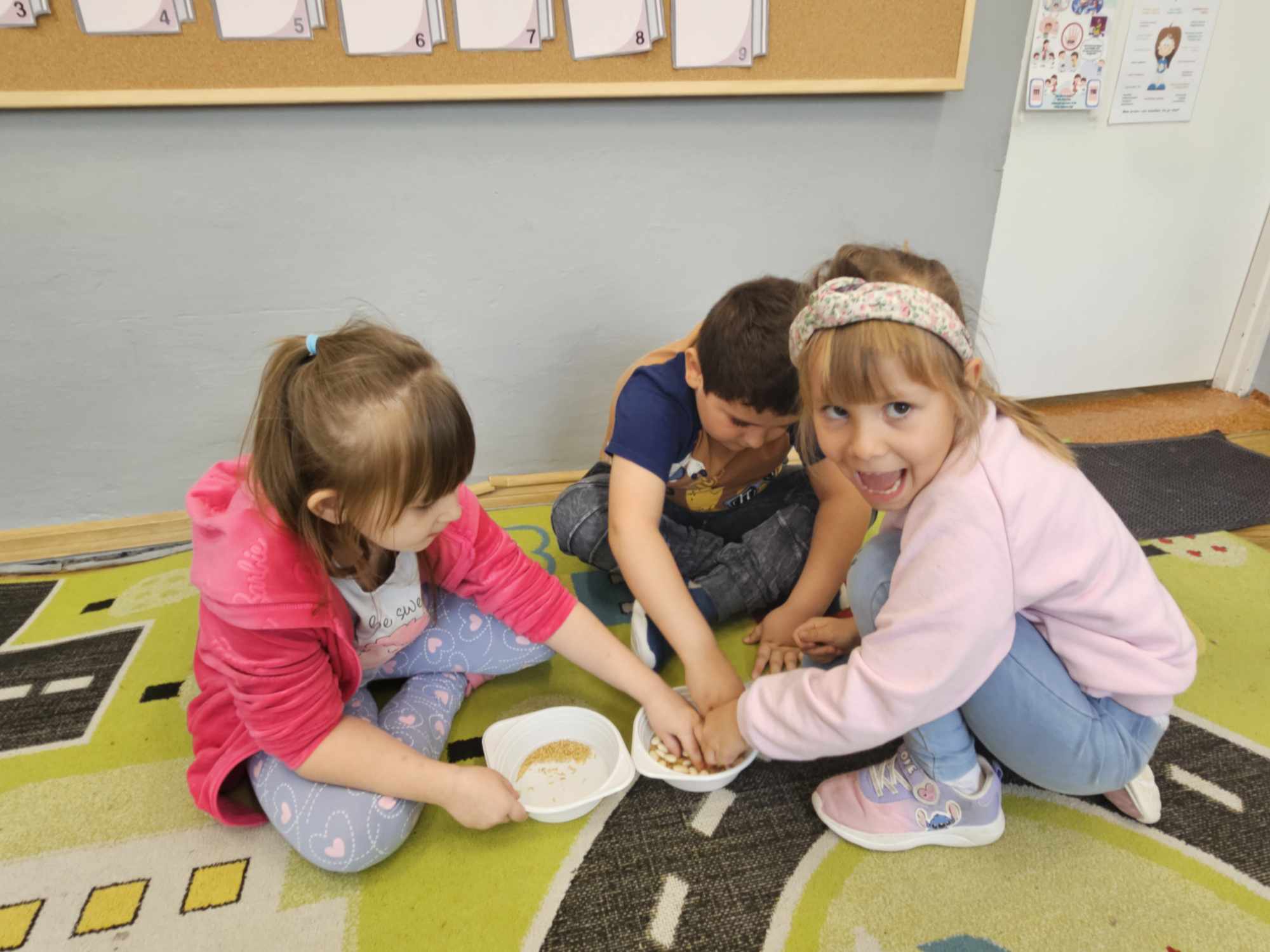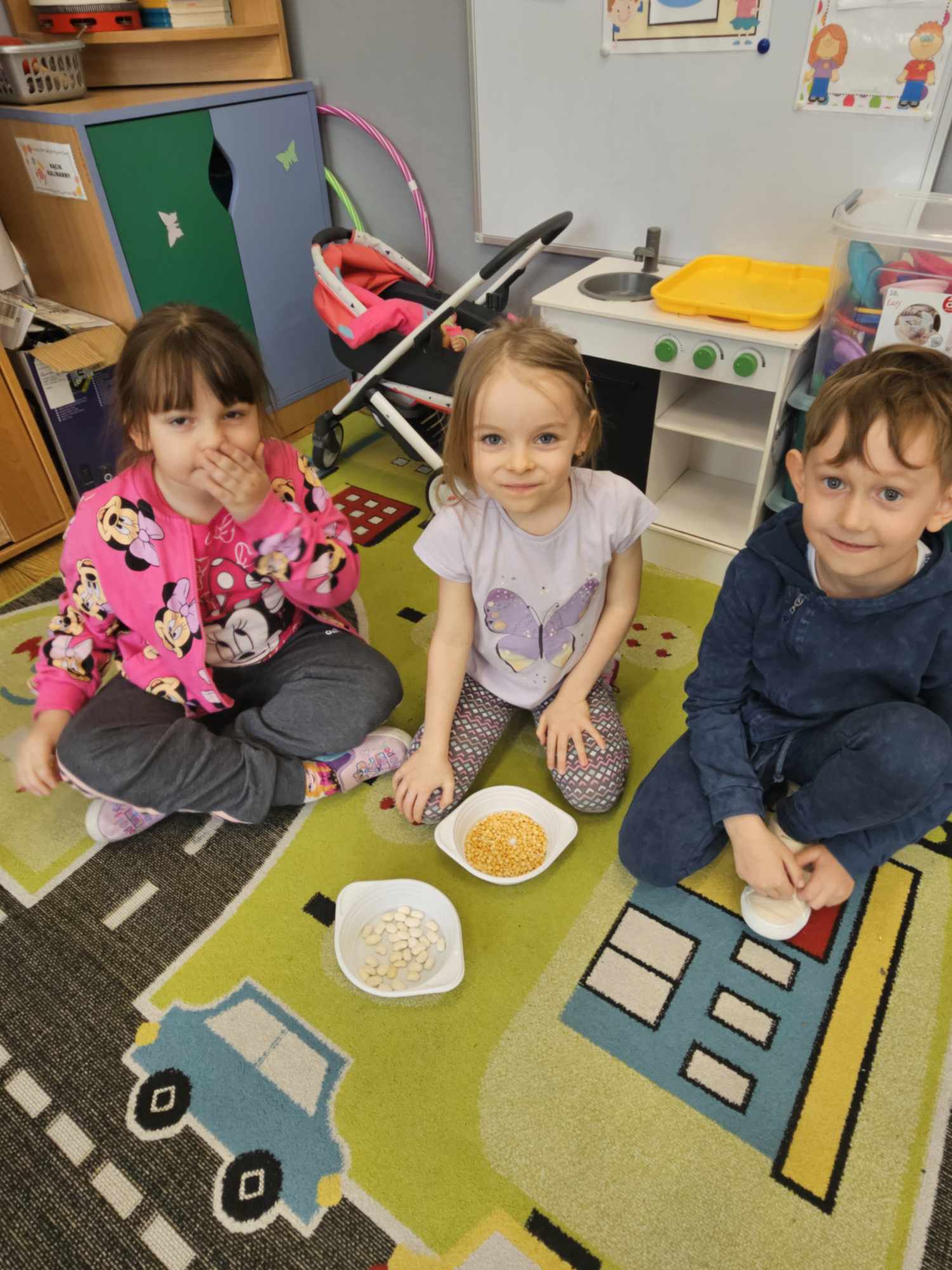 Po wysłuchaniu ciekawostek na temat autorów, a także poznaniu historii „Kopciuszka”, dzieci wykonywały rozmaite zadania: odzielanie grochu od fasoli, sprzątanie, wykonanie eksperymentu: jak powstaje sadza?, tańczenie poloneza na balu. Dzieci zaprojektowały suknię balową oraz garnitur.