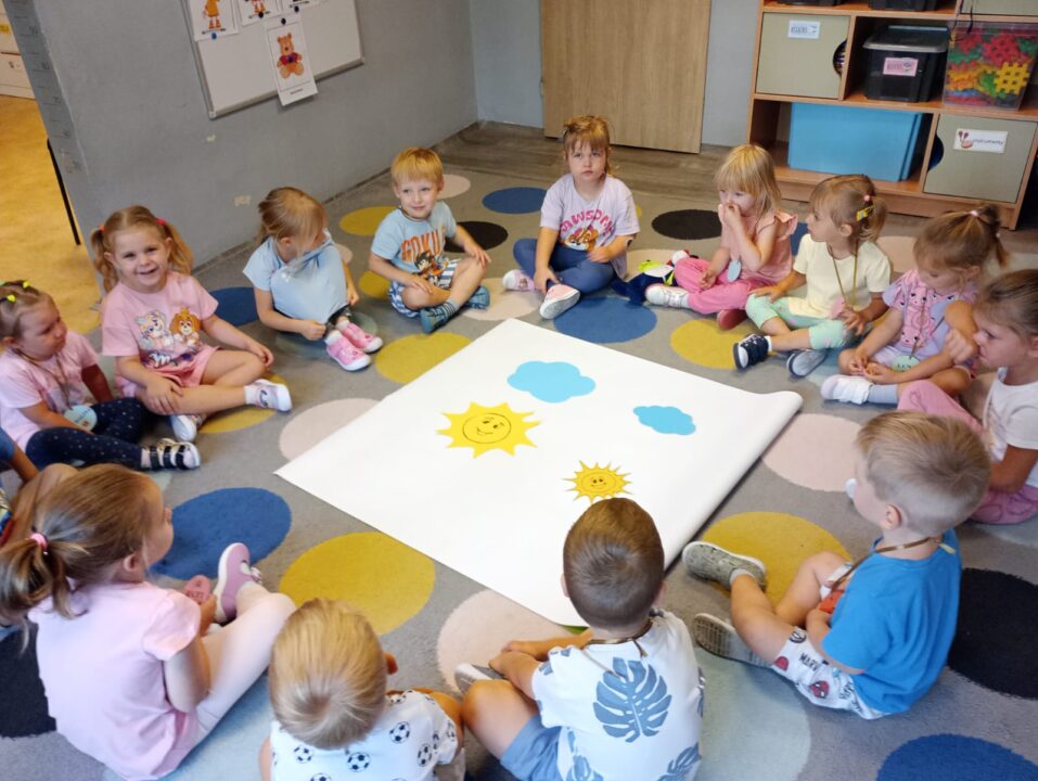 Zaczęliśmy naszą wspólną przedszkolną przygodę – zarówno dzieci, jak i dorośli! Dla dzieci będzie to rok wypełniony ciekawymi zabawami, czas podejmowania wyzwań, uczestniczenia w różnych wydarzeniach, nawiązywania kontaktów, zdobywania nowych doświadczeń i umiejętności, a dla dorosłych – czas obserwowania, jak zagubiony maluszek staje się coraz bardziej samodzielnym, odpowiedzialnym i odważnym przedszkolakiem. Aby umożliwić Państwu pełniejsze uczestniczenie w przedszkolnym życiu swojego dziecka, zachęcamy do czytania i oglądania fotorelacji, które będą się ukazywać co dwa tygodnie. Będziemy w nich opisywać, co dzieci robiły, czego się uczyły, jakie treści poznawały i w co się bawiły, a także zobaczycie zdjęcia swoich dzieci w życiu przedszkolnym.