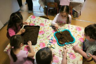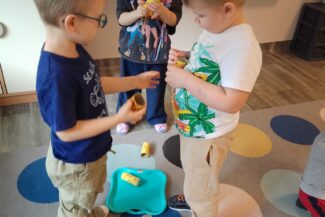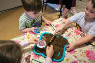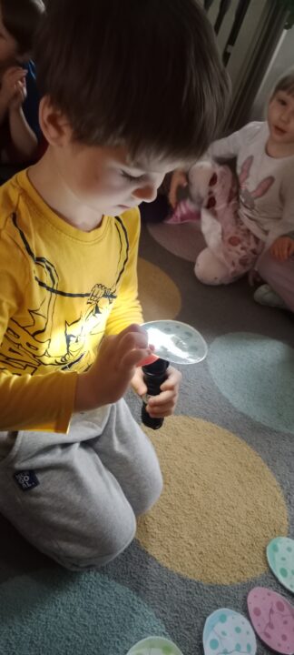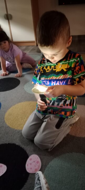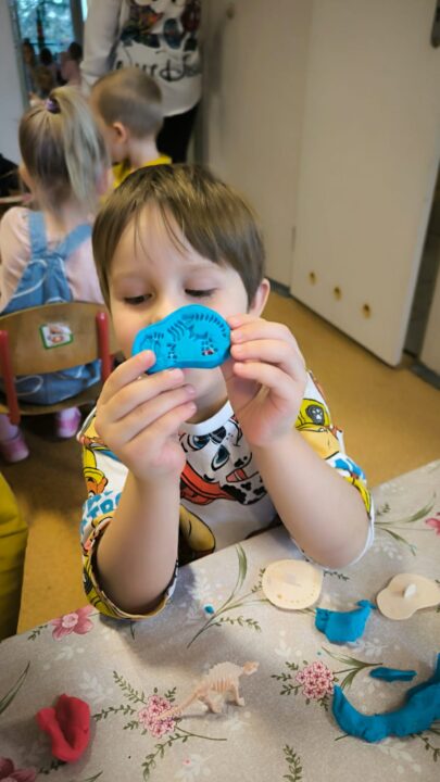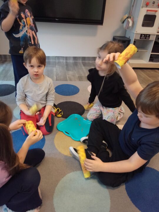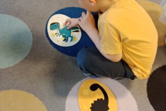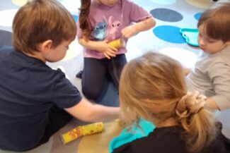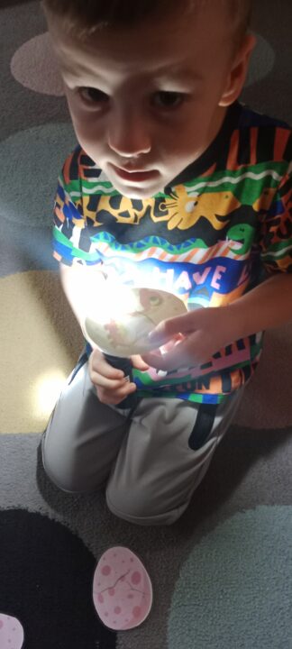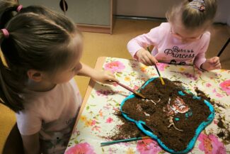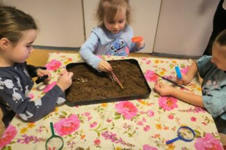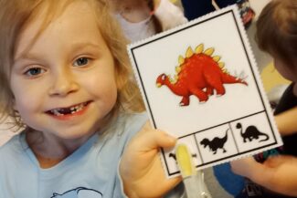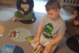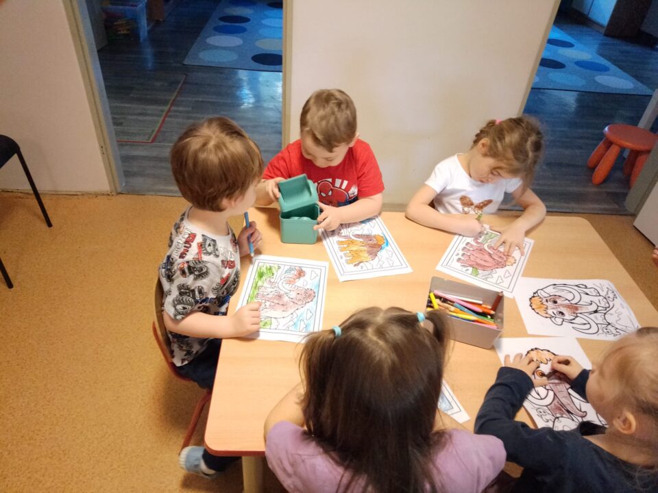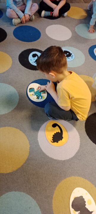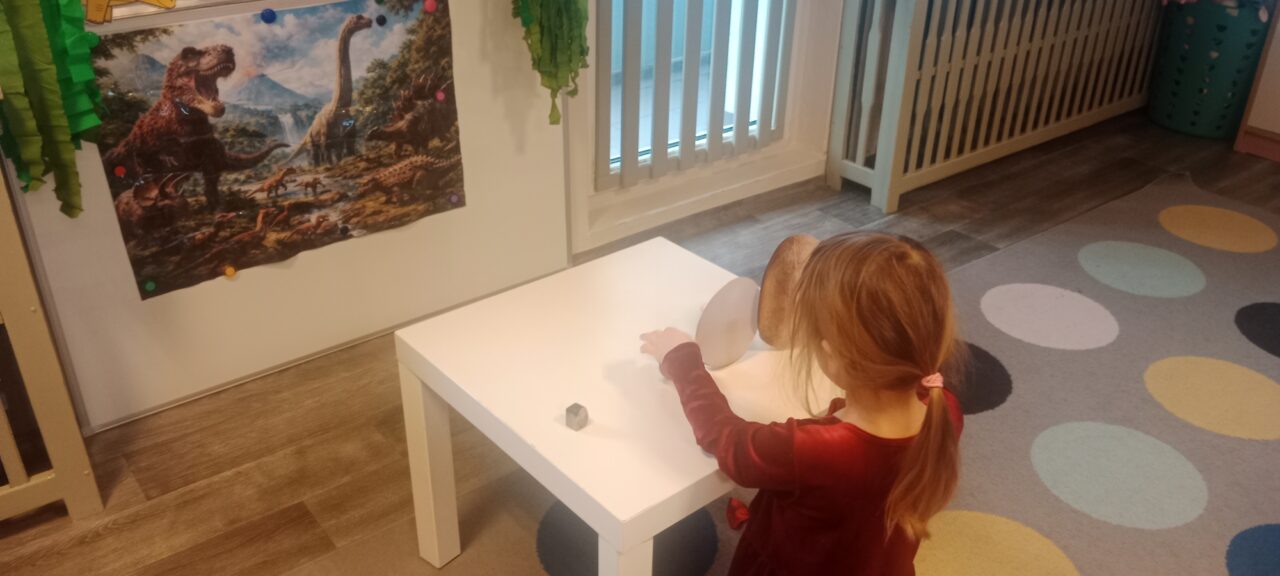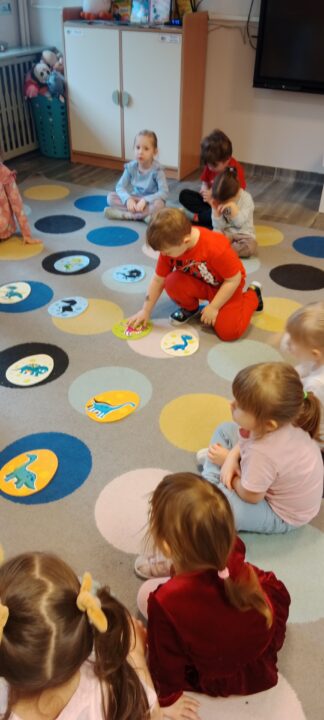 W minionym tygodniu dzieci poznawały prehistoryczny świat. Dzieci rozpoczynały swój dzień od powitanki „Dinozaury”. Wspólnie zaaranżowałyśmy przestrzeń sali tak, żeby przypominała prehistoryczny las. Dzieci oglądały animację oraz słuchały opowieści naukowej na temat tego, jak wyglądał las dawno temu. Rozmawiały też o pracy archeologa i paleontologa oraz