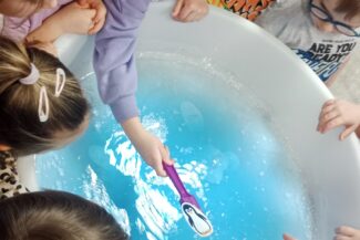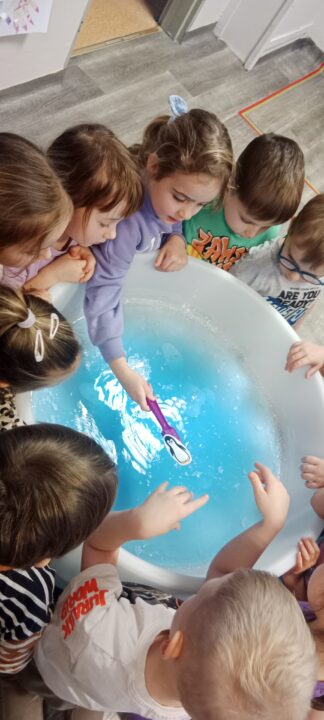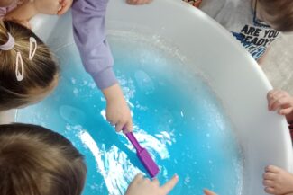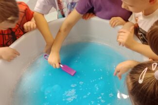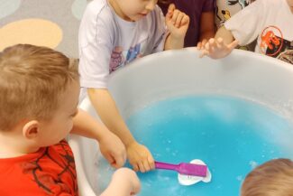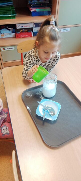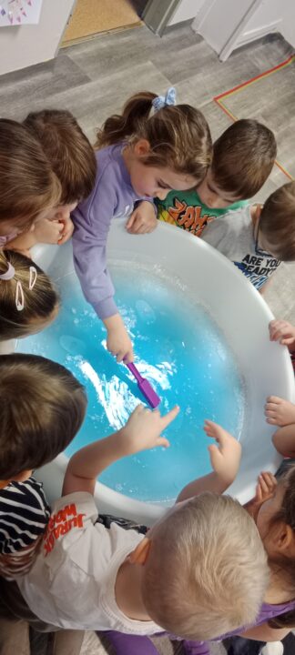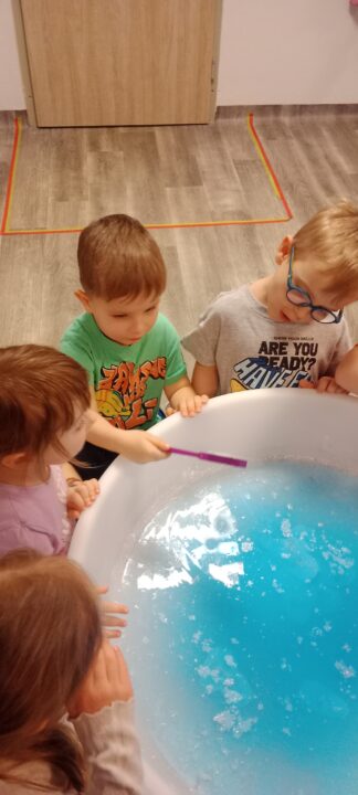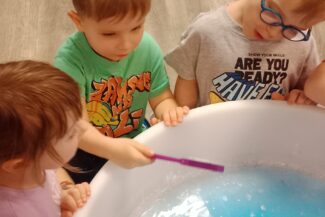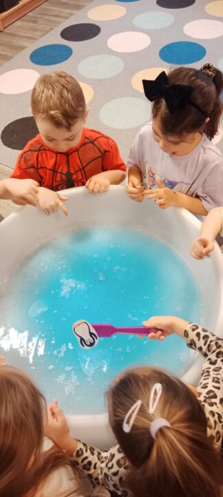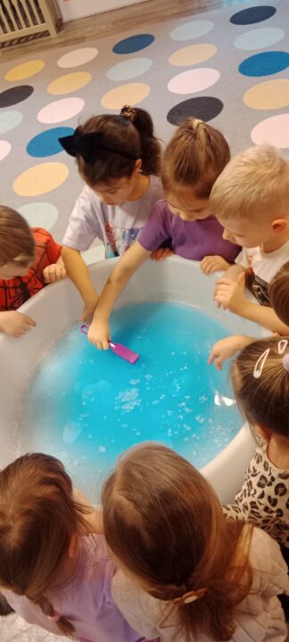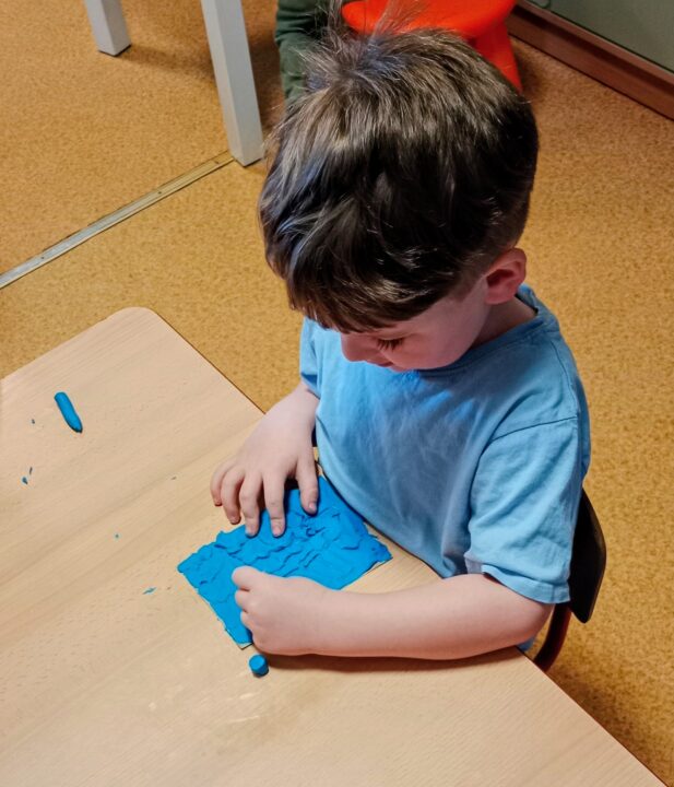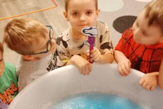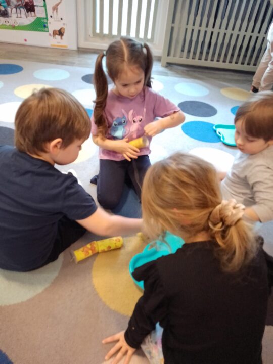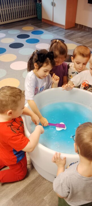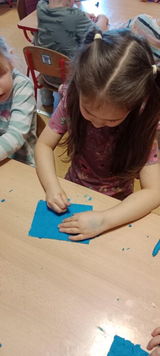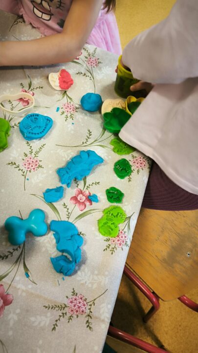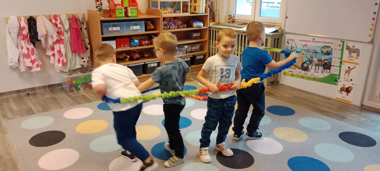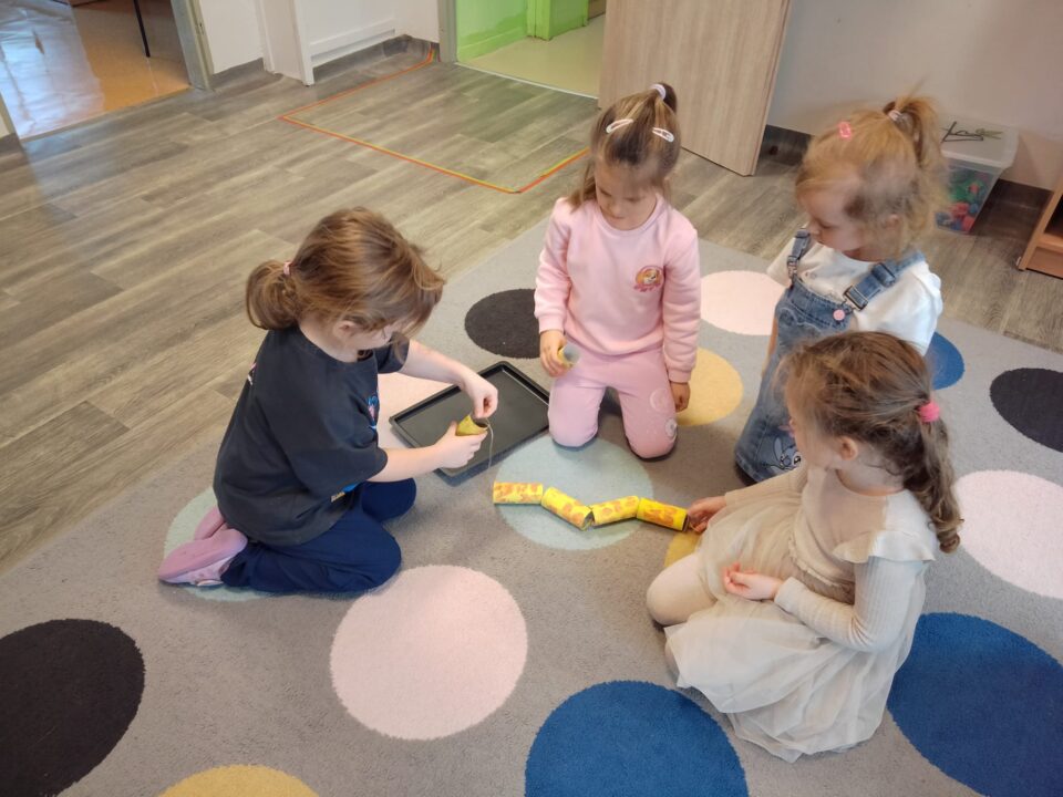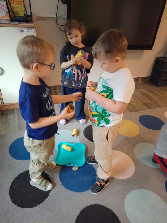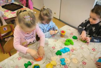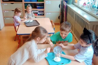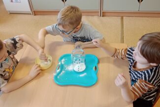 To także jeden z najważniejszych wyznaczników gotowości szkolnej dziecka. żeby mogła zaistnieć dobra współpraca, muszą być jednak rozwinięte także inne umiejętności, na przykład aktywne słuchanie, rozpoznawanie i nazywanie emocji, umiejętność mówienia o swoich potrzebach. Dbamy o to podczas pobytu dziecka w przedszkolu, a ten tydzień był szczególnym zaproszeniem do zajęcia się tym tematem. Dzieci brały udział w wielu zabawach integracyjnych, dzięki którym mogły poczuć się częścią grupy przedszkolnej. Dowiedziały się też, co oznacza powiedzenie współpraca się opłaca. Dzieci opowiadały, kim chciałyby zostać w przyszłości i uzasadniały swoją odpowiedź. Zabawy „Każdy z nas ma talent. Każdy z nas jest ważny”, „Lubię – nie lubię” i „Co to jest talent?” pozwoliły dzieciom zrozumieć, czym jest talent. W minionym tygodniu przedszkolaki w zabawach matematycznych poznawały również liczbę 10 – dokładały odpowiednią liczbę elementów tak, żeby w sumie było ich 10, rysowały liczbę 10 w powietrzu czy na dywanie i układały cyfry rosnąco.
