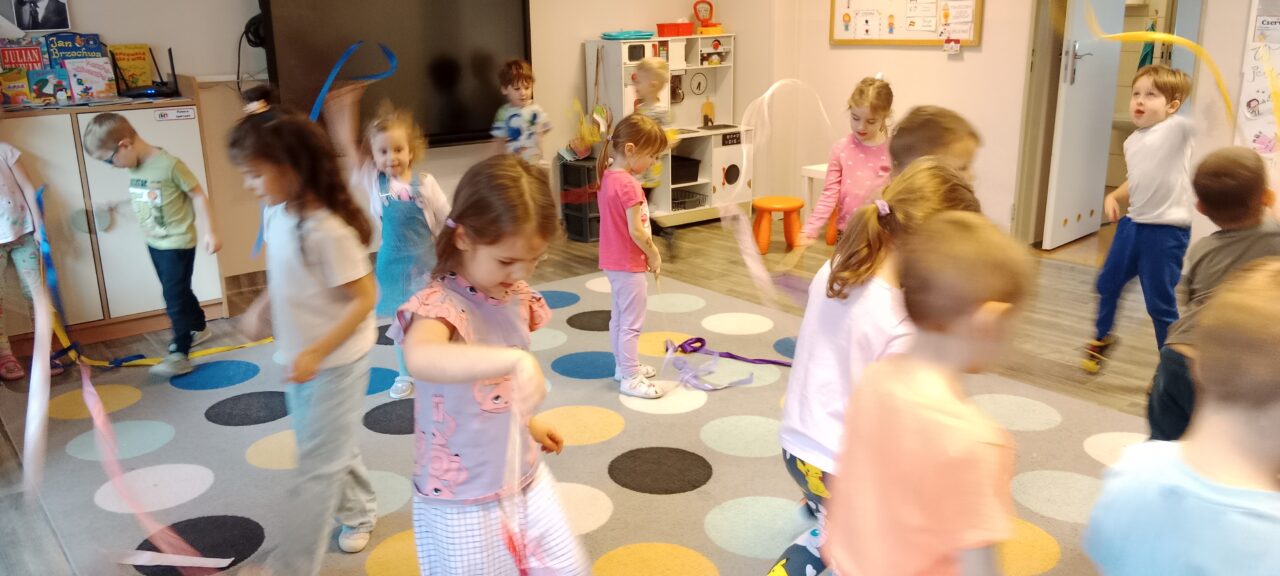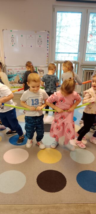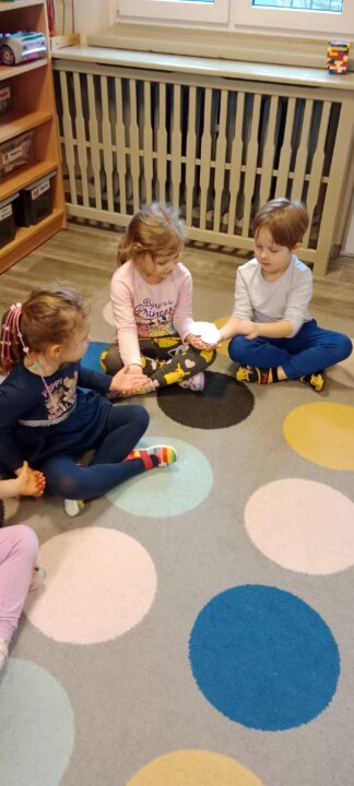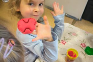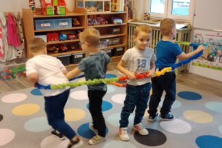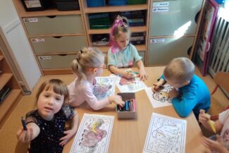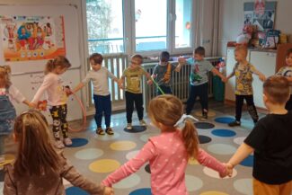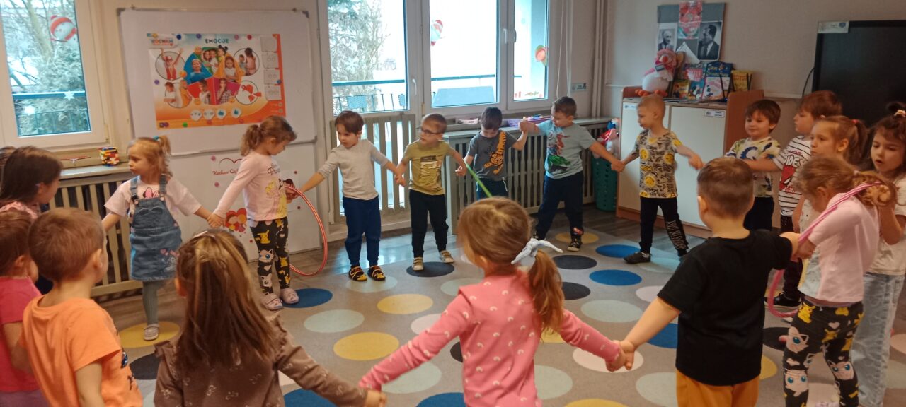 Walentynki to doskonała okazja, aby pokazać dziecku, w jaki sposób można wyrażać swoje uczucia. To także szansa, by spędzić wspólnie czas, również z najmłodszymi członkami rodziny. Przebywając wśród bliskich czy rówieśników, dzieci uczą się nazywania i rozpoznawania emocji, a także okazywania życzliwości i miłości. To ważne umiejętności, które warto pielęgnować na co dzień – również podczas pobytu w przedszkolu. Dzieci codziennie witały się pląsem ilustrowanym ruchem „Serduszko na walentynki”. Uczyły się też piosenki „Słowo KOCHAM”, aby jeszcze lepiej zrozumieć, czym jest miłość, i wyjaśniały sens powiedzenia: słowo „kocham” ma magiczną moc. Szukały również odpowiedzi na pytanie: co to znaczy kogoś kochać? Zabawy z zakresu edukacji społeczno-emocjonalnej: „Jak okazujemy uczucia?”, „Rozśmieszanki” pozwoliły dzieciom doskonalić umiejętność rozpoznawania i nazywania podstawowych emocji. Podczas zajęć poznały także sposoby na okazywanie miłości bliskim, w zależności od stopnia pokrewieństwa czy zażyłości relacji. Podczas zajęć „Serce z s” czy „Jakie słowo usłyszeliście?” poznawały głoskę s i literę s, S. Dzieliły słowa rozpoczynające się literą s na sylaby, przeliczały je oraz wskazywały, które słowa zapisujemy wielką literą. Podczas zabaw z edukacji przyrodniczej rozmawiały na temat uczuć w świecie zwierząt i ludzi. Oglądały też film przyrodniczy, opisywały wygląd samców i samic danego gatunku, a także dobierały zwierzęta w pary i wypowiadały się na ich temat. Podczas zabaw z zakresu edukacji ekonomicznej rozmawiały o tym, co można kupić za pieniądze, a czego nie można.