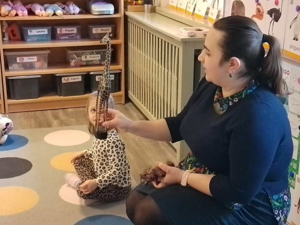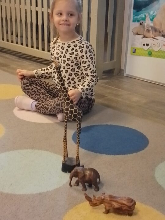 W tym tygodniu dzieci zapoznawały się więc ze środowiskiem życia zwierząt w różnych strefach klimatycznych. Uczyły się dostrzegać, że zwierzęta także posiadają zdolność odczuwania. Dzieci dzieliły się wiedzą i doświadczeniami związanymi z wycieczką do zoo i/lub spotkaniami ze zwierzętami egzotycznymi. Podczas zabaw przyrodniczych dzieci poznawały globus, oglądały film o Afryce, ćwiczyły też spostrzegawczość wzrokową przez układanie puzzli o zwierzętach. W zabawie „Do wodopoju” naśladowały sposób poruszania się wybranych zwierząt. Oprócz tego rozwiązywały zagadki. Zabawy językowe, słuchowe i ruchowe pozwoliły dzieciom zapoznać się z głoską p i literą p, P. Dzieliły słowa na sylaby i litery, wskazywały głoskę p we wskazanych wyrazach, opowiadały, co przypomina im kształt litery. Przypomniały sobie również, w jakich wyrazach na początku występuje wielka litera oraz układały z dostępnych materiałów literę P. Podczas zabaw matematycznych dzieci poznały cyfrę 0. Ćwiczyły także orientację przestrzenną i umiejętność liczenia podczas zabawy „Zwierzęcy mistrzowie”. W trakcie zajęć „Gdzie ukryły się papugi?” doskonaliły umiejętność posługiwania się liczebnikami głównymi i porządkowymi oraz rozwiązywały proste zadania matematyczne. Bawiły się przy muzyce klasycznej – Karnawał zwierząt Camille’a Saint-Saëns. Poznały cele zakładania ogrodów zoologicznych i zasady ich zwiedzania.
