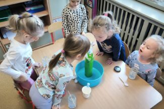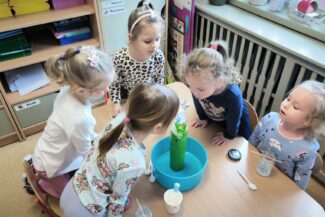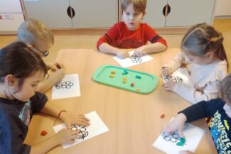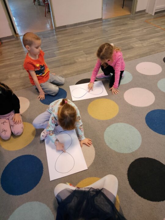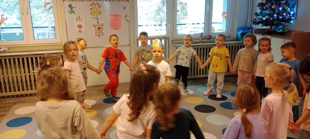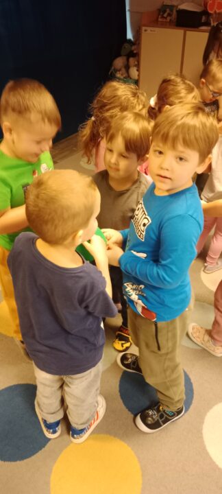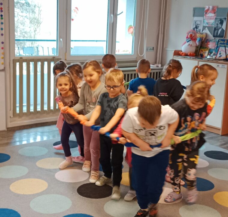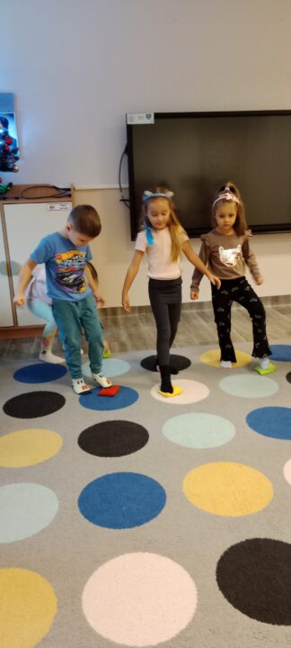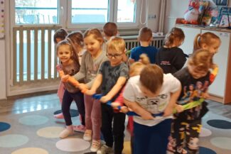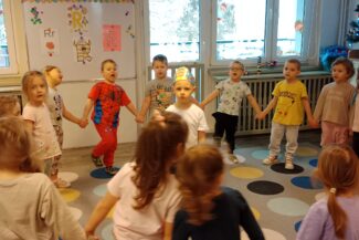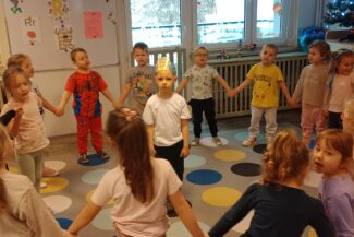 „Czas na bal” – taką radosną powitanką rozpoczynaliśmy każdy dzień w tym tygodniu. Karnawał to okazja do dobrej zabawy przy muzyce, która jest często bardzo niedocenianym czynnikiem rozwoju dziecka. Podczas zajęć muzycznych wzrasta koncentracja uwagi oraz doskonali się pamięć muzyczna. Uczenie się sekwencji kroków tańca sprawia, że dzieci ćwiczą również pamięć ruchową i wyczucie przestrzeni. Zaspokajają przy tym wrodzoną im potrzebę ruchu i uzewnętrznienia przeżyć emocjonalnych. Właśnie dlatego podczas tego karnawałowego tygodnia w naszym przedszkolu pełno było śpiewu, zabaw muzyczno-ruchowych i tańca.Podczas różnorodnych zabaw językowych, słuchowych i ruchowych poznawały głoskę b i literę b, B. Zapoznały się również z liczbą 9. Ćwiczyły umiejętność układania rytmów i dostrzegania regularności w otoczeniu. Oczywiście wszystkie zabawy matematyczne związane były z karnawałem. Przedszkolaki brały udział w zajęciach dodatkowych „Mali Einsteini w świecie nauki”, a także realizowały Projekt Edukacyjny „Jestem OK”.