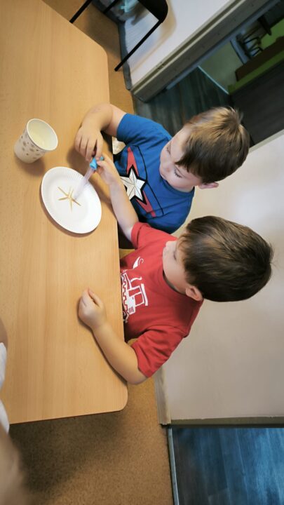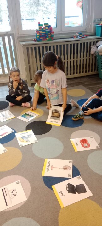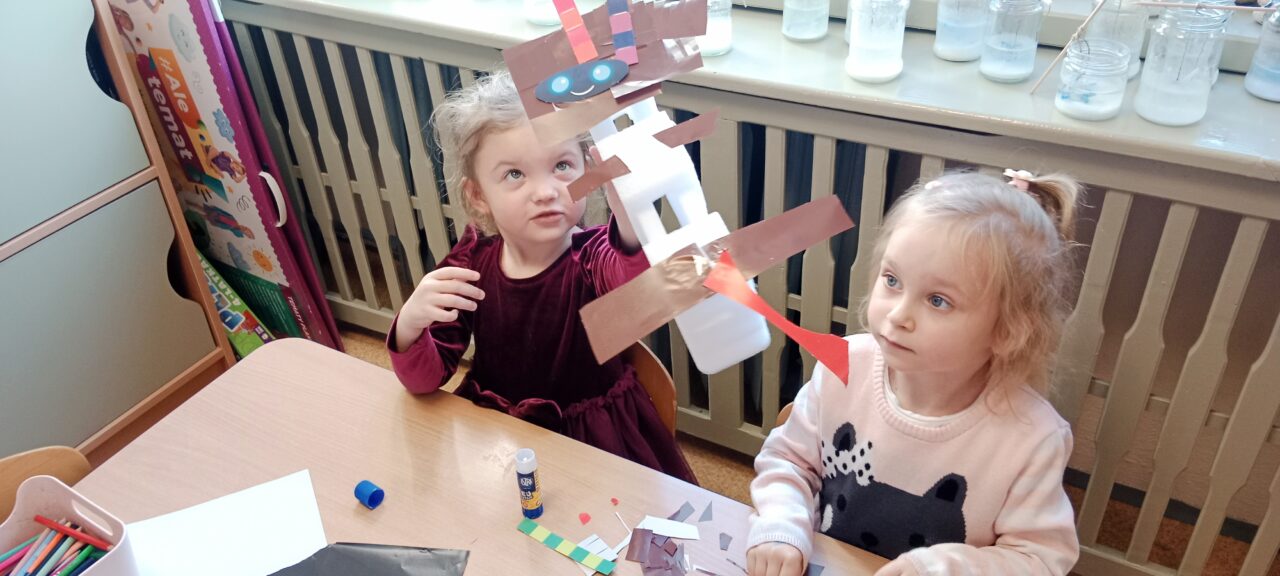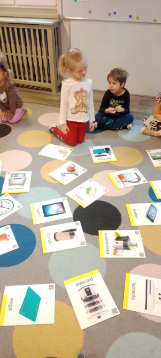 a także rozwiną umiejętność myślenia analitycznego i logicznego rozumowania. Jako dorośli musimy jednak pamiętać o nadzorowaniu sposobu używania szeroko rozumianych mediów przez dzieci. Ważne jest tłumaczenie różnych zjawisk i uważne obserwowanie aktywności najmłodszych w wirtualnym świecie. Równocześnie należy pamiętać, że podstawą higieny cyfrowej jest ograniczanie czasu spędzonego online na rzecz czynności wykonywanych w trybie offline. Temat tygodnia zachęcił wszystkich, aby porozmawiać, czym są nowinki techniczne oraz wynalazki, a także kim jest wynalazca i jak można nim zostać. Dzieci próbowały odpowiedzieć też na pytanie, czy wszystko zostało już wynalezione. Podczas zabaw dzieci poznawały sprzęty oraz urządzenia ułatwiające codzienne funkcjonowanie. Opowiadały także o różnicach i podobieństwach między sprzętami codziennego użytku. Dowiedziały się, czym jest prąd elektryczny, jakie są jego źródła oraz w jaki sposób działają urządzeń elektryczne. W trakcie rozmów wspólnie zastanawialiśmy się, jak bezpiecznie korzyść z takich urządzeń. Przedszkolaki poznawały głoskę r i literę r, R, a podczas zabaw matematycznych poznawały liczbę 8 – liczyły wstecz, wykonywały zadanie w 8 sekund czy opowiadały, co przypomina im kształt cyfry. Dzieci rozwiązywały zagadki dotyczące poznanych urządzeń domowych. Konstruowały „Przedszkolny robot” z różnych materiałów plastycznych.