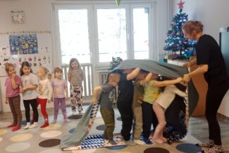 w zabawach pantomimicznych. Poznawały dawne zabawy swoich dziadków: „Gra w klasy”, „Ciuciubabka”, „Ojciec Wirgiliusz”. Przygotowania do Dnia Babci i Dziadka obejmowały także redagowanie i naukę składania życzeń. Codzienną aktywnością w tych dniach były też przygotowania do występu przed Dziadkami.