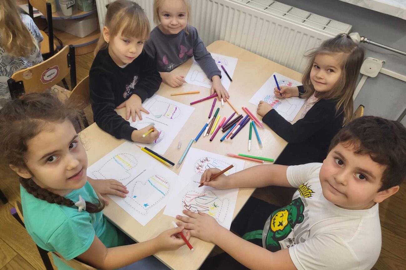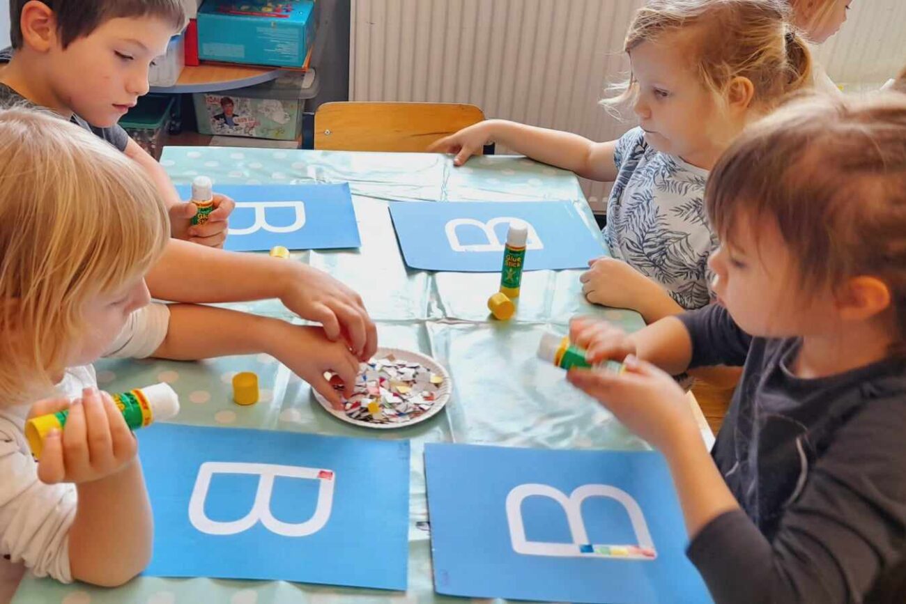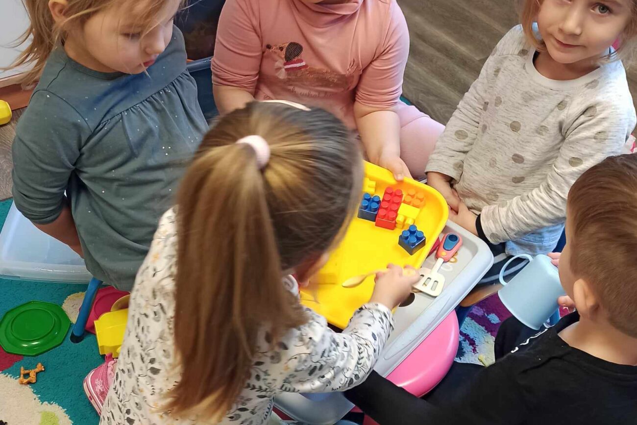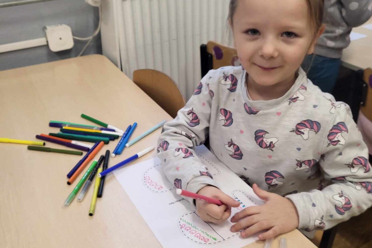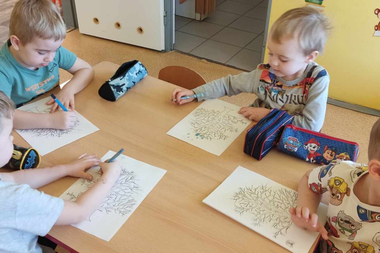 „Biedronki ” poznały litery „Z”, „B”, których kontur wypełniały przy użyciu różnych materiałów. Opanowały treść wiersza T.Fiutowskiej:” Co robią dni tygodnia?”, układając do niego we właściwej kolejności obrazki. Poznały znak matematyczny ,,+”, gdzie odczytywały i układały zapisy działań na dodawanie w zakresie 5. Brały udział w zabawie dydaktycznej: „Przyjęcie dla babci i dziadka „, gdzie miały za zadanie rozdzielić po tyle samo „smakołyków”. Doskonaliły umiejętność mierzenia długości przy pomocy sznurka. W ramach Ogólnopolskiego Projektu Edukacyjnego „Gramy zmysłami” grupa przygotowała zdrowe II śniadanie. Na sali gimnastycznej odbyły się zabawy ruchowe oraz zumba.