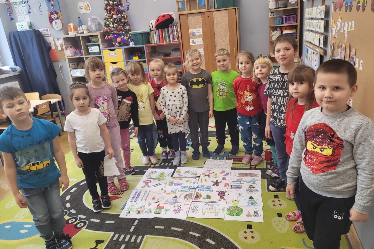 „Motylki” przez ostatnie tygodnie rozmawiały o czasie,poznały następstwa pór roku. Podczas spacerów dokarmiały również ptaki. Rozmawiały również o pięknej porze roku jaką jest zima. Wykonały pracę plastyczną ukazującą „Cztery pory roku”. Gratulujemy Biance za zajęcie III miejsca w konkursie „Bajkowa zakładka do książki” oraz Wiktorii za zdobycie II miejsca pt” Ozdoba świateczna z recyklingu”.