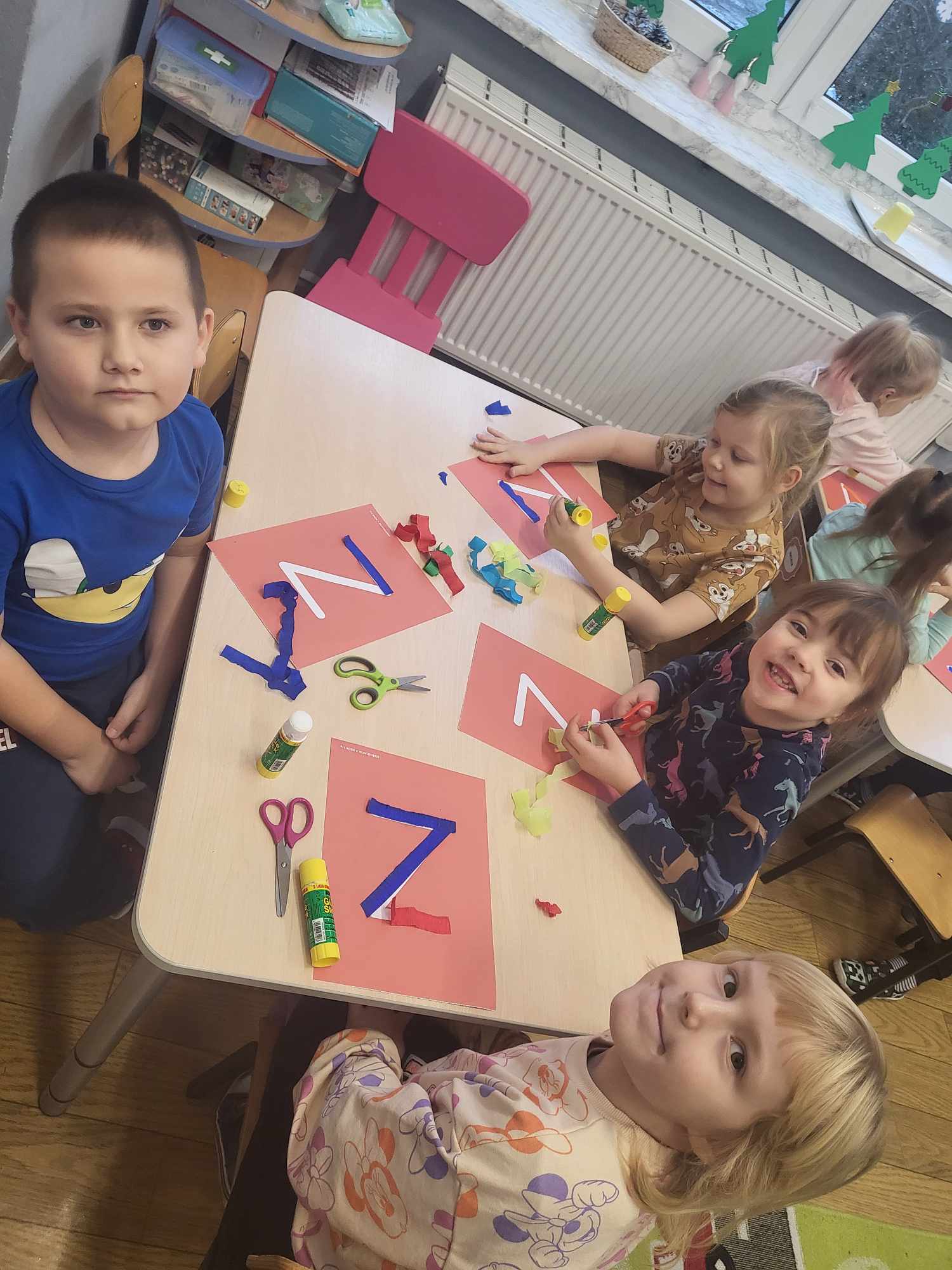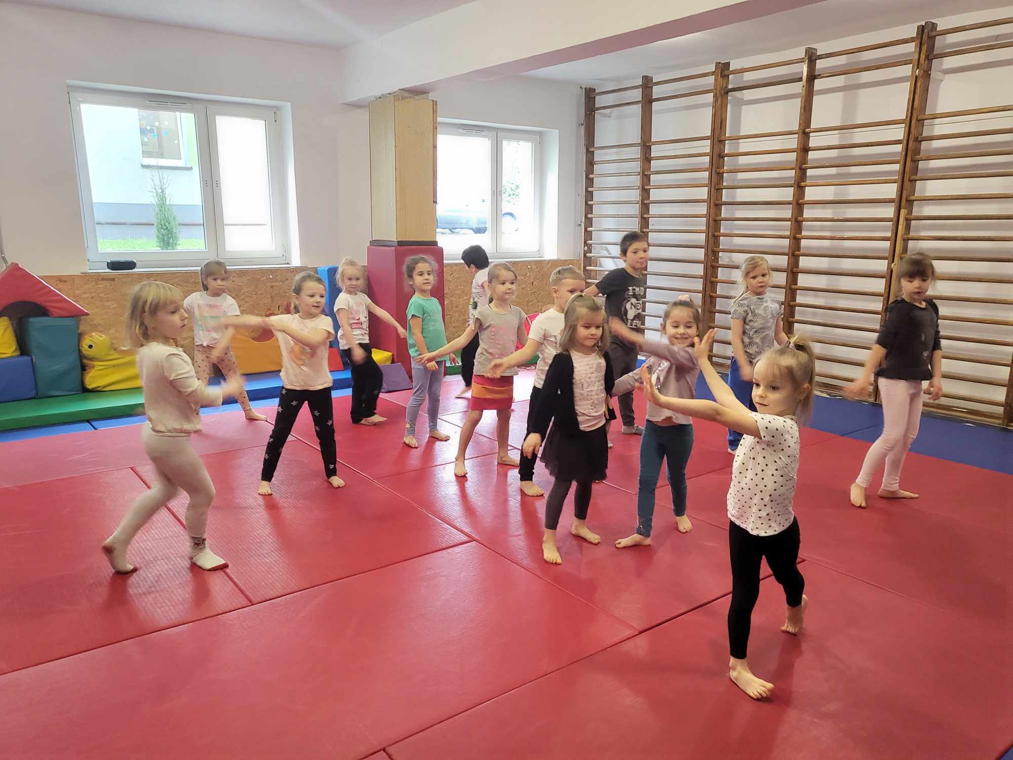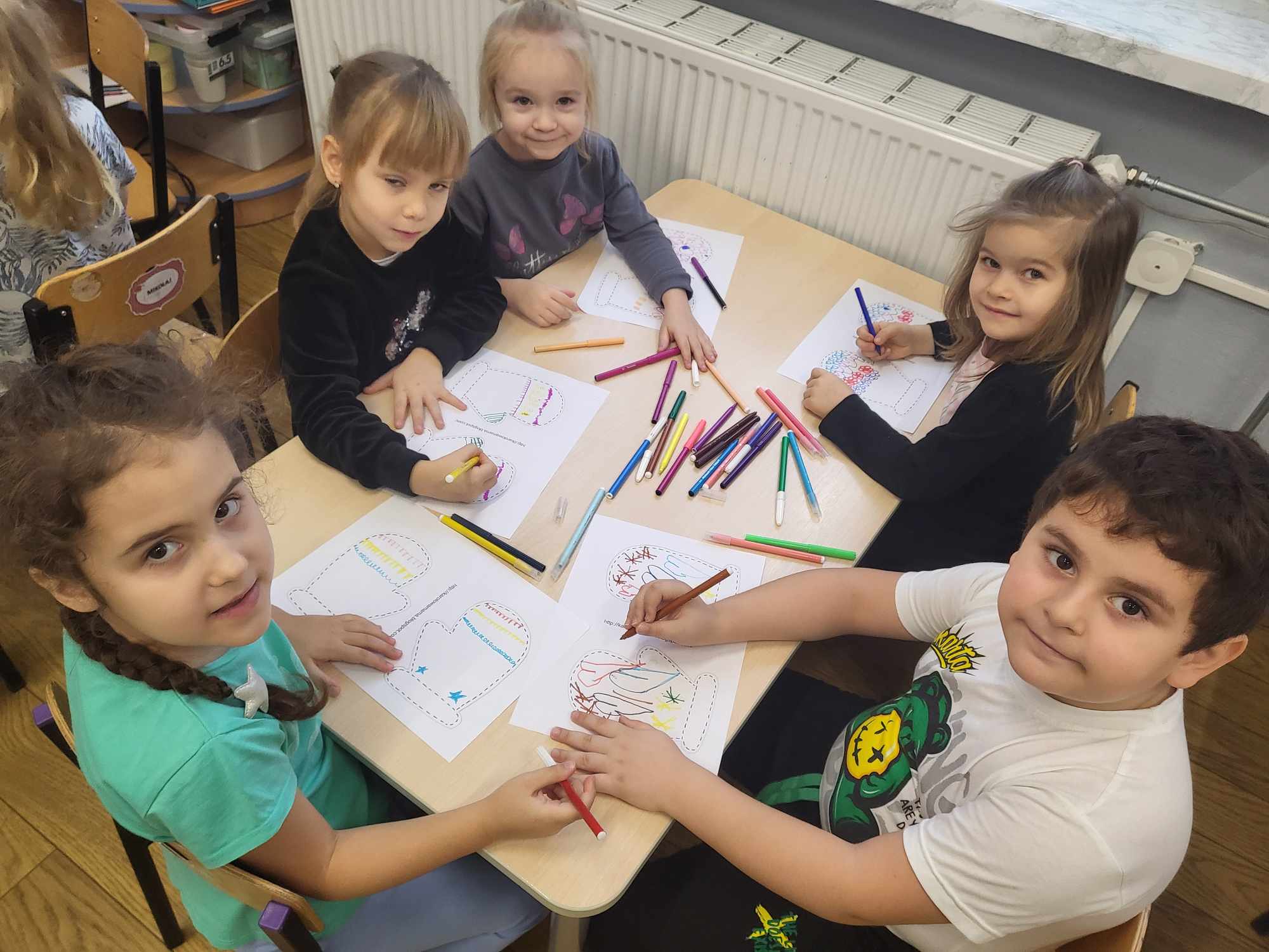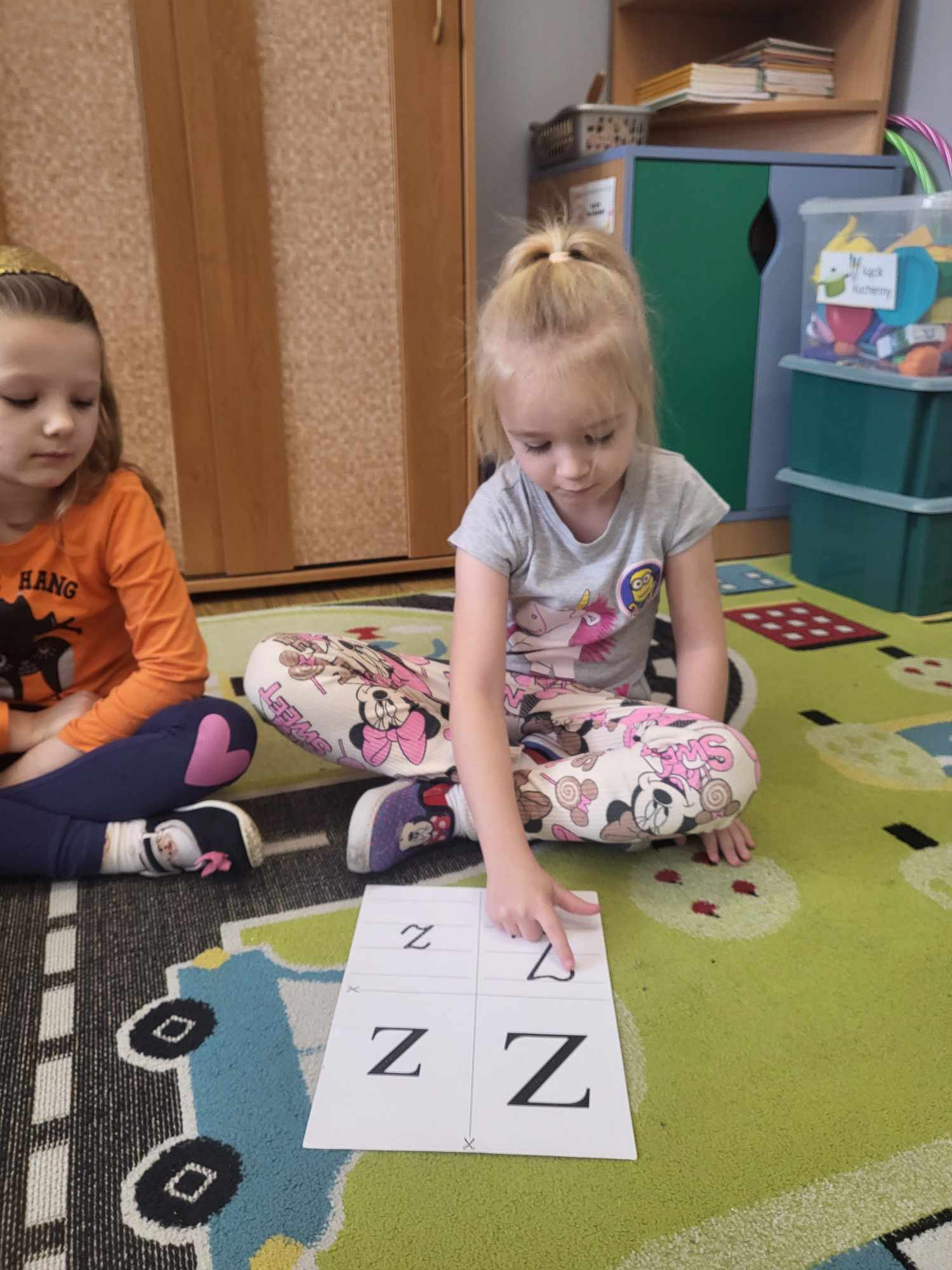 „Biedronki ” poznały litery „Z”, „B”, których kontur wypełniały przy użyciu różnych materiałów. Opanowały treść wiersza T.Fiutowskiej:” Co robią dni tygodnia?”, układając do niego we właściwej kolejności obrazki. Poznały znak matematyczny ,,+”, gdzie odczytywały i układały zapisy działań na dodawanie w zakresie 5. Brały udział w zabawie dydaktycznej: „Przyjęcie dla babci i dziadka „, gdzie miały za zadanie rozdzielić po tyle samo „smakołyków”. Doskonaliły umiejętność mierzenia długości przy pomocy sznurka. W ramach Ogólnopolskiego Projektu Edukacyjnego „Gramy zmysłami” grupa przygotowała zdrowe II śniadanie. Na sali gimnastycznej odbyły się zabawy ruchowe oraz zumba.