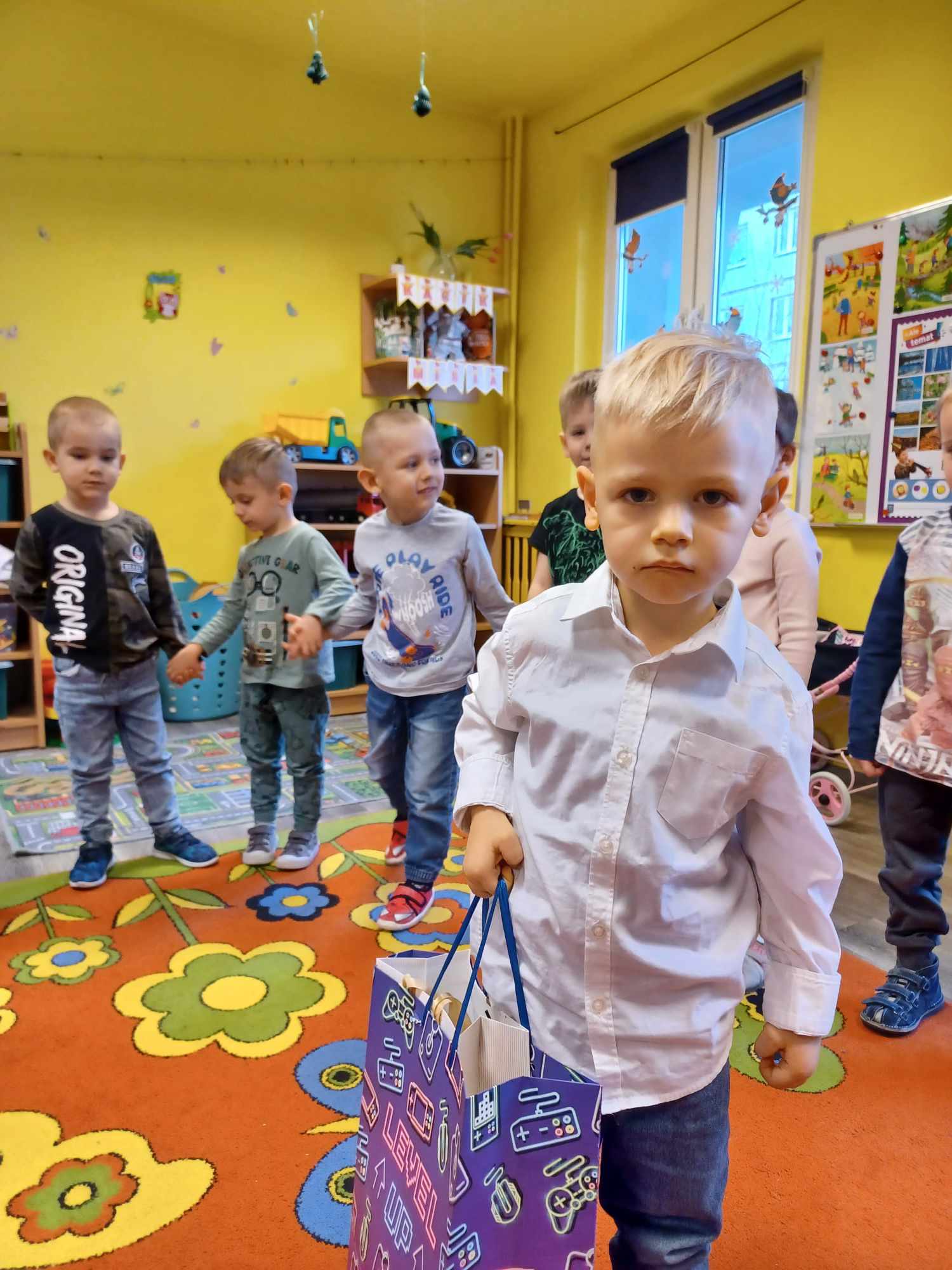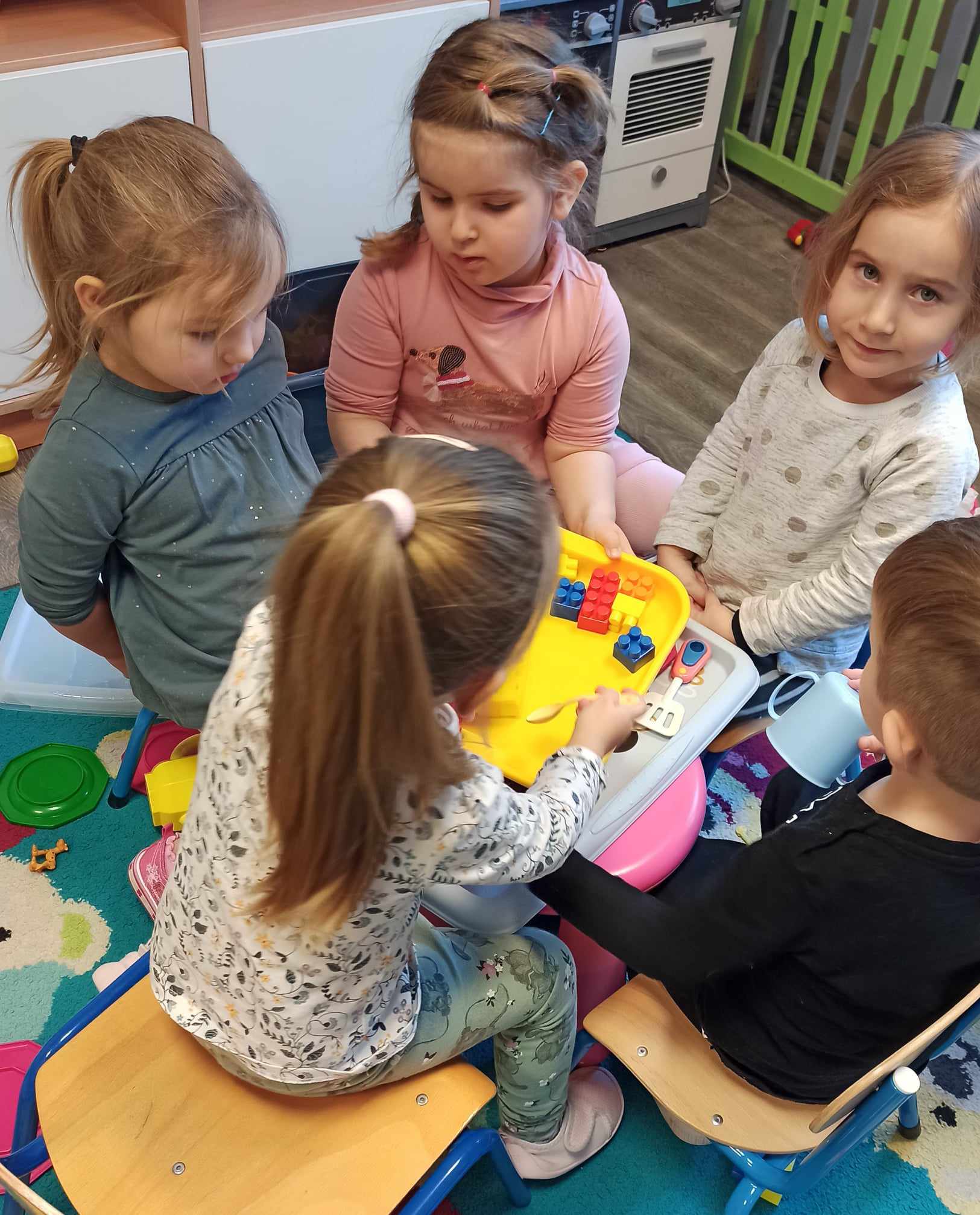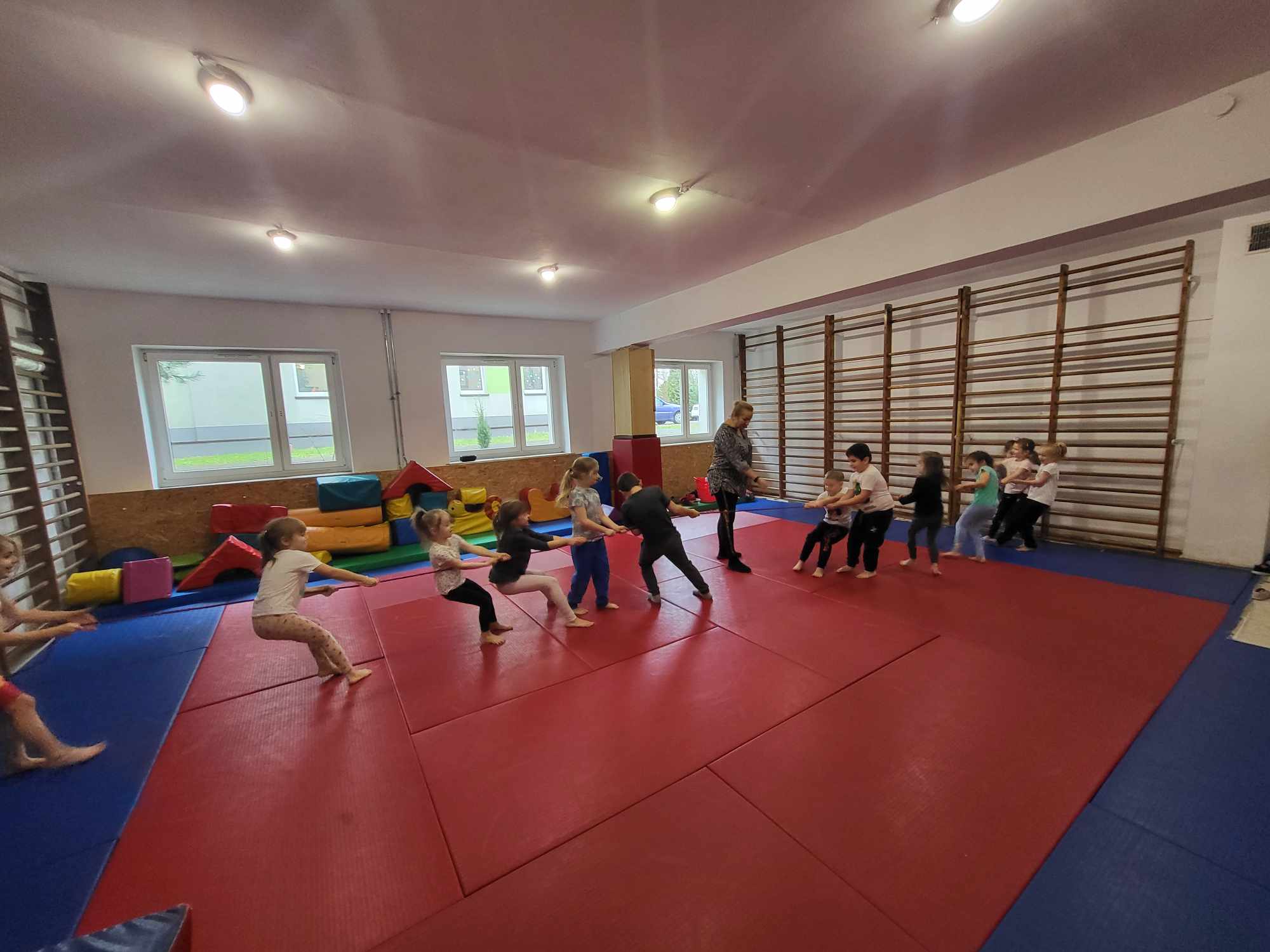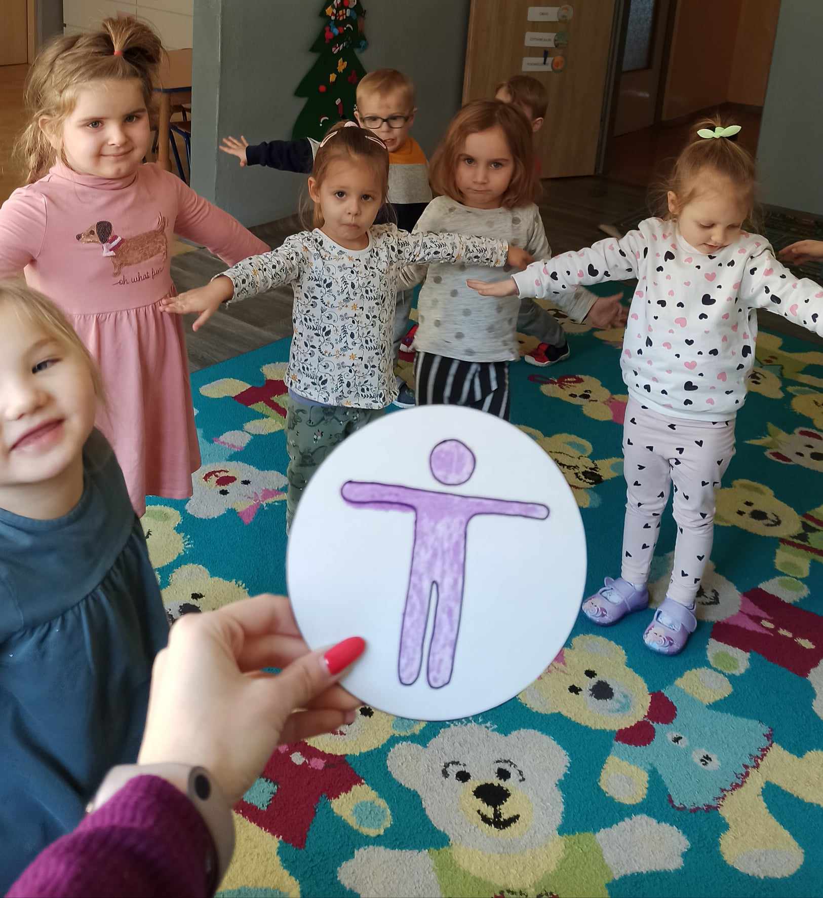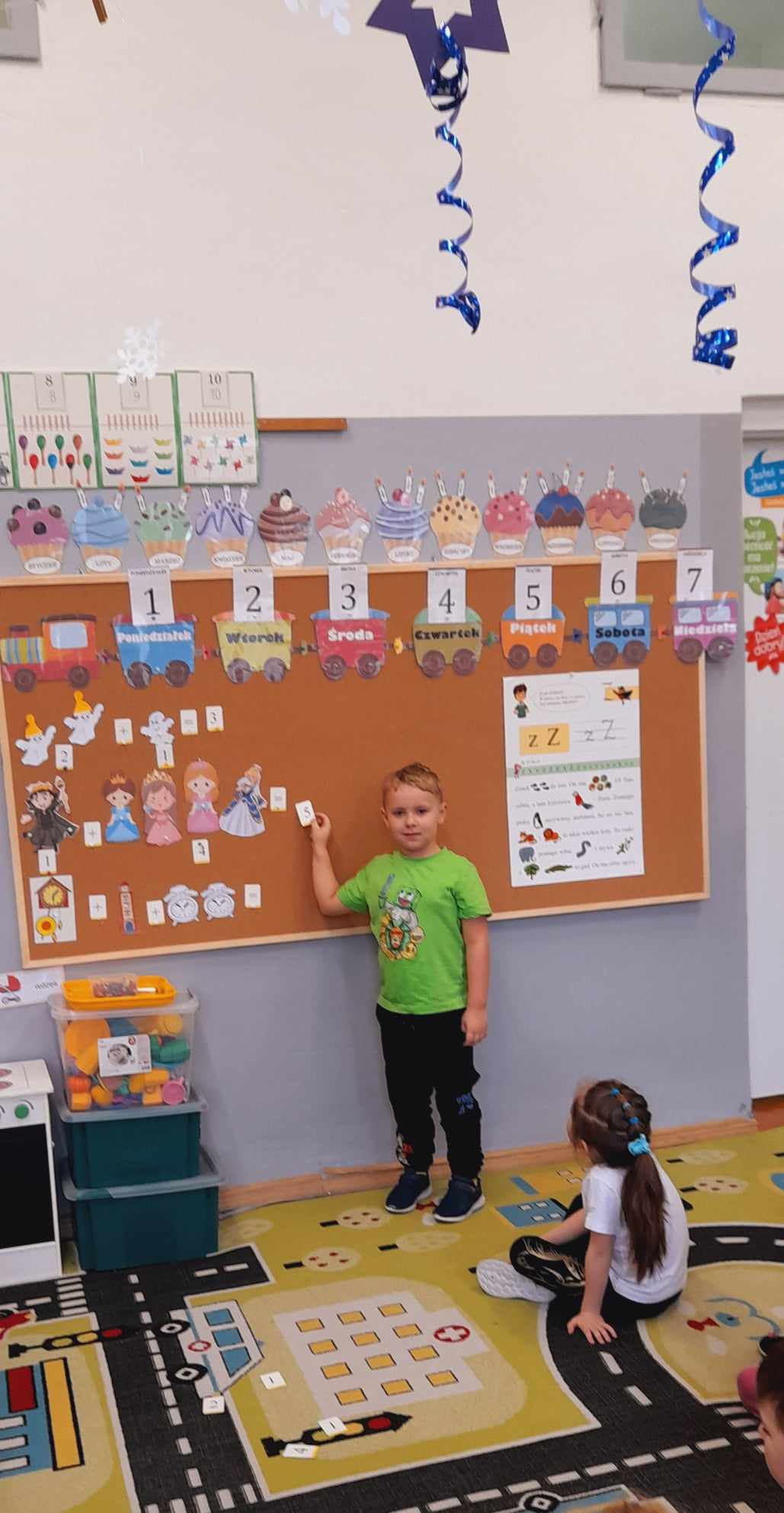 „Biedronki ” poznały litery „Z”, „B”, których kontur wypełniały przy użyciu różnych materiałów. Opanowały treść wiersza T.Fiutowskiej:” Co robią dni tygodnia?”, układając do niego we właściwej kolejności obrazki. Poznały znak matematyczny ,,+”, gdzie odczytywały i układały zapisy działań na dodawanie w zakresie 5. Brały udział w zabawie dydaktycznej: „Przyjęcie dla babci i dziadka „, gdzie miały za zadanie rozdzielić po tyle samo „smakołyków”. Doskonaliły umiejętność mierzenia długości przy pomocy sznurka. W ramach Ogólnopolskiego Projektu Edukacyjnego „Gramy zmysłami” grupa przygotowała zdrowe II śniadanie. Na sali gimnastycznej odbyły się zabawy ruchowe oraz zumba.