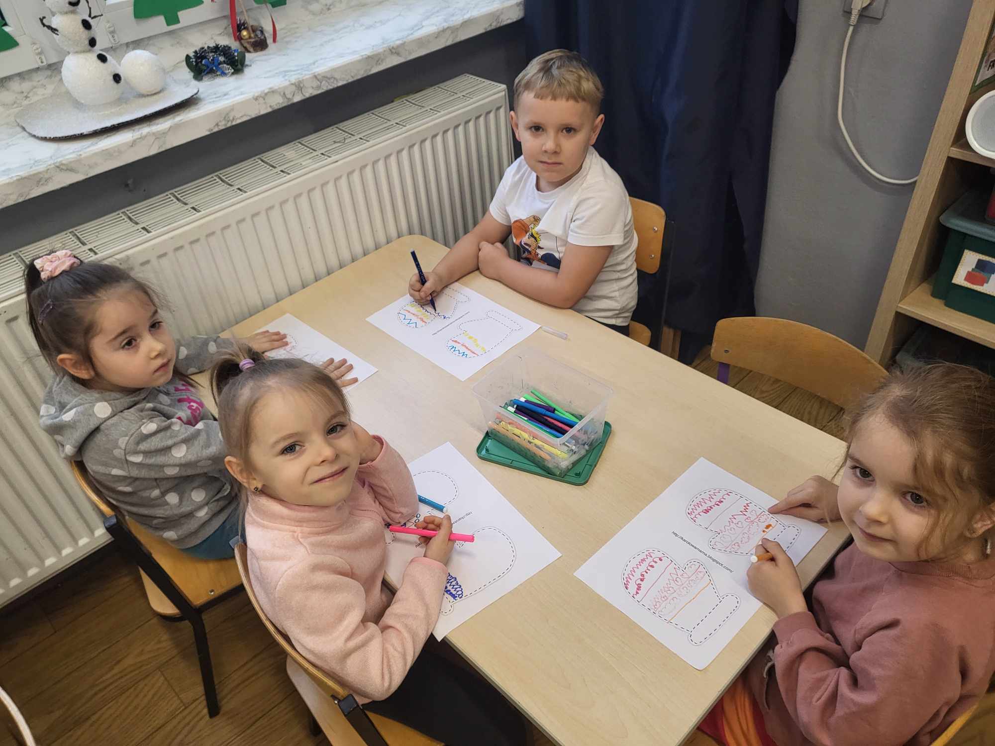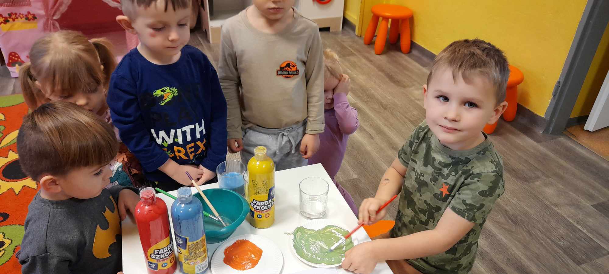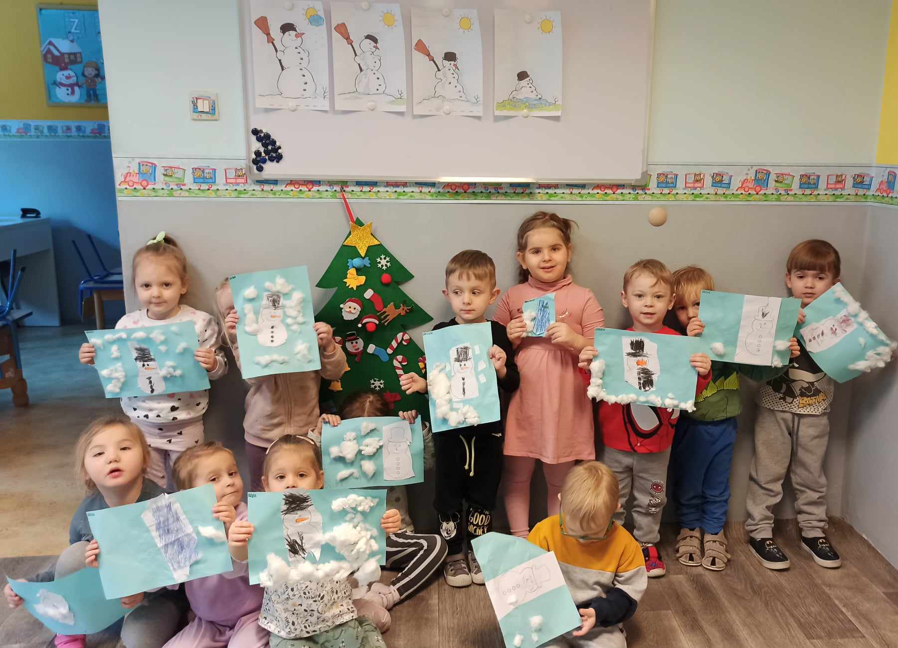 Dzieci z grupy „Misie” poznawały właściwości barw i sprawdzały, co wyjdzie z ich połączenia utrwalając nazwy kolorów. Z uwagą słuchały opowiadania o śniegu, rozmawiały o jego cechach, a także dowiedziały się, że nie ma dwóch takich samych śnieżynek. Dzieci tworzyły śnieżki i bałwanki z waty oraz wykonały prace plastyczne: bałwanka na śniegu oraz zimowy obrazek na folii.
