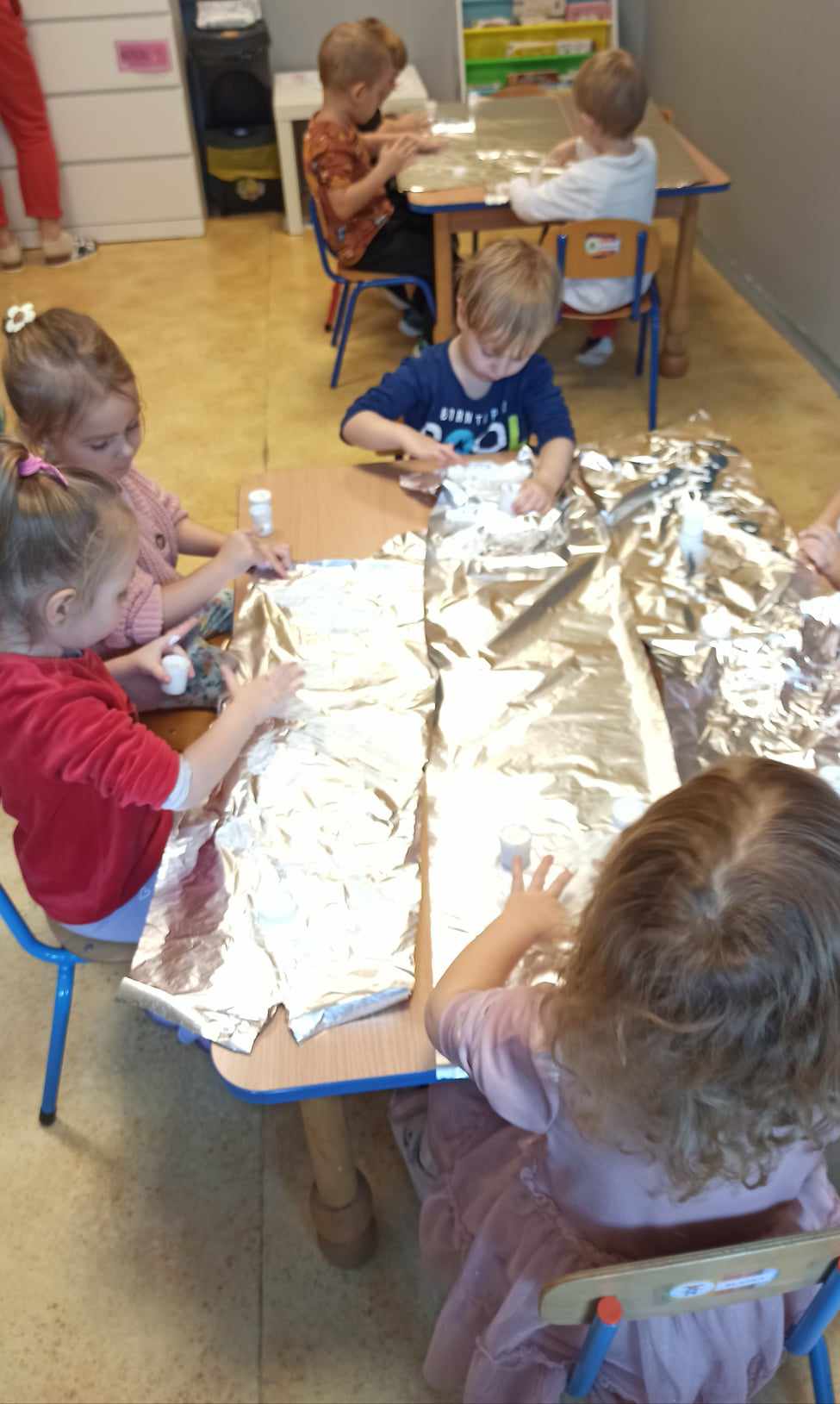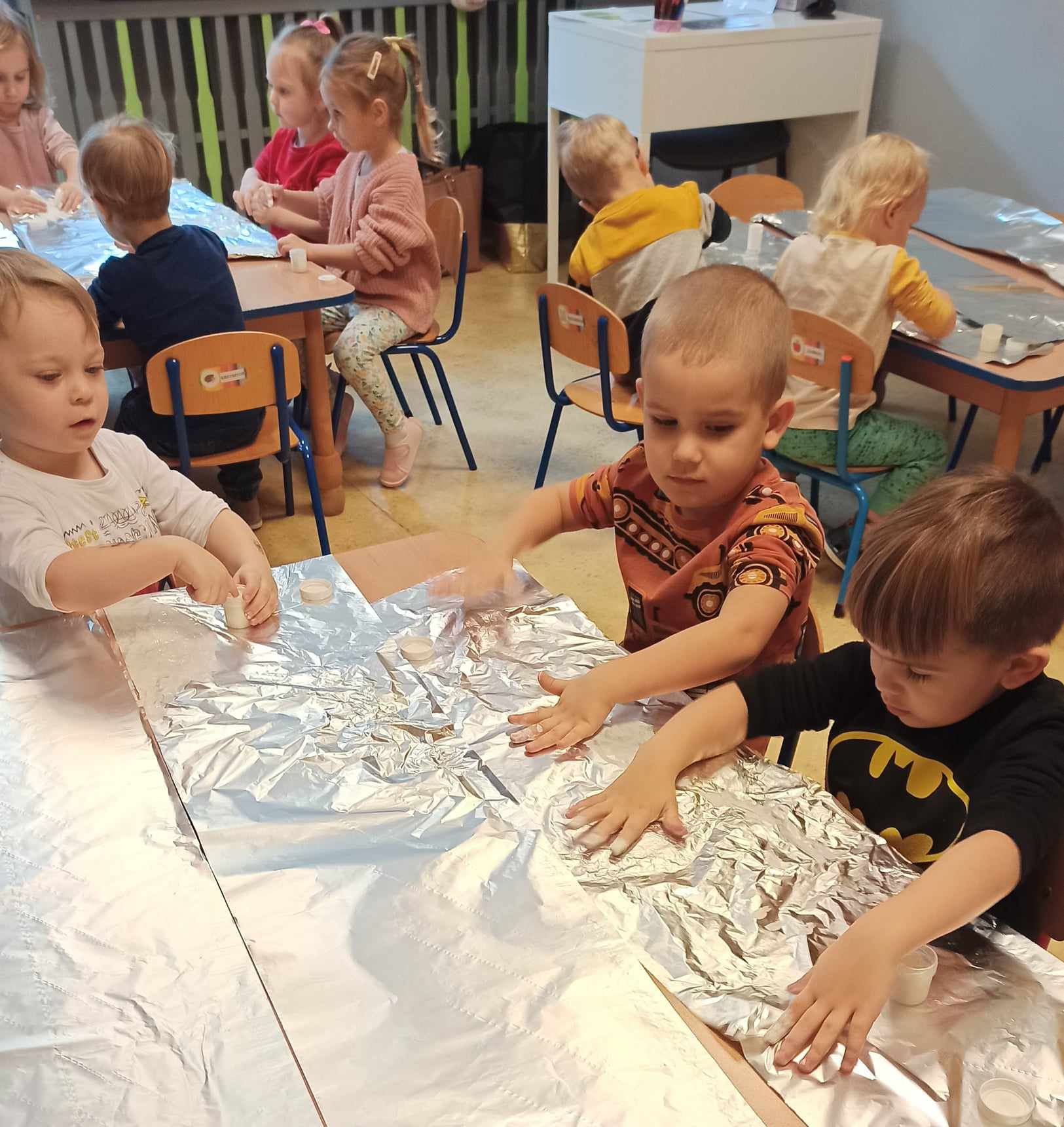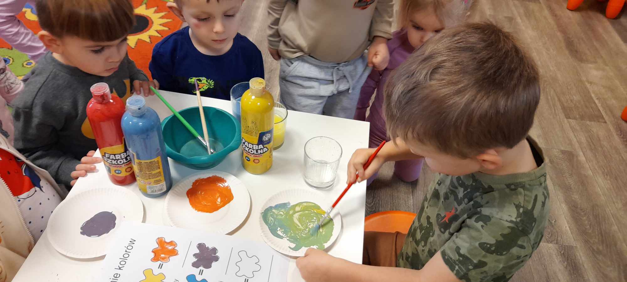 Dzieci z grupy „Misie” poznawały właściwości barw i sprawdzały, co wyjdzie z ich połączenia utrwalając nazwy kolorów. Z uwagą słuchały opowiadania o śniegu, rozmawiały o jego cechach, a także dowiedziały się, że nie ma dwóch takich samych śnieżynek. Dzieci tworzyły śnieżki i bałwanki z waty oraz wykonały prace plastyczne: bałwanka na śniegu oraz zimowy obrazek na folii.