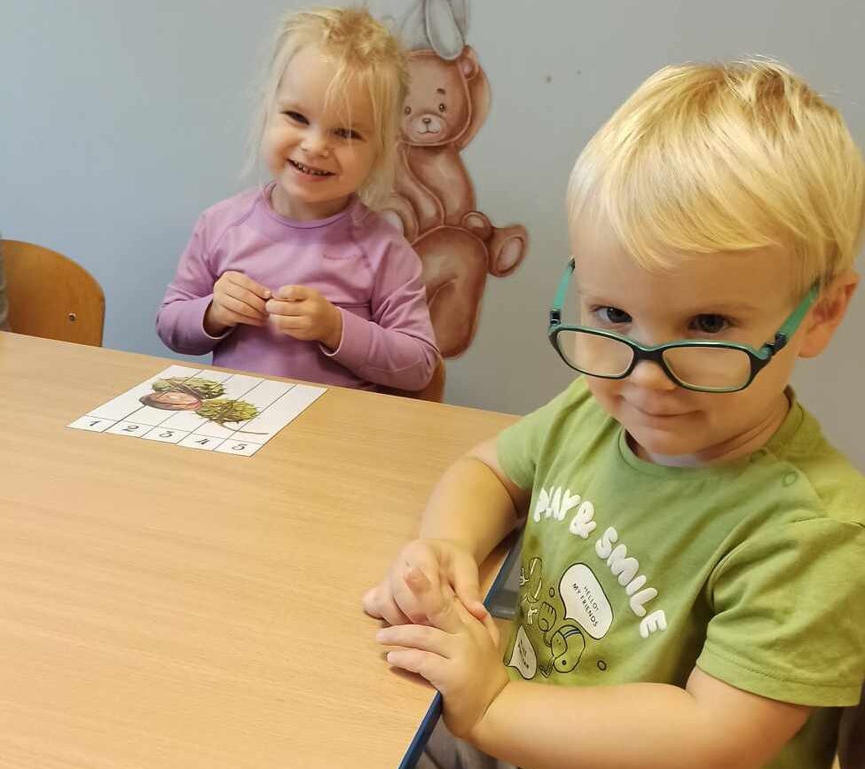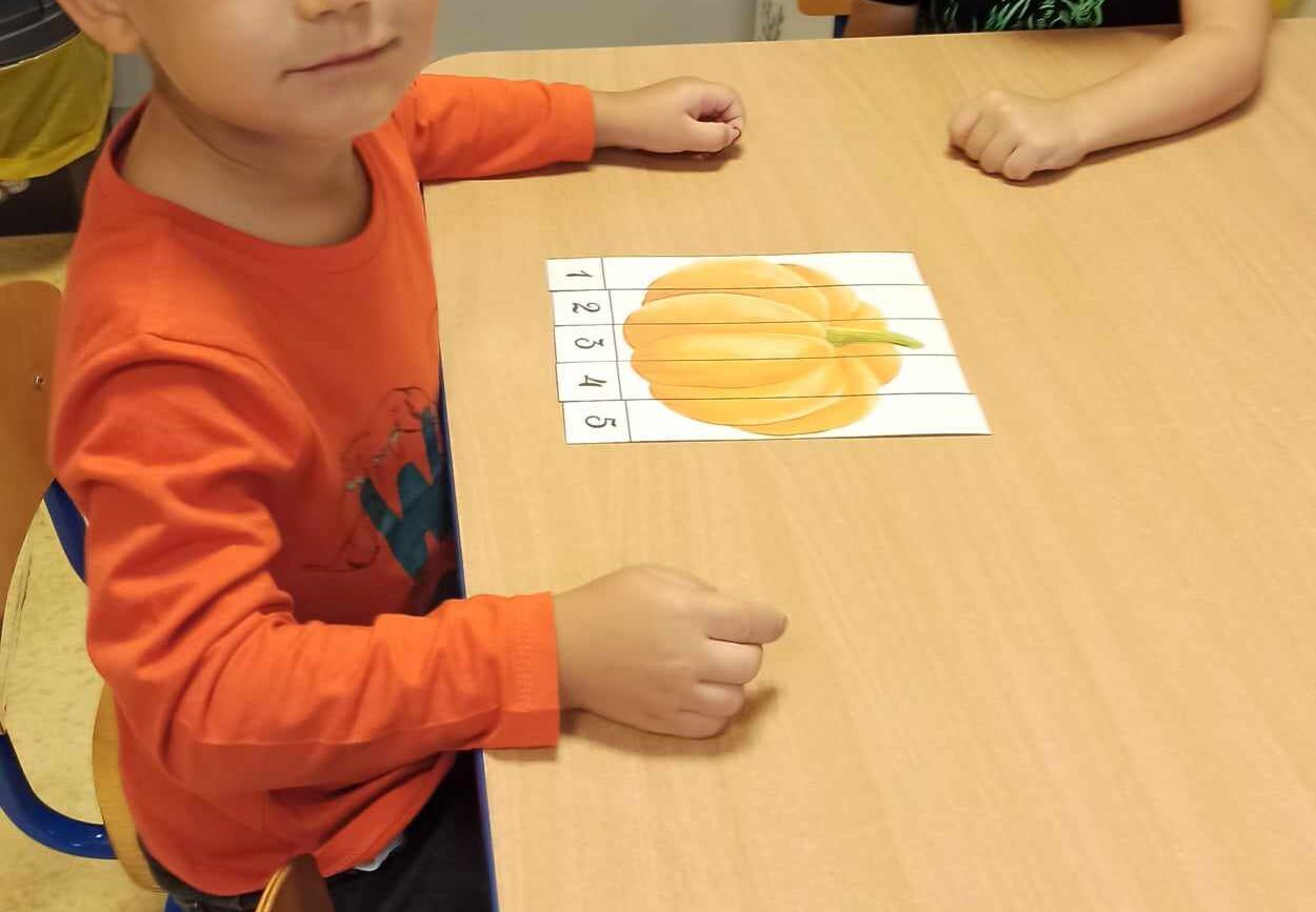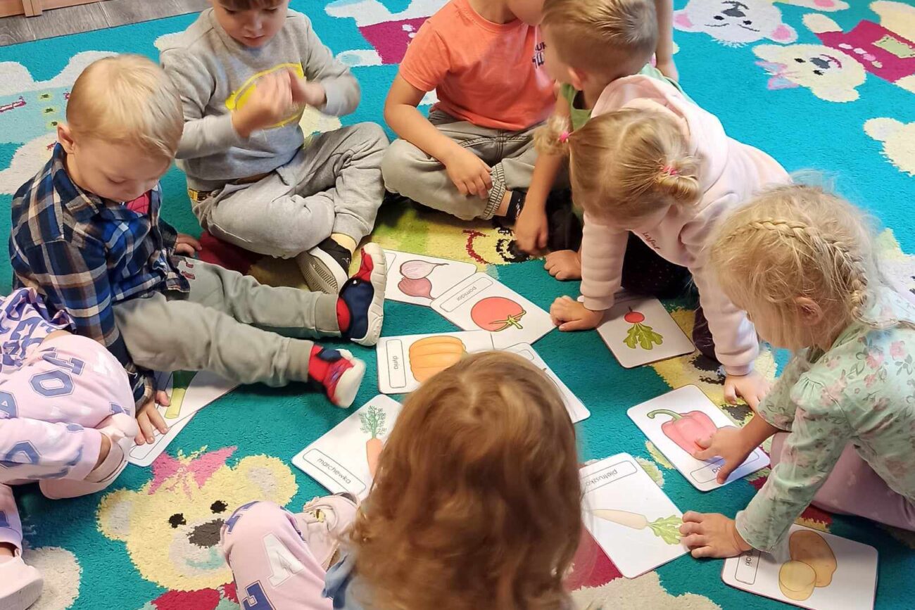 W tym tygodniu „Misie” rozmawiały o warzywach. Utrwalały ich nazwy oraz poznały właściwości zdrowotne. Klasyfikowały ilustracje ze względu na kolor. Próbowały odtworzyć podany wzór za pomocą kasztanów, drużynowo układały puzzle, a także wykonały pracę plastyczną.