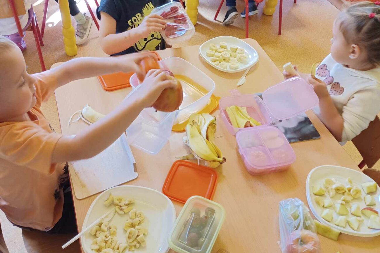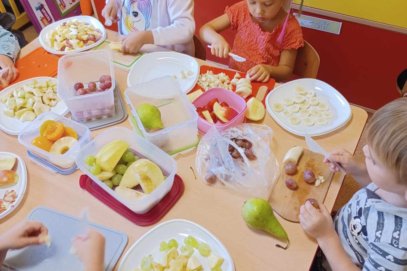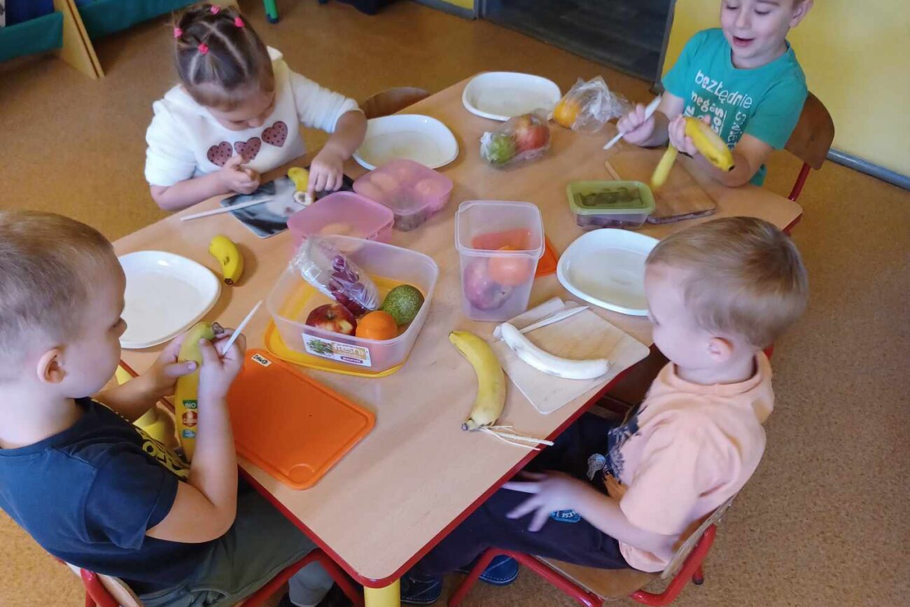 Grupa „Motylki” w tym tygodniu rozmawiała o witaminach. A skoro witaminy to nie mogło zabraknąć sałatki owocowej, która dzieci same przygotowały. Dodatkowo pracowały dzielnie w książkach oraz stworzyły „ziemniaczanego stworka”, gdzie doskonaliły motorykę małą. „Motylki” uczestniczyły również w zajęciach z projektu edukacyjnego „Nie lada to gratka, poznajemy Misia Uszatka”, z którym wybrały się na jesienny spacer. Swoje urodzinki świętowała Wiktoria.
