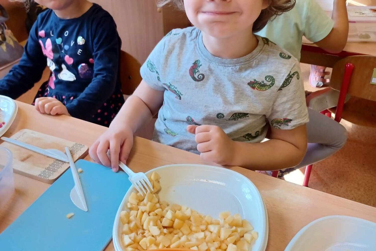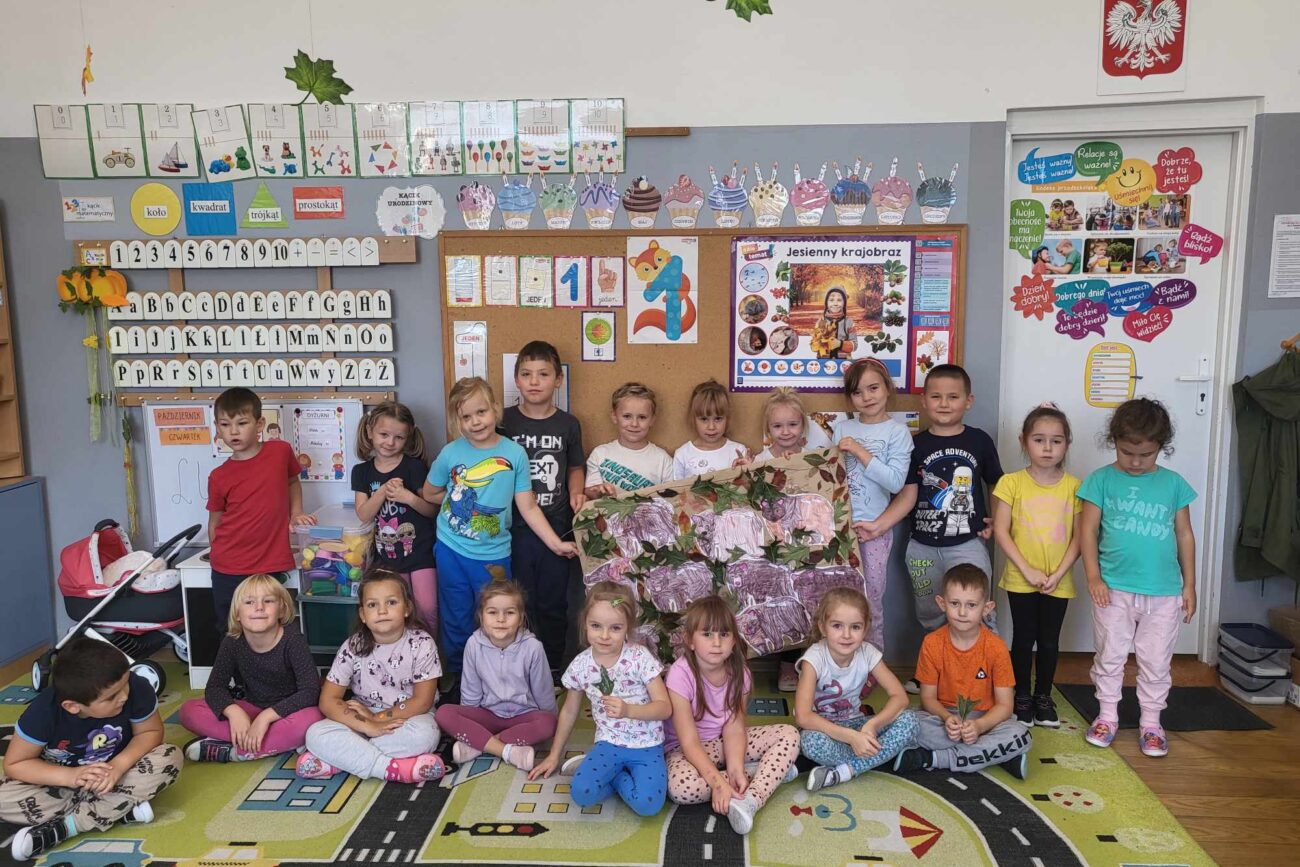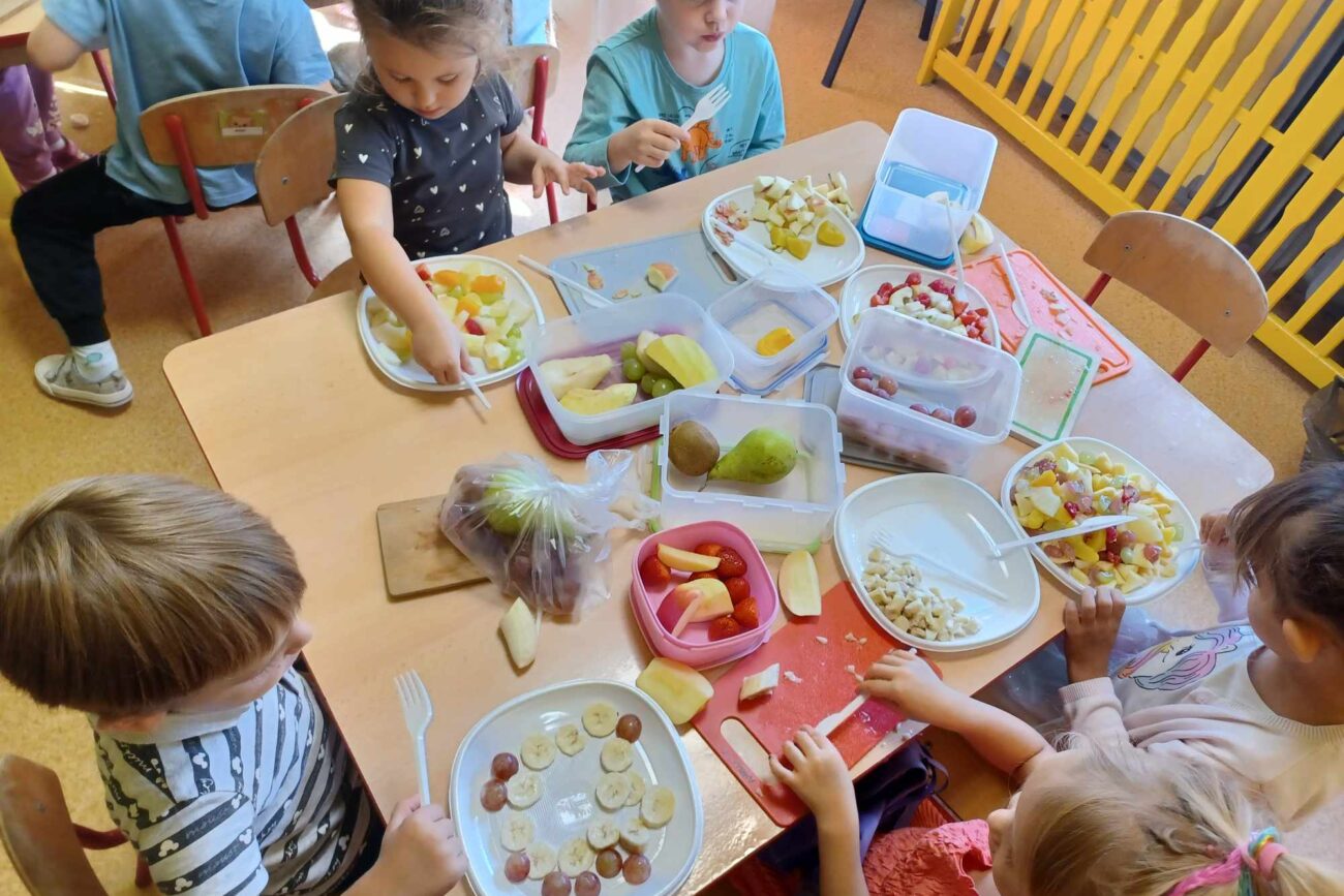 Grupa „Motylki” w tym tygodniu rozmawiała o witaminach. A skoro witaminy to nie mogło zabraknąć sałatki owocowej, która dzieci same przygotowały. Dodatkowo pracowały dzielnie w książkach oraz stworzyły „ziemniaczanego stworka”, gdzie doskonaliły motorykę małą. „Motylki” uczestniczyły również w zajęciach z projektu edukacyjnego „Nie lada to gratka, poznajemy Misia Uszatka”, z którym wybrały się na jesienny spacer. Swoje urodzinki świętowała Wiktoria.