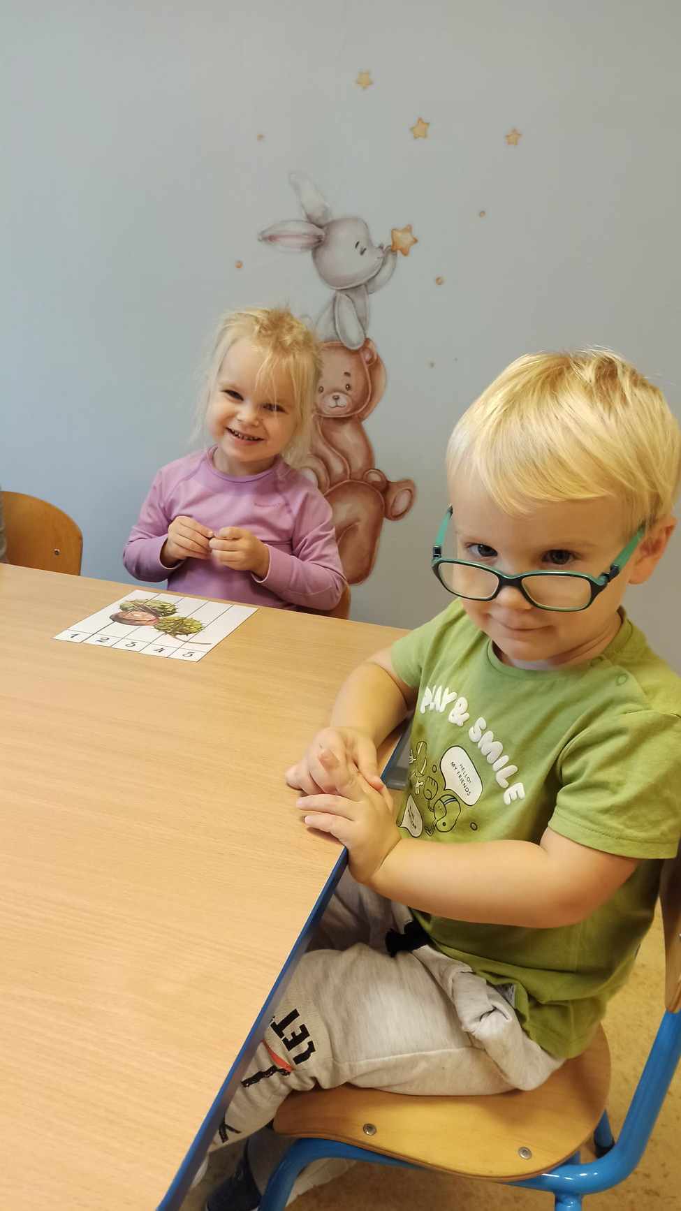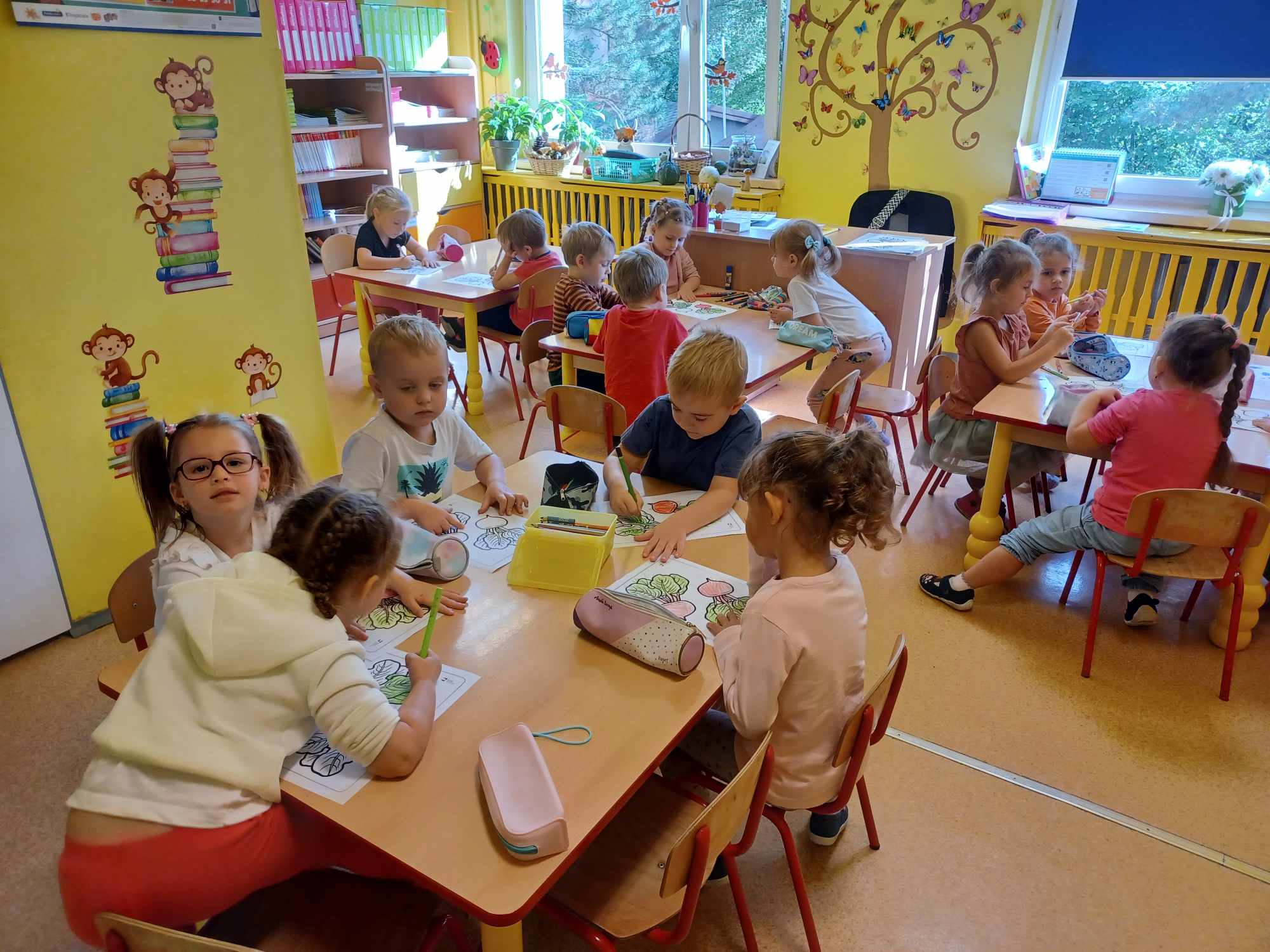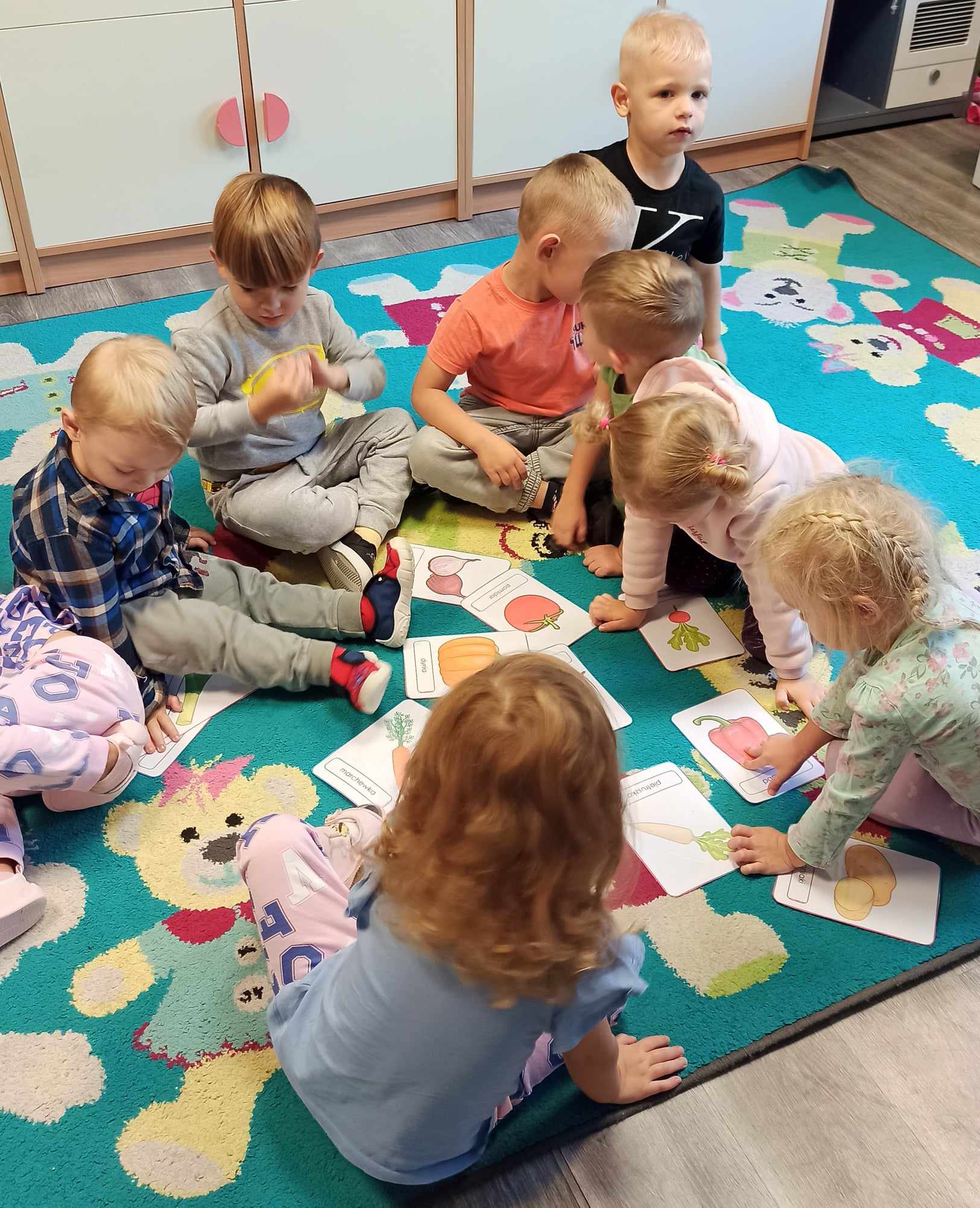 W tym tygodniu „Misie” rozmawiały o warzywach. Utrwalały ich nazwy oraz poznały właściwości zdrowotne. Klasyfikowały ilustracje ze względu na kolor. Próbowały odtworzyć podany wzór za pomocą kasztanów, drużynowo układały puzzle, a także wykonały pracę plastyczną.
