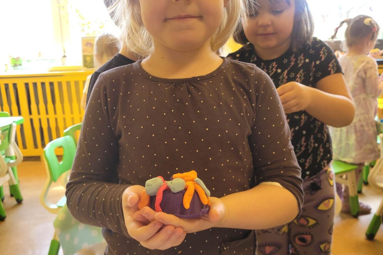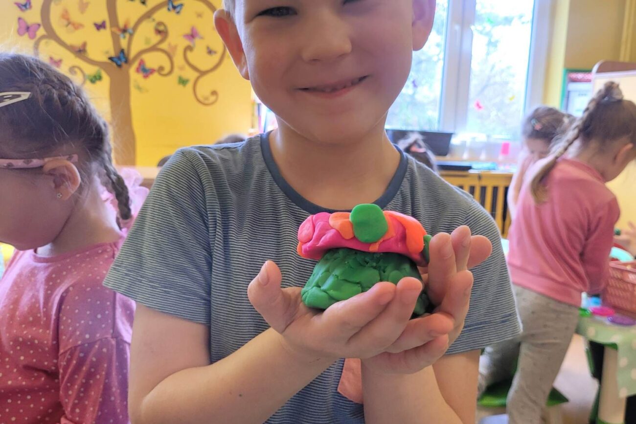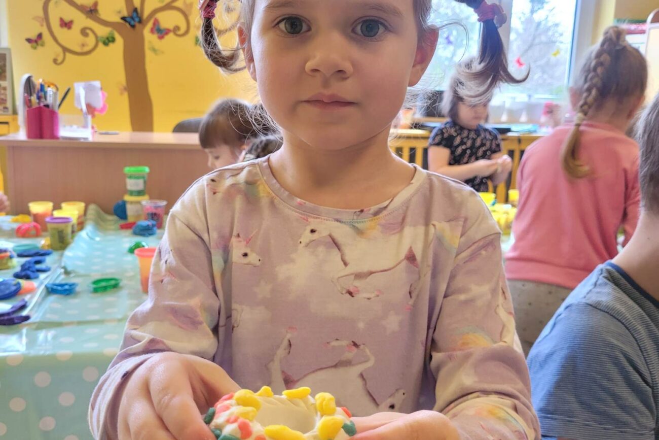 Wszystkie grupy w tym tygodniu rozmawiały o Świętach Wielkanocnych. Poznały tradycje świąt oraz symbole. Nauczyły się piosenek o pisankach. Wykonały pracę plastyczne pt. „Pisanka” , „Palma Wielkanocna”, „Zajączek”. Nie zabrakło szukania ukrytych jaj w sali oraz „pieczenia” babek z ciastoliny.