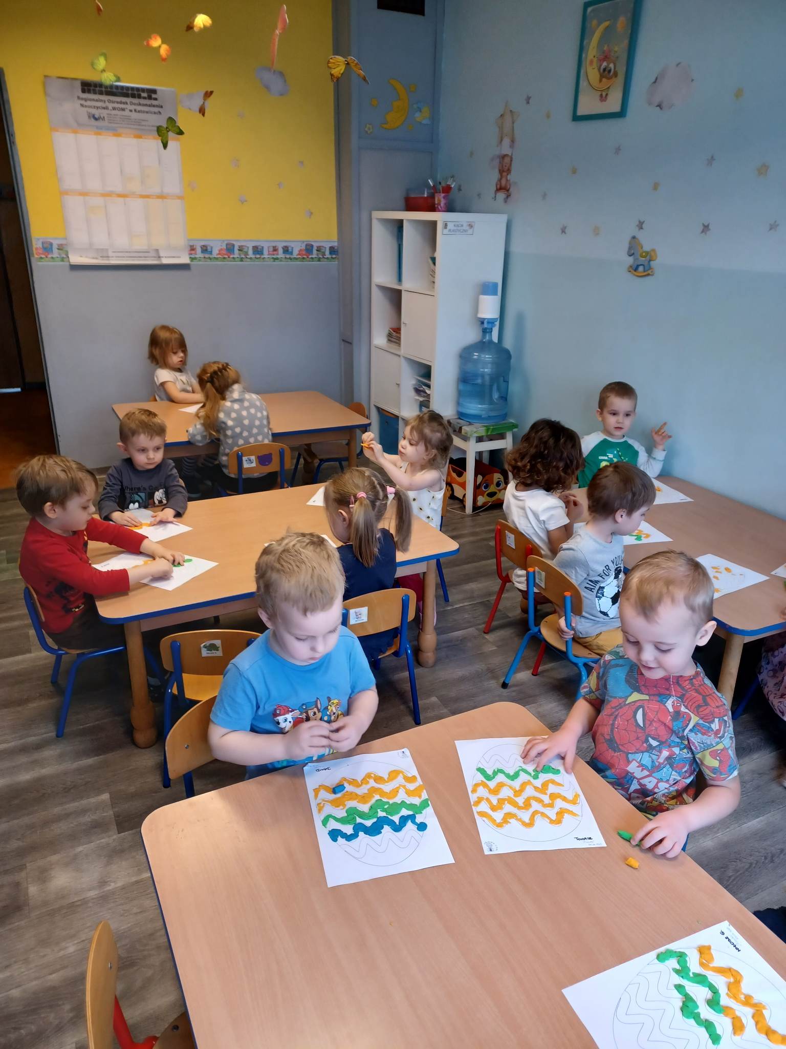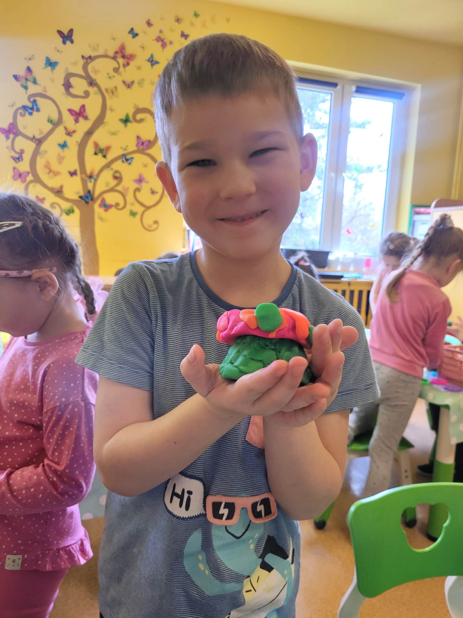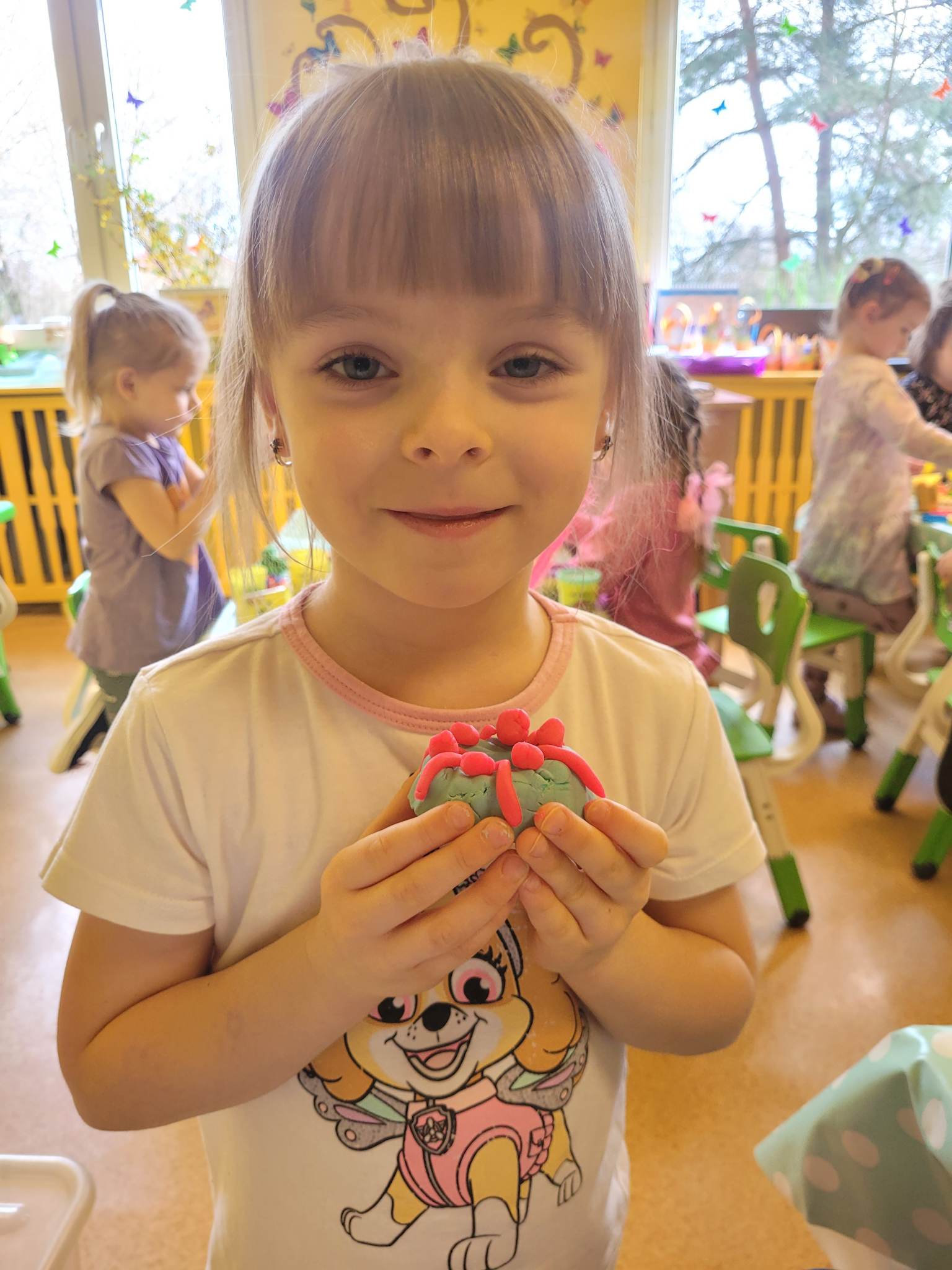 Wszystkie grupy w tym tygodniu rozmawiały o Świętach Wielkanocnych. Poznały tradycje świąt oraz symbole. Nauczyły się piosenek o pisankach. Wykonały pracę plastyczne pt. „Pisanka” , „Palma Wielkanocna”, „Zajączek”. Nie zabrakło szukania ukrytych jaj w sali oraz „pieczenia” babek z ciastoliny.