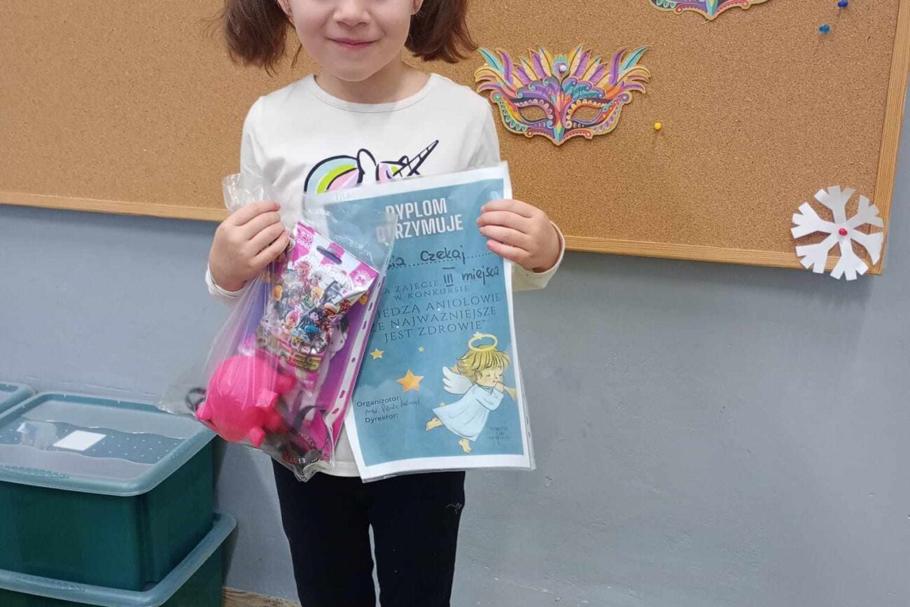 Zosia zajeła III miejsce w konkursie plastycznym organizowanym przez przedszkole 38 w Sosnowcu – „Wiedzą Aniołowie, że najważniejsze jest zdrowie”.