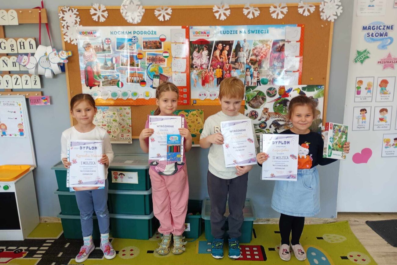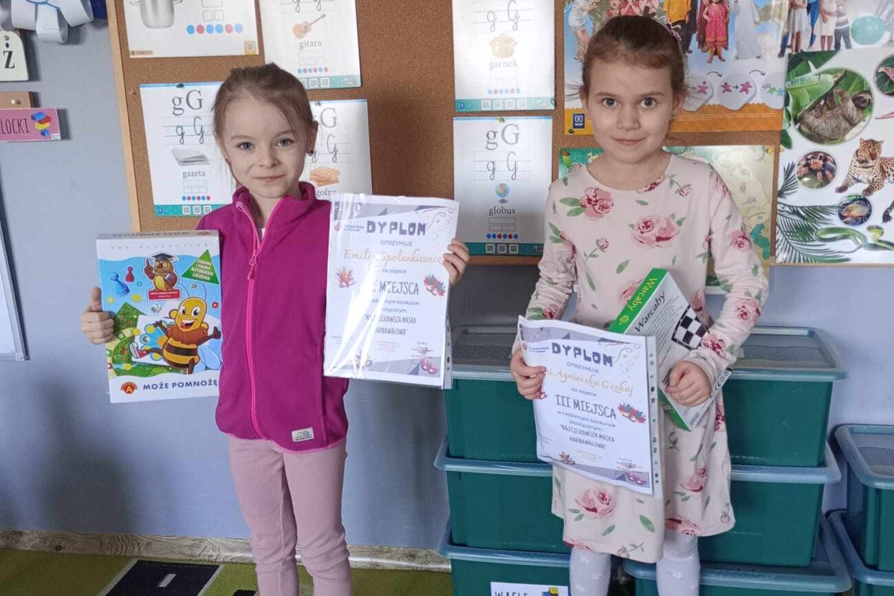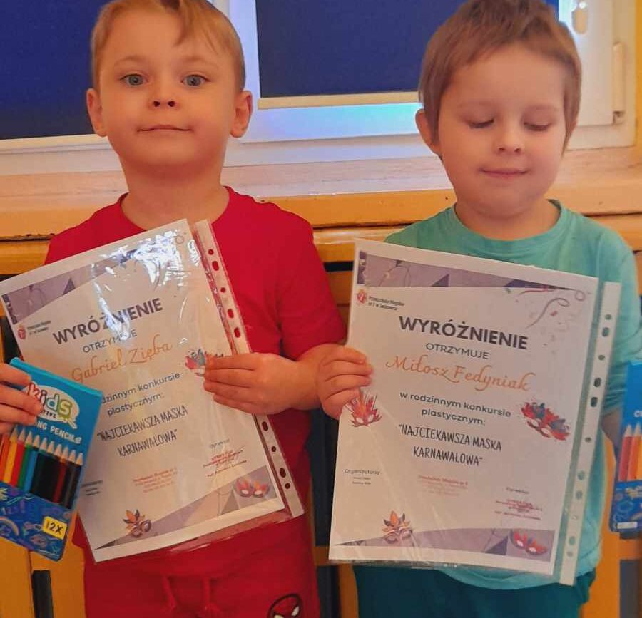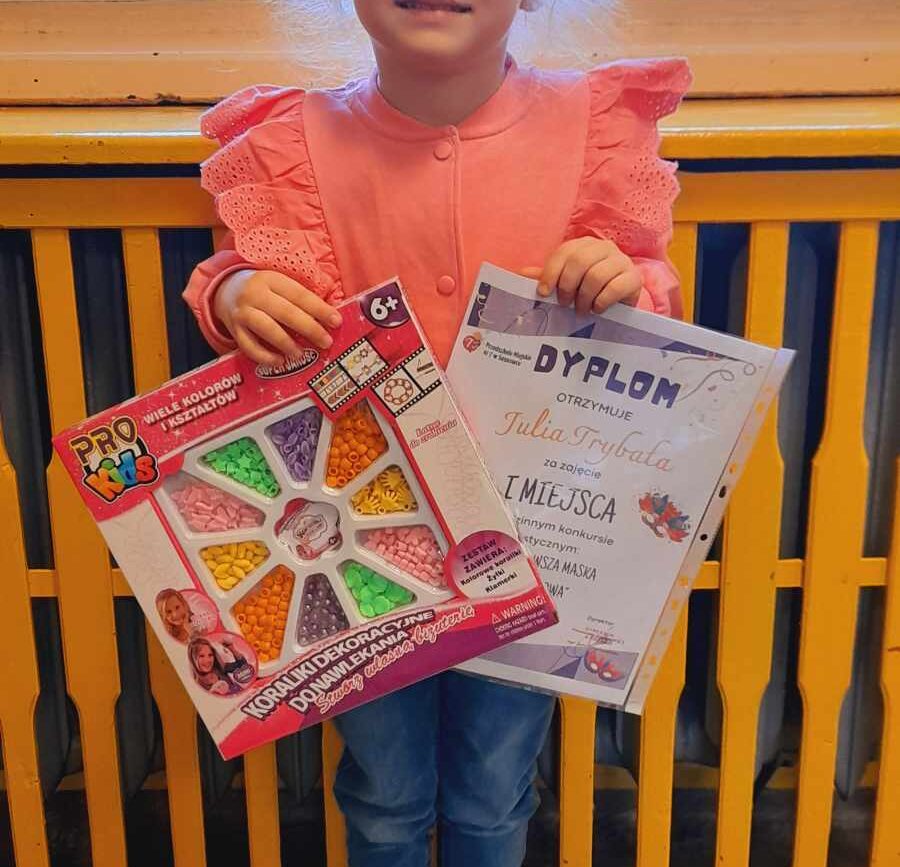 W rodzinnym konkursie „Najciekawsza maska karnawałowa” Kornelia zajęła I miejsce, Emilka i Łucja II miejsce natomiast Zosia III miejsce,