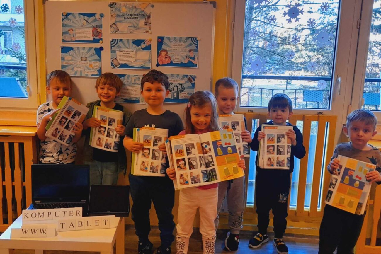 W minionym tygodniu przedmiotem zainteresowań „Misiów” i „Motylków” była przyroda ożywiona – zwierzęta egzotyczne. Temat ten dzieci i wielu dorosłych budzi skrajne emocje – zachwyt i przerażenie, fascynację i niepewność. Stopniowe oswajanie ze światem przyrody pozwala niwelować lęk i przerażenie. Poznajemy zwierzęta – wiemy, jak wyglądają, znamy ich środowisko życia, zachowania – to pozwala nam uniknąć niebezpieczeństw w kontaktach bezpośrednich. Emocje Uli i Stefana – bohaterów opowiadania „Wystawa pająków” – towarzyszące oglądaniu egzotycznych pajęczaków pokazały, że zwierzęta nie zawsze budzą zachwyt, a nawet można się ich bać. Taki strach trzeba uszanować, tak jak to zrobił tata Uli, i nie zmuszać dziecka do oglądania okazów. Dziecięcy lęk należy oswajać stopniowo, np. poprzez oglądanie obrazków, albumów, filmów. W tym tygodniu ciekawość dzieci zaspokajałyśmy, zapraszając je do wielu różnorodnych zabaw: „Co to znaczy zwierzę egzotyczne?”, „Środowisko życia zwierząt” – zabawy tematyczne, „Strach, wstręt, radość czy miłość?” – zabawa ruchowa kształtująca rozpoznawanie i nazywanie emocji, przybliżająca wygląd i nazwy wybranych zwierząt egzotycznych oraz pokazująca, jak bezpiecznie zachowywać się wobec nich. Zabawy ruchowe i naśladowcze do wierszy A. Edyk-Psut „Słoń” oraz „Zoo” J. Brzechwy oraz oglądanie ilustracji miały na celu poznanie wyglądu i środowiska życia zwierząt oraz znaczenia pojęcia „ogród zoologiczny”. Dzieci wysłuchały także „Ciekawostek na dywanie” – informacji o kangurze, rozwiązywały zagadki o zwierzętach oraz śpiewały „Słoniową piosenkę”. Doskonaliły umiejętność liczenia w zabawie matematycznej „Kolorowe nogi pająka”. Porównywały długość i wysokość, stosując określenia: długi – krótki, wysoki – niski w zabawie „Jak długa jest trąba słonia?”. Zwierzęta to dla dzieci interesujący temat prac plastycznych. Swoje emocje i przeżycia związane z kontaktem z egzotycznymi zwierzętami wyrażały w pracach: „Kolorowy pająk”, „Kolorowy słoń” oraz „Lew”. Urodziny obchodzili Patryk i Sarah. W następnym tygodniu obchodzony był Dzień Bezpiecznego Internetu, który ma celu zwrócenie uwagi na kwestie bezpiecznego dostępu dzieci do zasobów internetowych. Przedszkolaki poznały pojęcia: ,,monitor”, ,,klawiatura”, ,,myszka” oraz nazwy urządzeń cyfrowych: tablet, smartfon. Uczestniczyły w zabawie integracyjnej na podstawie zabawy,,kłębek przyjaźni”, który pozwolił lepiej zrozumieć pojęcie internetu jako sieci komputerów wykorzystywanych do komunikacji. Podczas zajęć zwrócono uwagę na zasady bezpiecznego i racjonalnego korzystania z komputera oraz zasady korzystania z sieci tzw. netykiety.Poznały dawne oraz współczesne sposoby komunikacji z wykorzystaniem nowoczesnych technologii. ,,Motylki” i ,,Misie”przeliczały elementy przedstawione na obrazkach, przyporządkowując je do odpowiedniej cyfry oznaczonej zapisem graficznym, tj.liczbą oczek.,, Motylki” kontynuowały tematykę karnawałową, ozdabiając maski.W rodzinnym konkursie plastycznym: ,,Najciekawsza maska karnawałowa ” I miejsce zajęła Julia T., III miejsce – Anastazja Z., a wyróżnienia otrzymali: Miłosz F.i Gabriel Z. Gratulujemy!