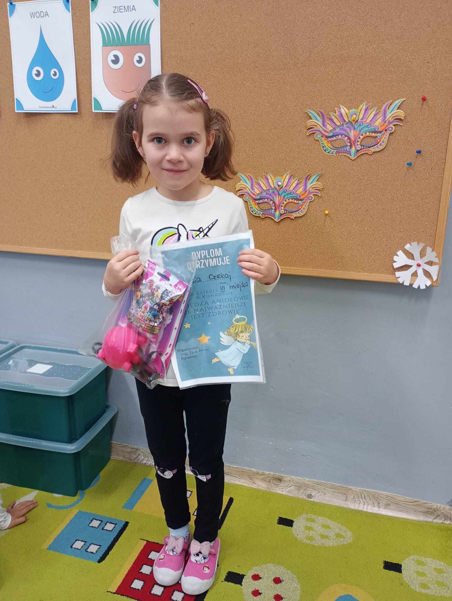 Zosia zajeła III miejsce w konkursie plastycznym organizowanym przez przedszkole 38 w Sosnowcu – „Wiedzą Aniołowie, że najważniejsze jest zdrowie”.