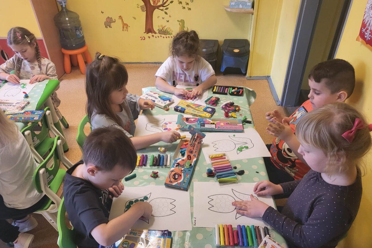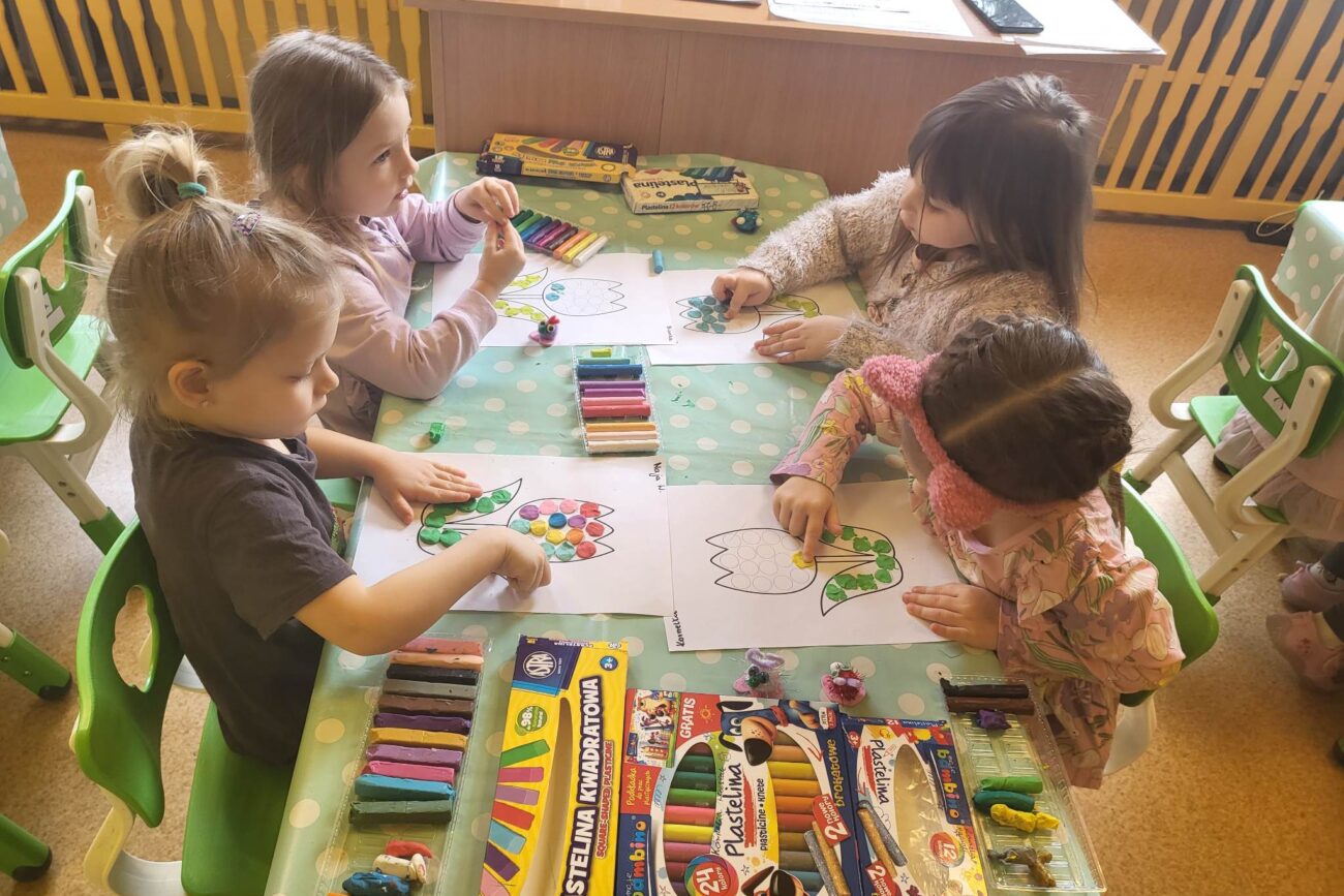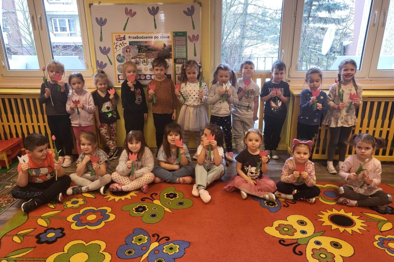 Grupa Motylki poruszała tematy związane z wiosennymi kwiatami. Przedszkolaki zapoznały się z zawodem florysty, wykonały prace plastyczne: Tulipan oraz Hiacynt. Grupa wybrała sie na przedszkolny plac zabaw, aby zobaczyć kwitnące stokrotki.