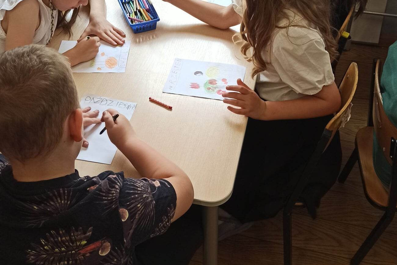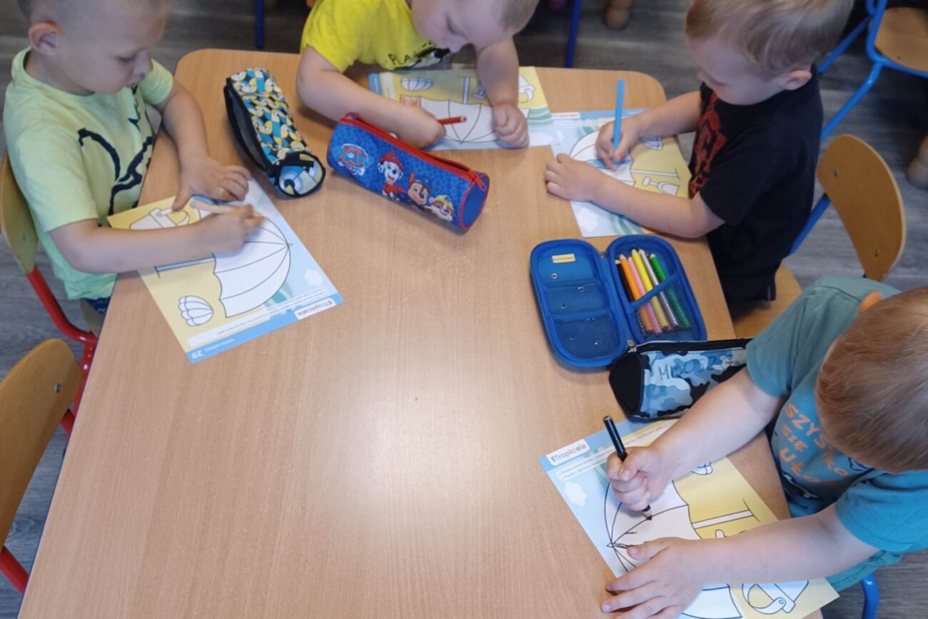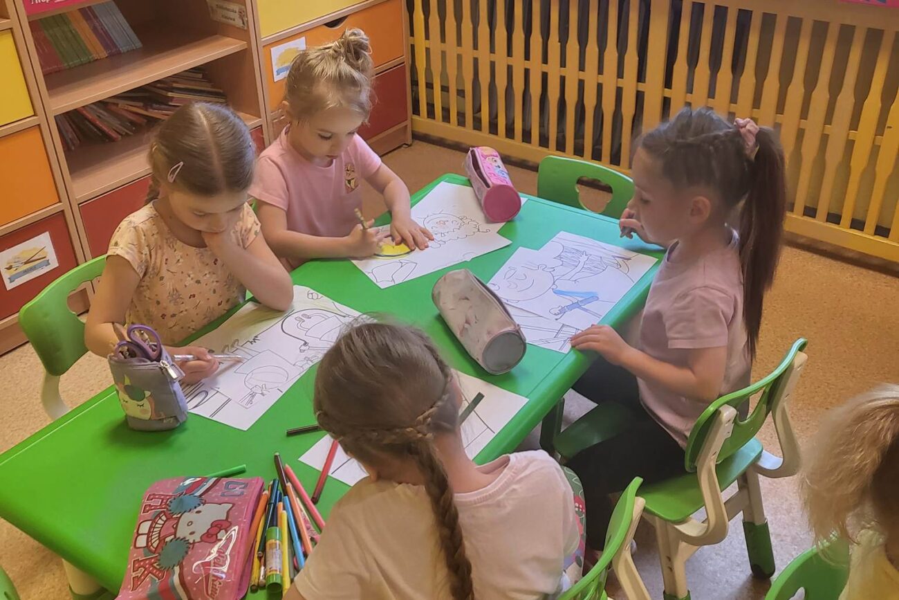 Grupa „Misie” rozmawiała o kolorach, które kojarzą się nam z latem. Wykonała pracę plastyczne malując farbami oraz kredkami wakacyjne krajobrazy. Pracowała wytrwale w kartach pracy, systematyzując swoją wiedze.