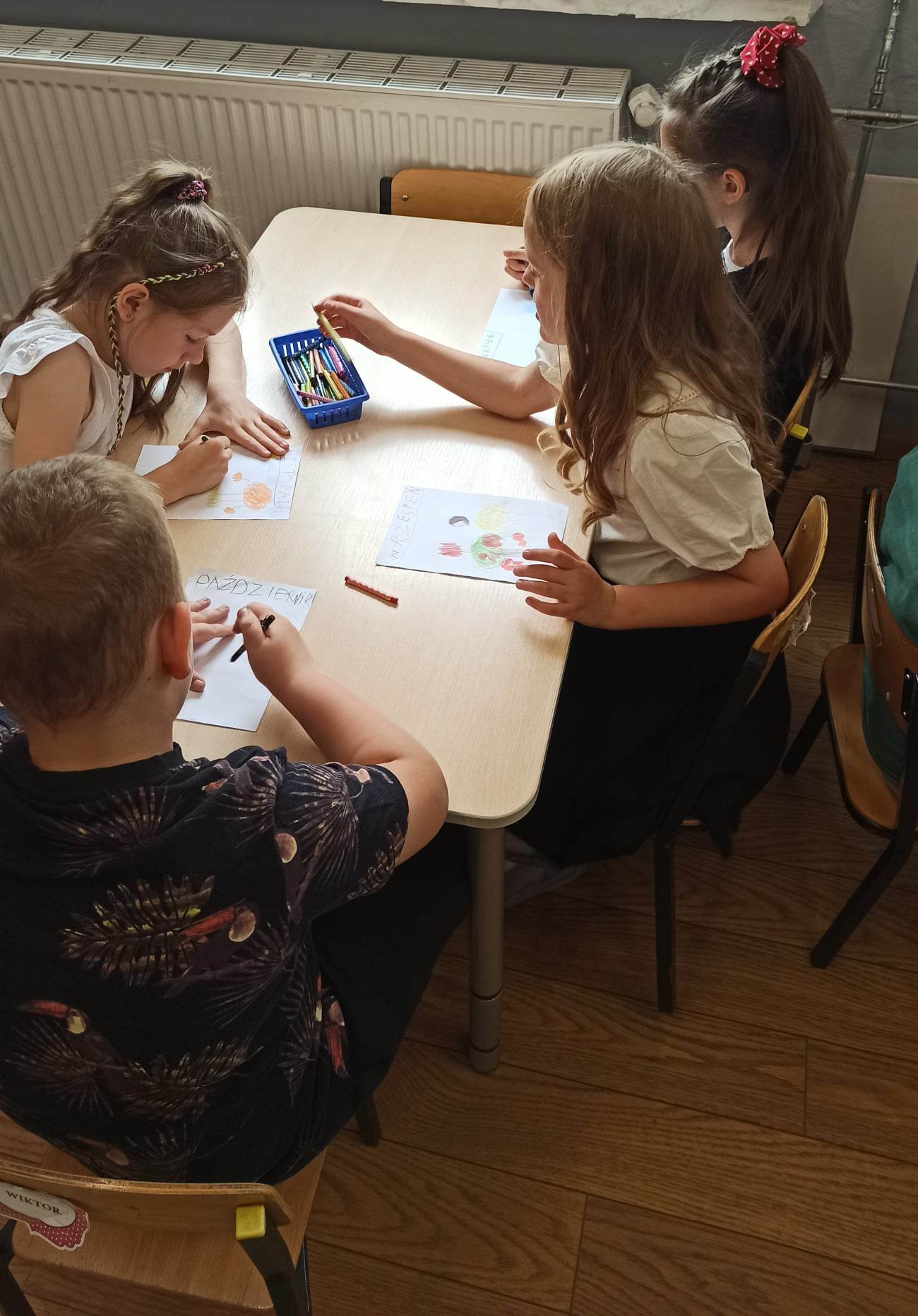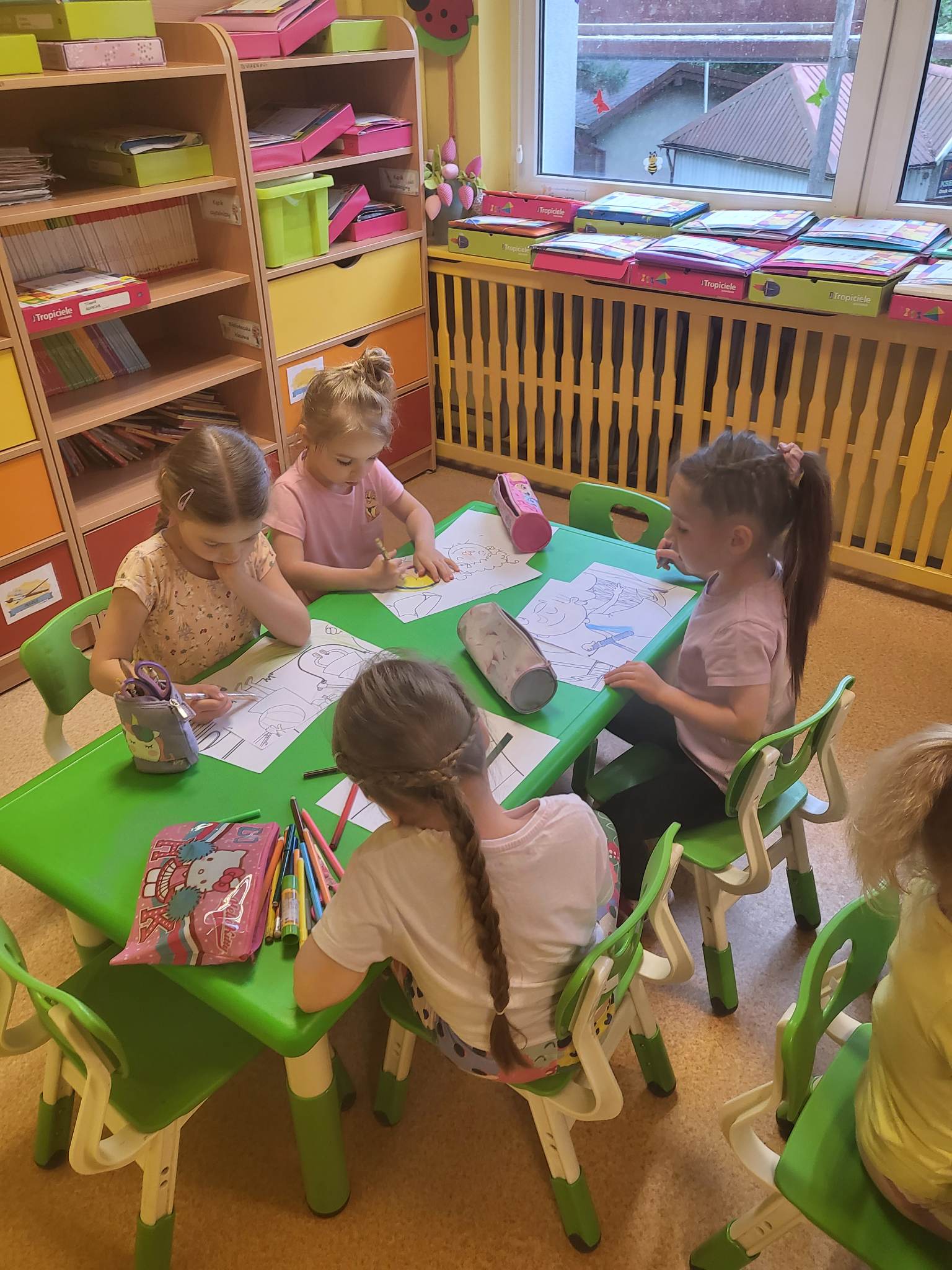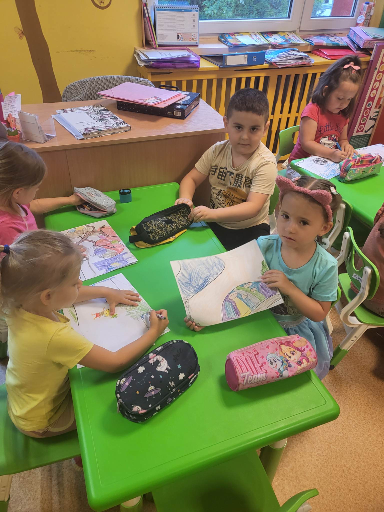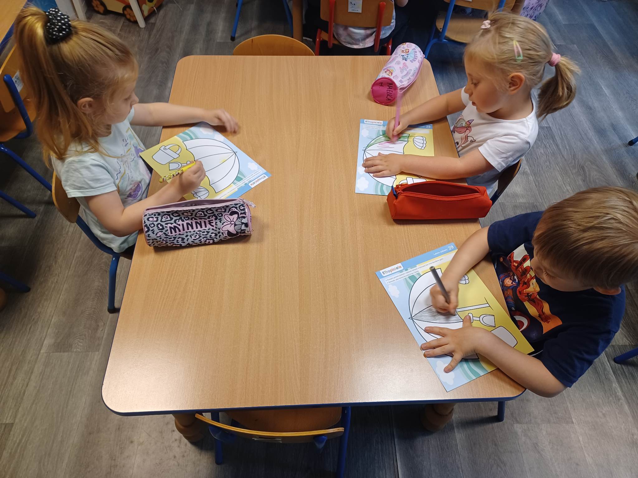 Grupa „Misie” rozmawiała o kolorach, które kojarzą się nam z latem. Wykonała pracę plastyczne malując farbami oraz kredkami wakacyjne krajobrazy. Pracowała wytrwale w kartach pracy, systematyzując swoją wiedze.