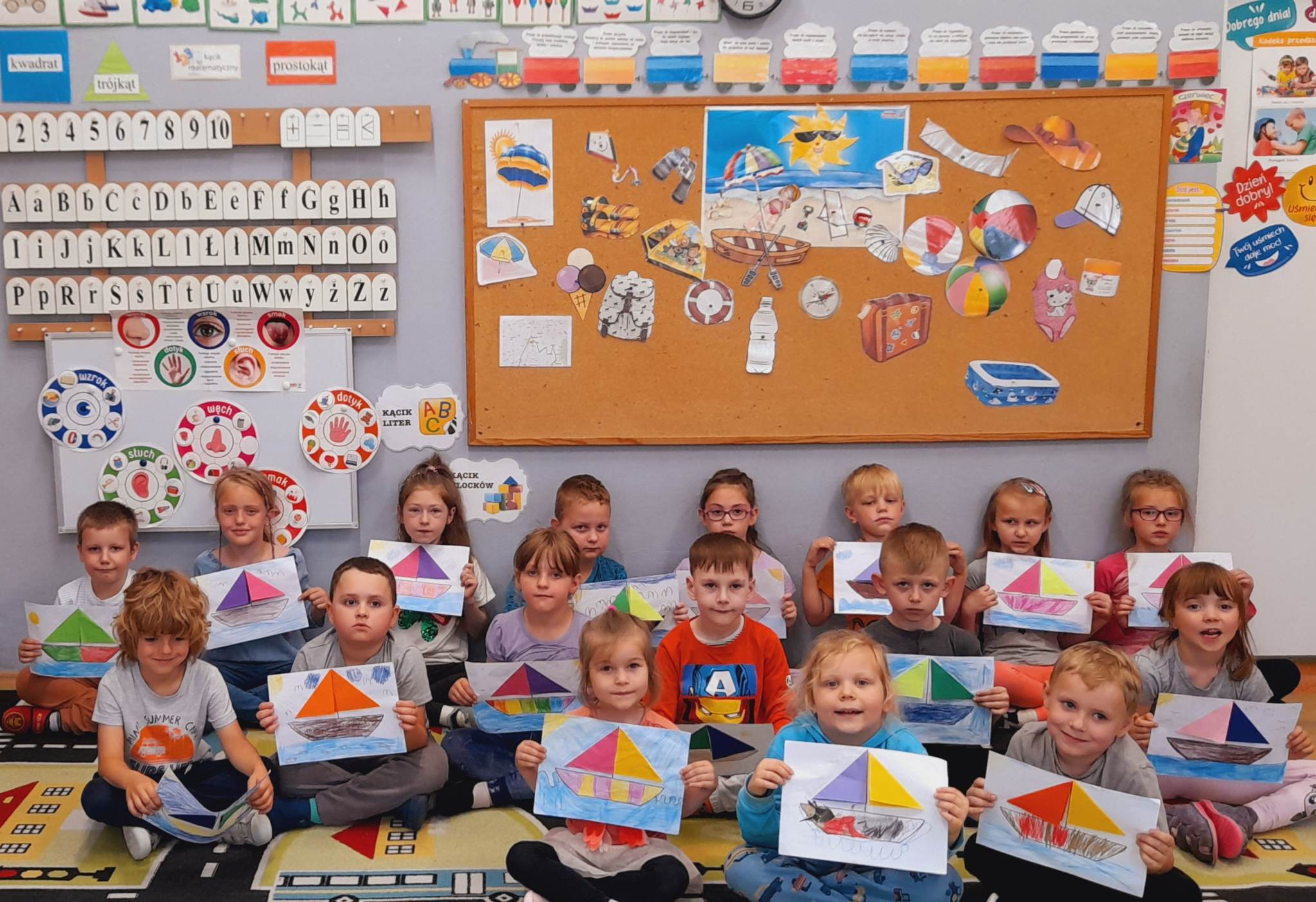 Grupa „Biedronki” rozmawiała o zasadach bezpieczeństwa podczas letniego wypoczynku. Wykonywała pracę plastyczno- techniczną: „Żaglówkę” z origami płaskiego – kwadratów oraz przygotowywała taniec: „Toca – toca” na zakończenie roku szkolnego. Dzieci przypomniały sobie nazwy pór roku, miesięcy oraz dni tygodnia i utrwaliły je poprzez wykonywanie ćwiczeń zarówno plastycznych, językowych, jak i ruchowych.