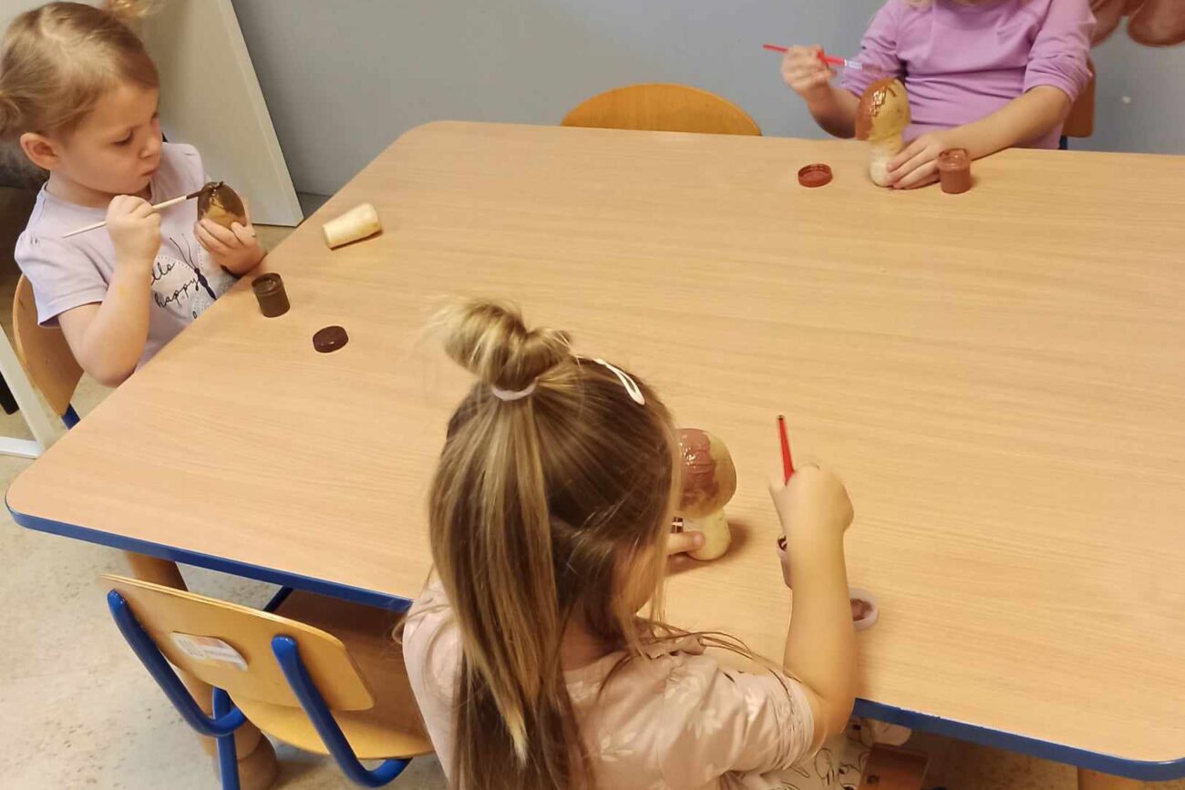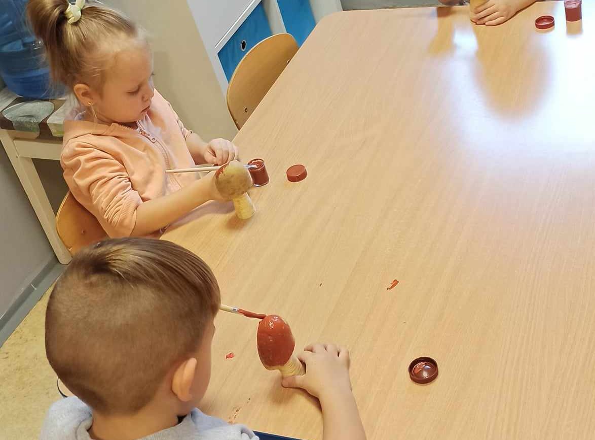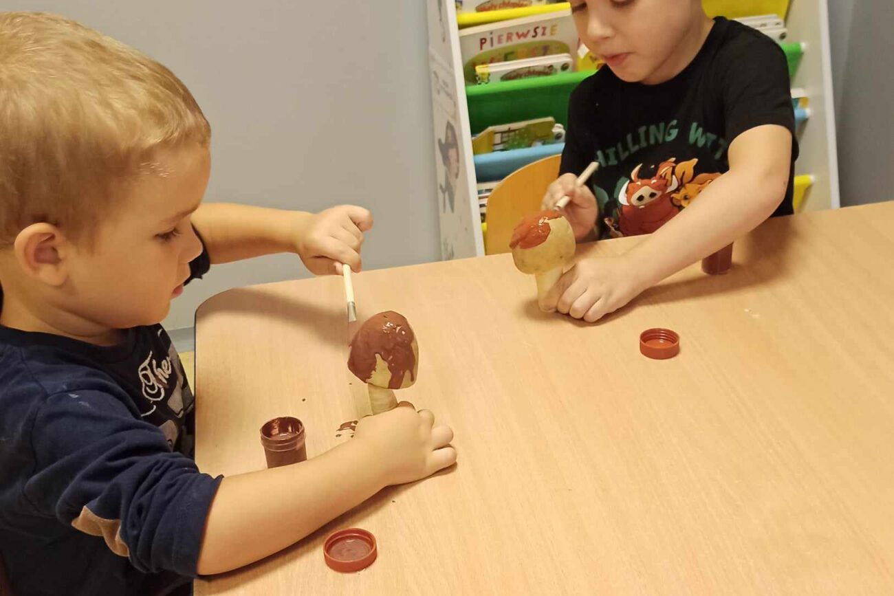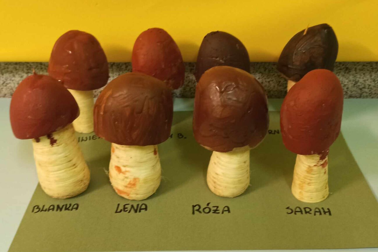 „Misie” w tym tygodniu poznawały dary i mieszkańców lasu. Poznały budowę grzybów, słuchały ciekawostek na temat wiewiórek, klasyfikowały orzechy, a także rysowały jeża. Rozpoczęły przygodę z kodowaniem oraz wykonały grzybki z warzyw.