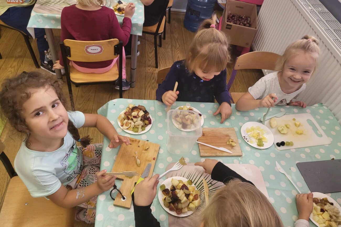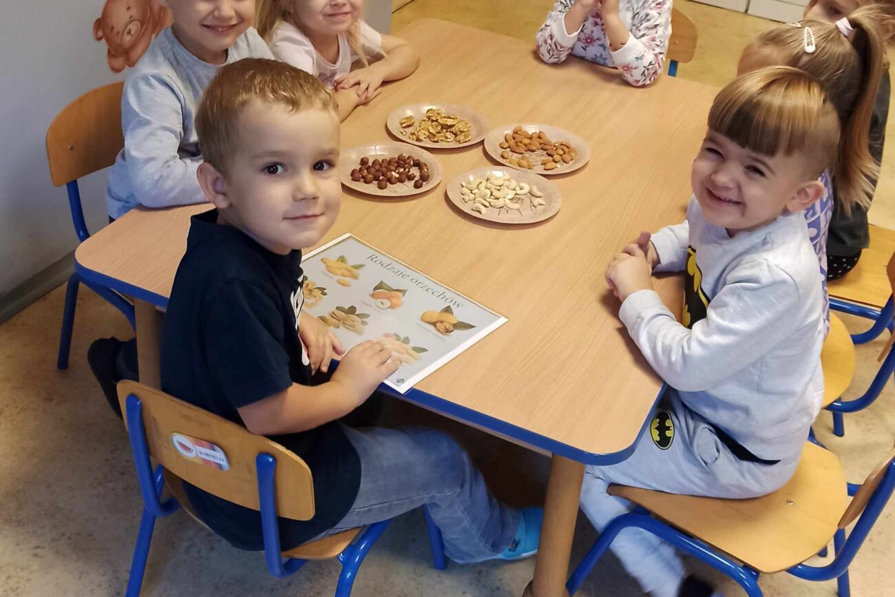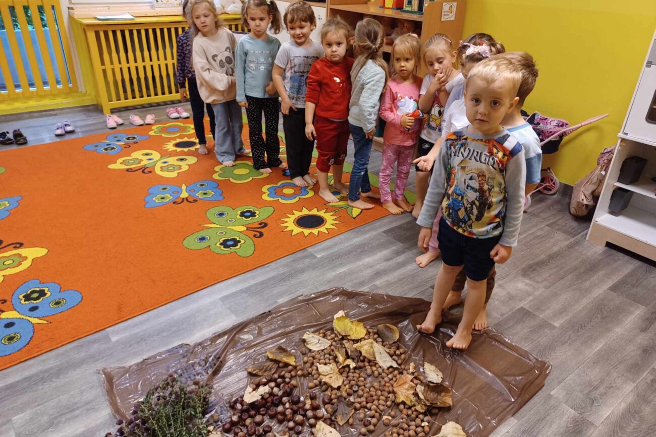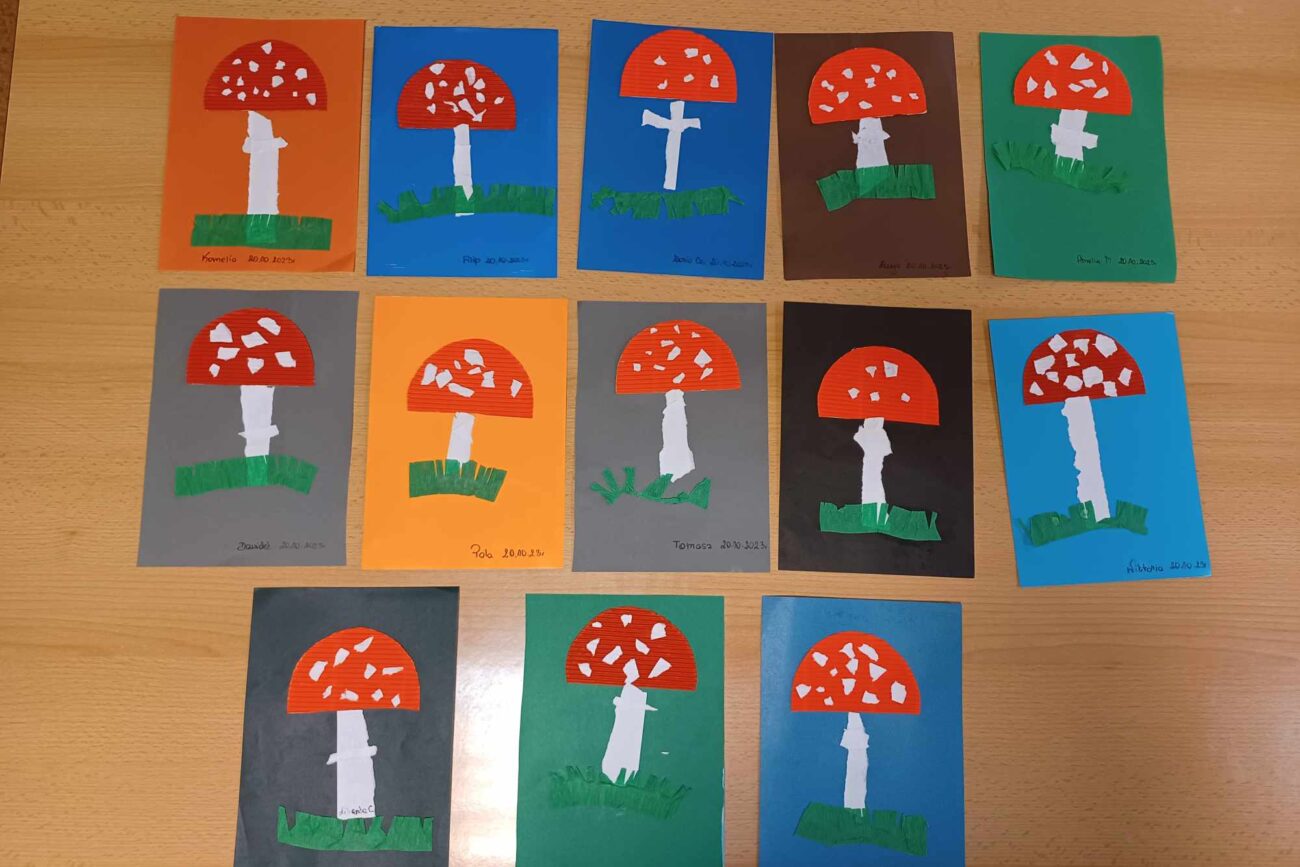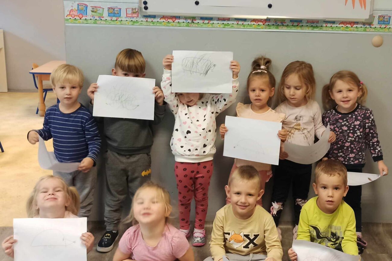 „Misie” w tym tygodniu poznawały dary i mieszkańców lasu. Poznały budowę grzybów, słuchały ciekawostek na temat wiewiórek, klasyfikowały orzechy, a także rysowały jeża. Rozpoczęły przygodę z kodowaniem oraz wykonały grzybki z warzyw.
