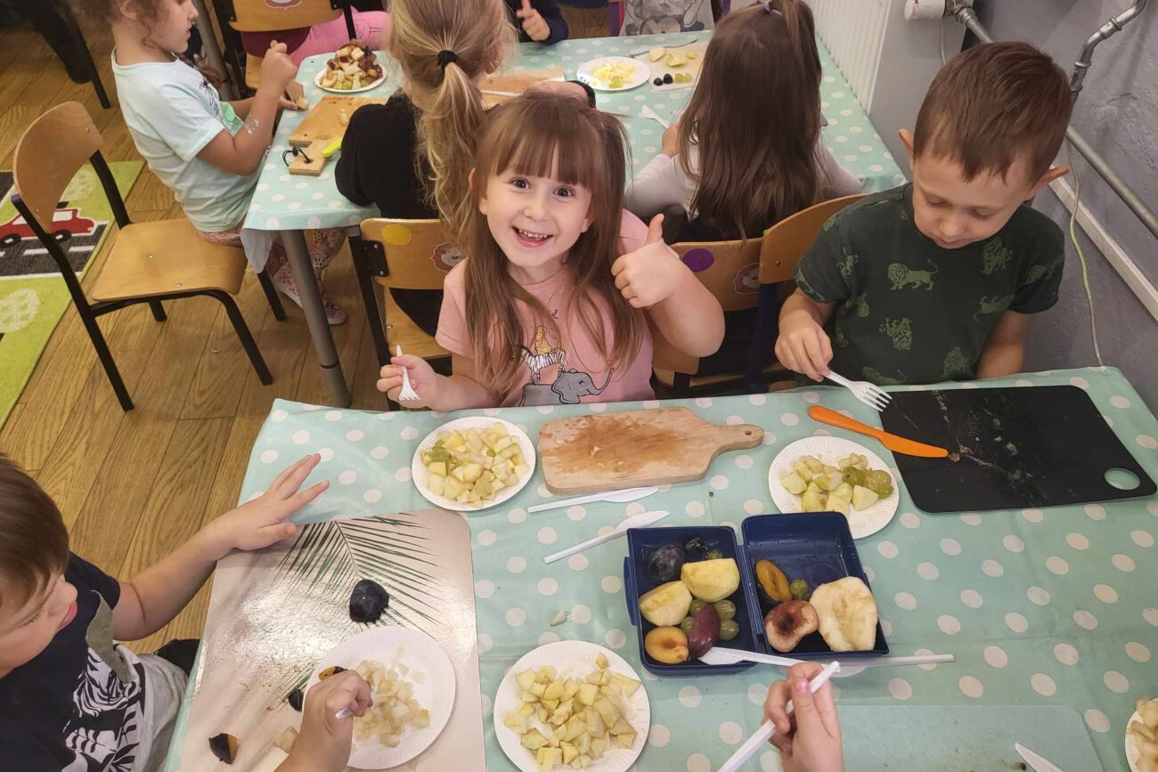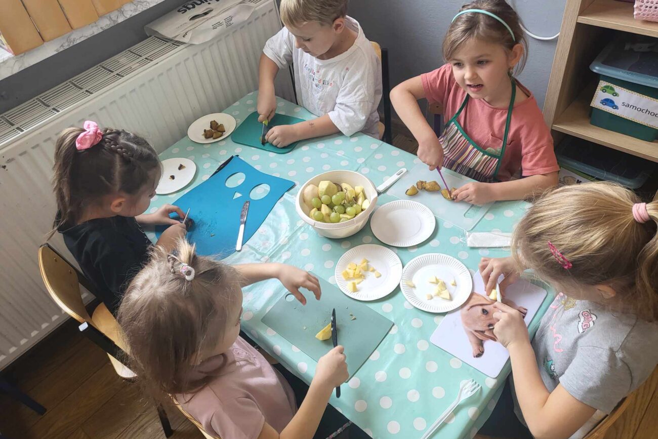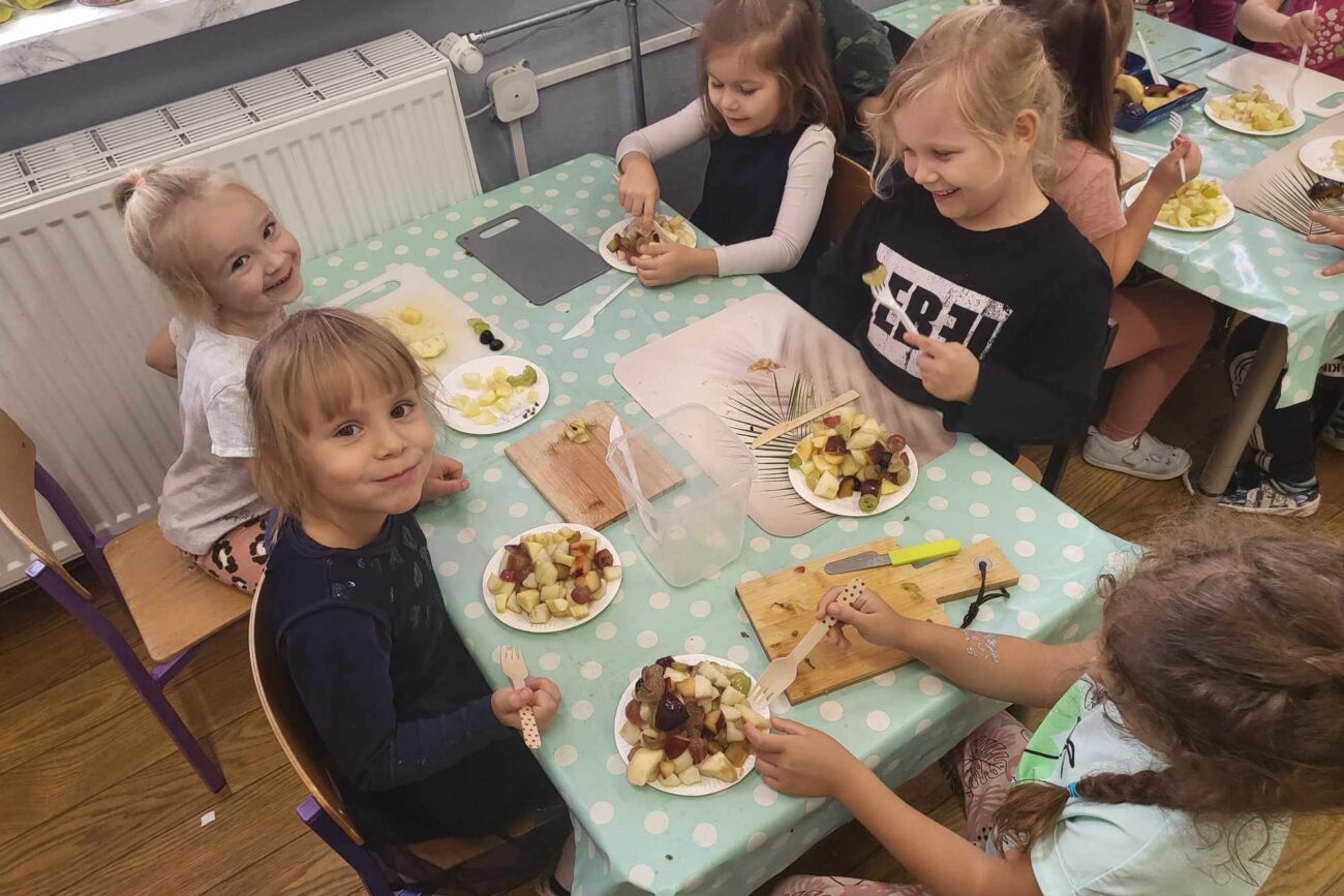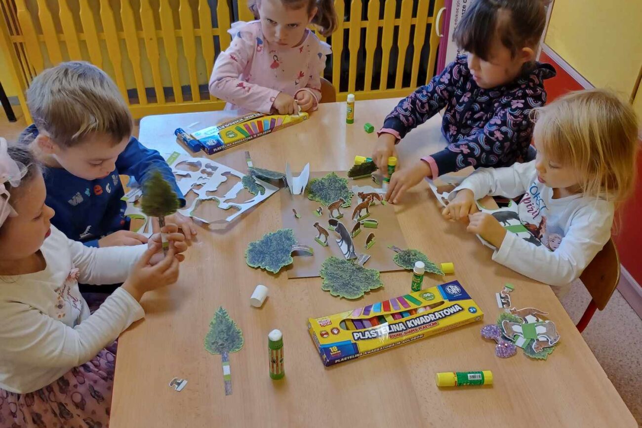 „Misie” w tym tygodniu poznawały dary i mieszkańców lasu. Poznały budowę grzybów, słuchały ciekawostek na temat wiewiórek, klasyfikowały orzechy, a także rysowały jeża. Rozpoczęły przygodę z kodowaniem oraz wykonały grzybki z warzyw.