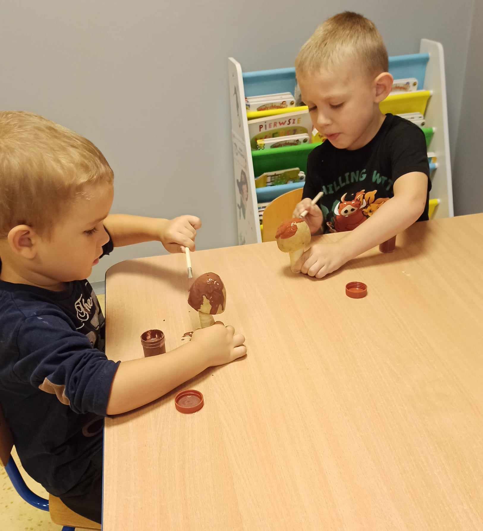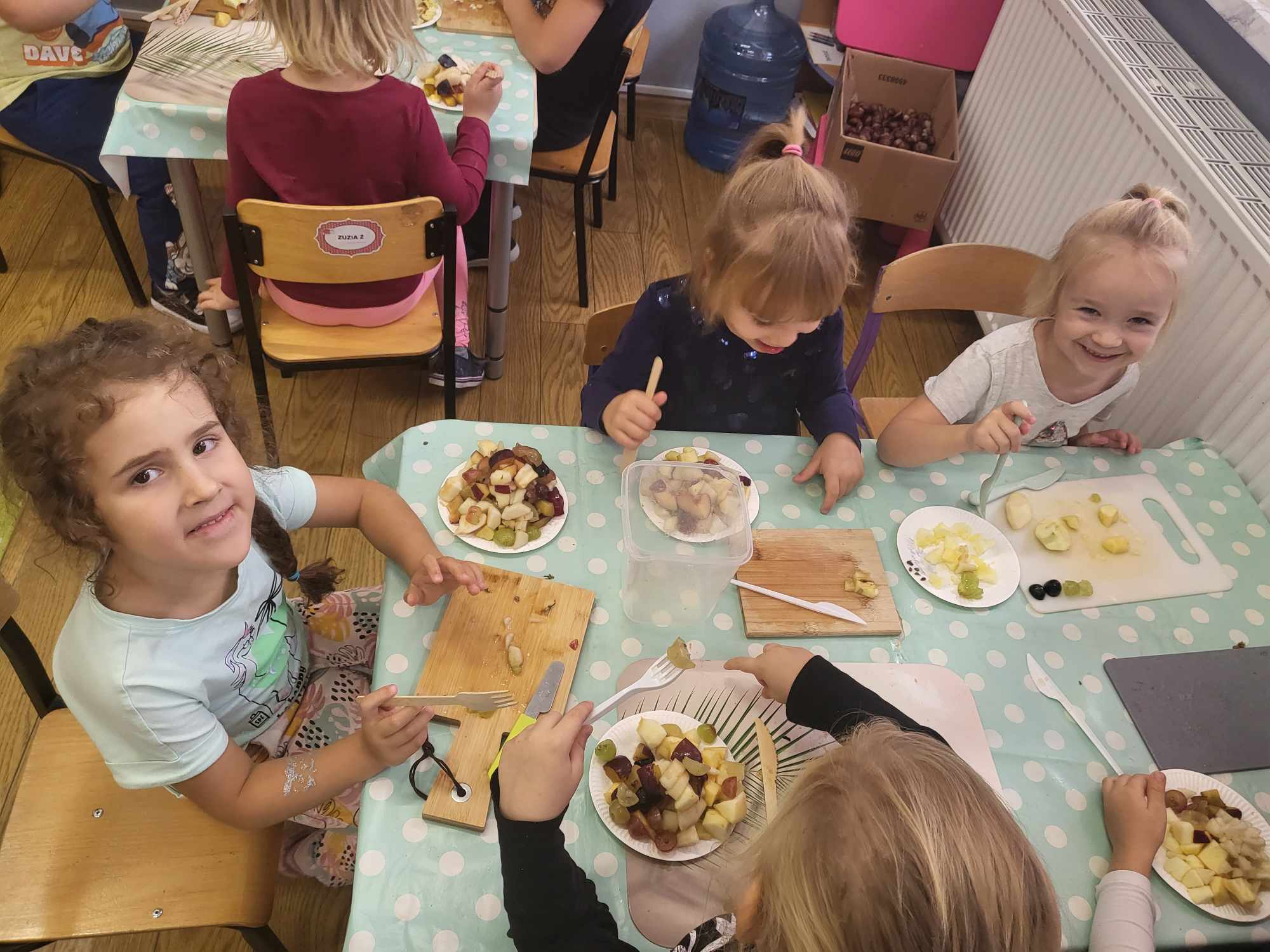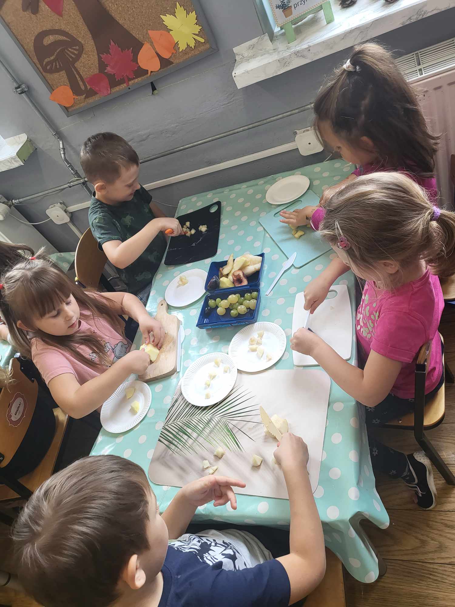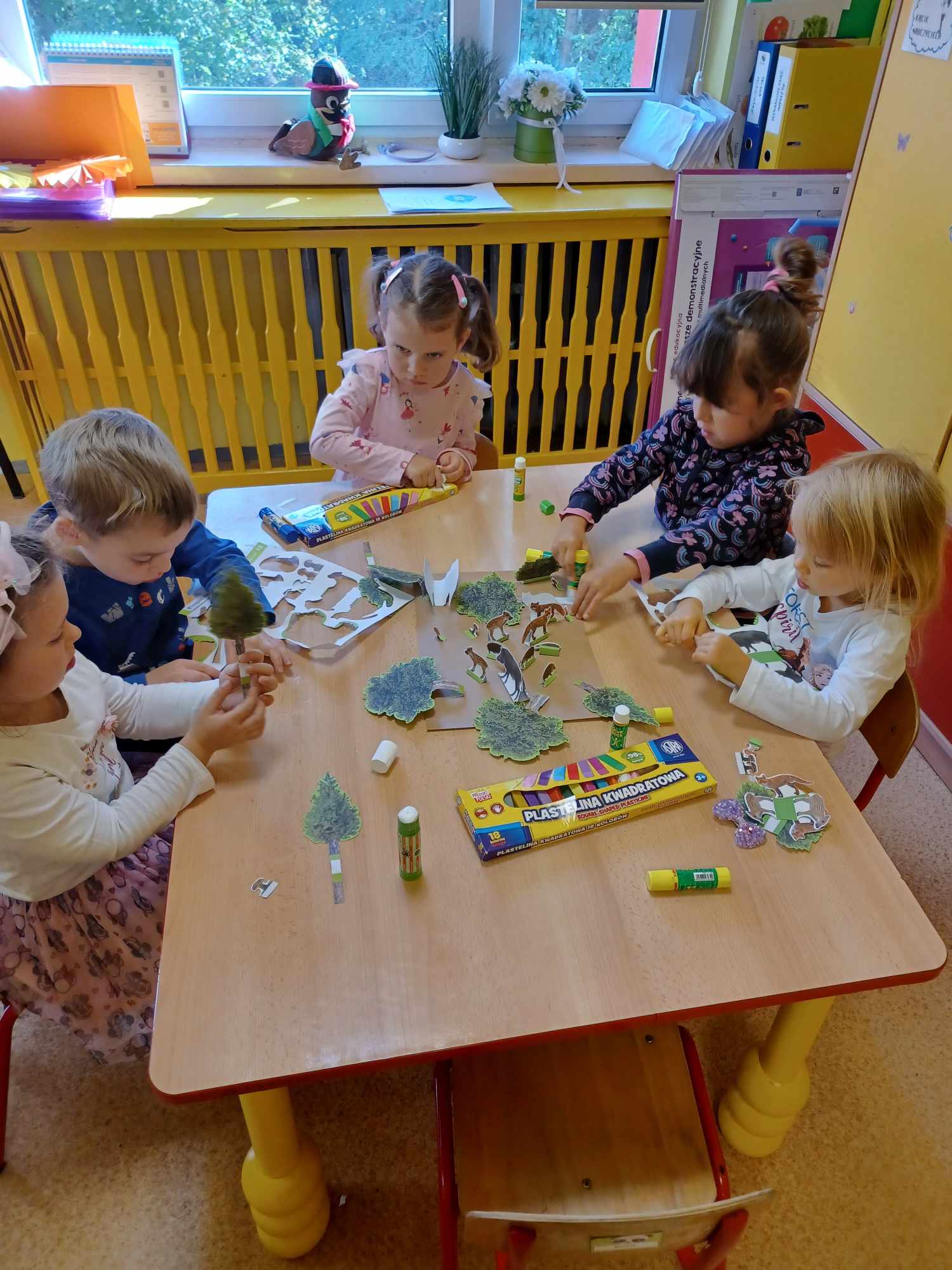 „Misie” w tym tygodniu poznawały dary i mieszkańców lasu. Poznały budowę grzybów, słuchały ciekawostek na temat wiewiórek, klasyfikowały orzechy, a także rysowały jeża. Rozpoczęły przygodę z kodowaniem oraz wykonały grzybki z warzyw.