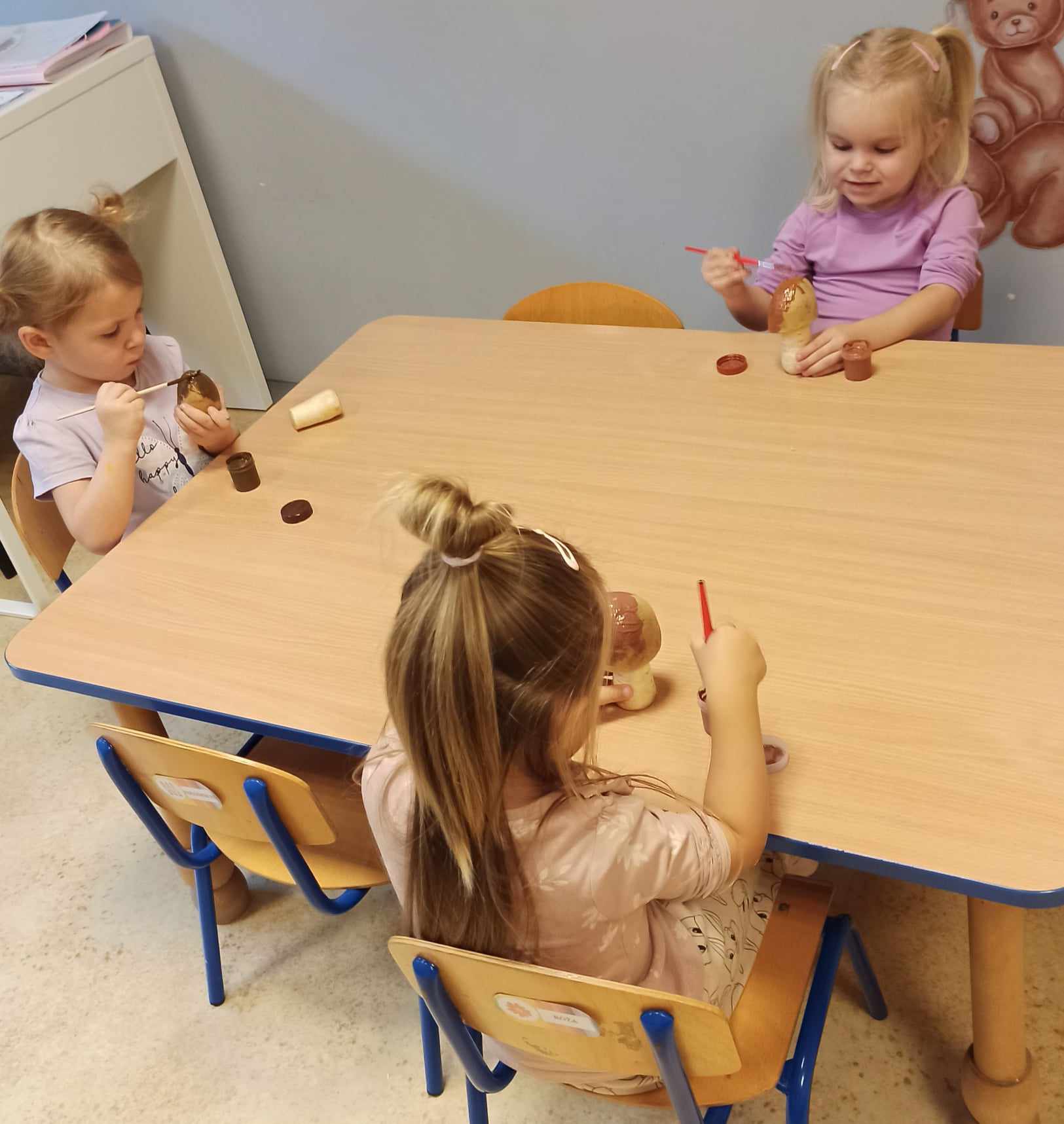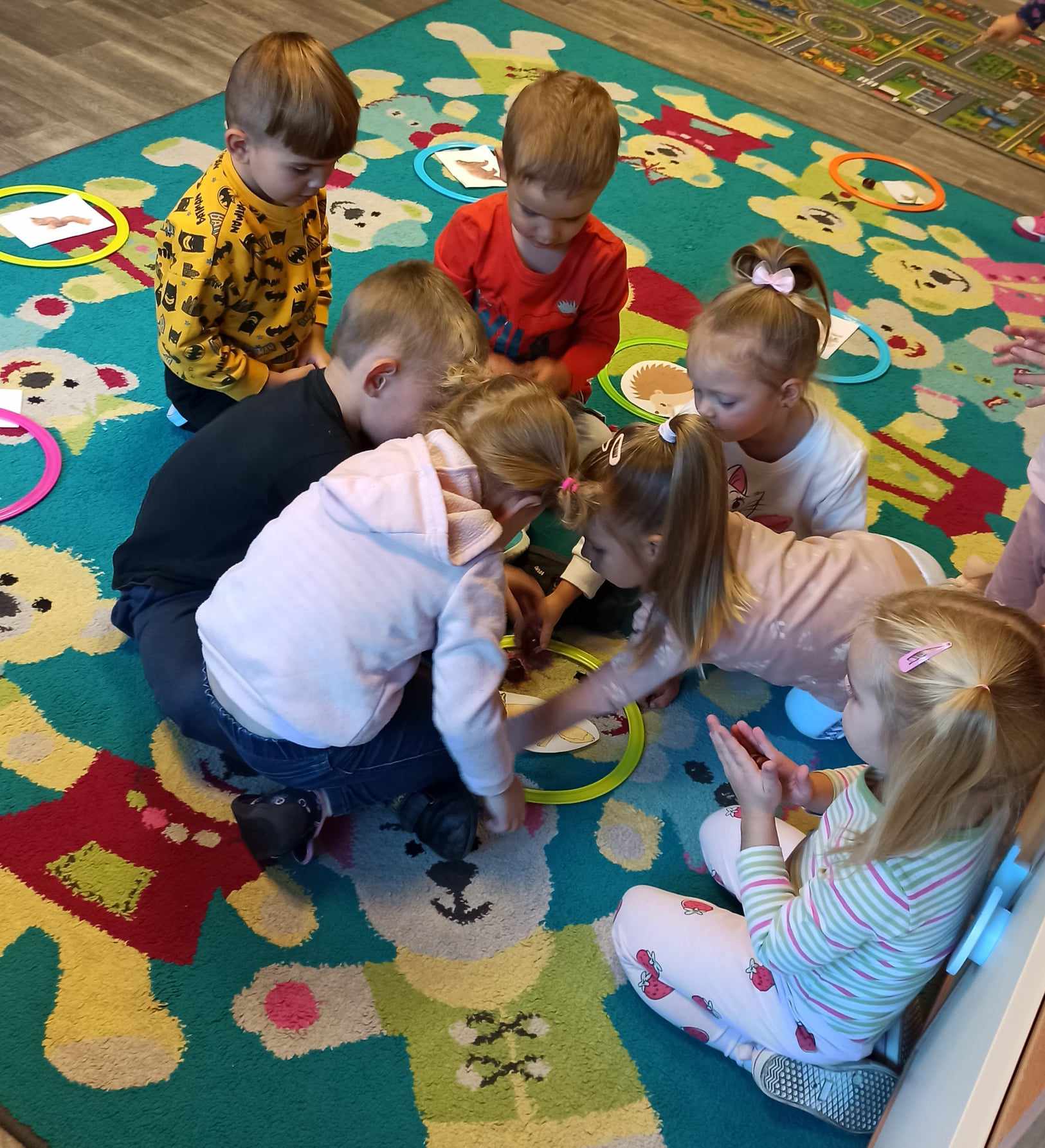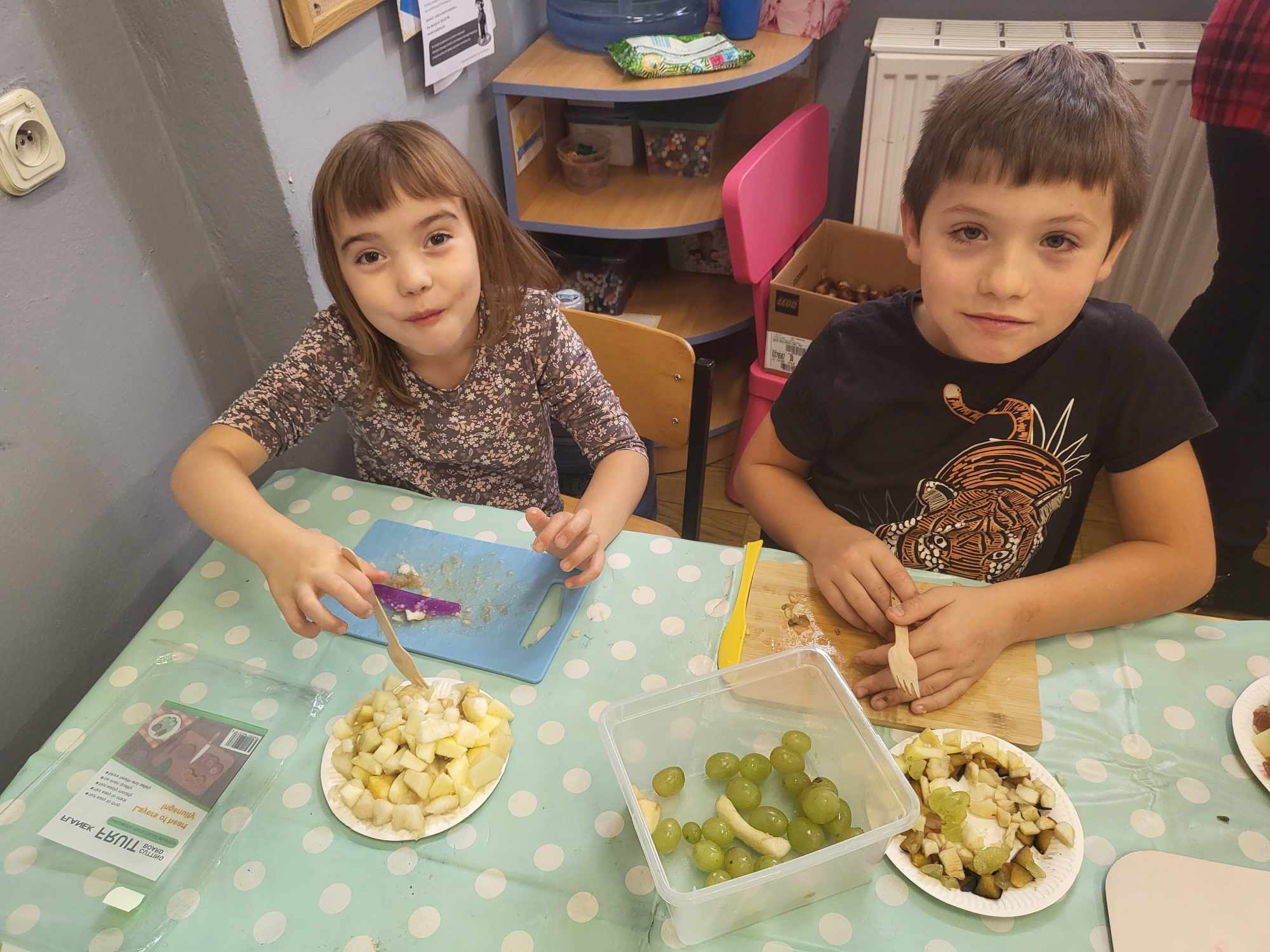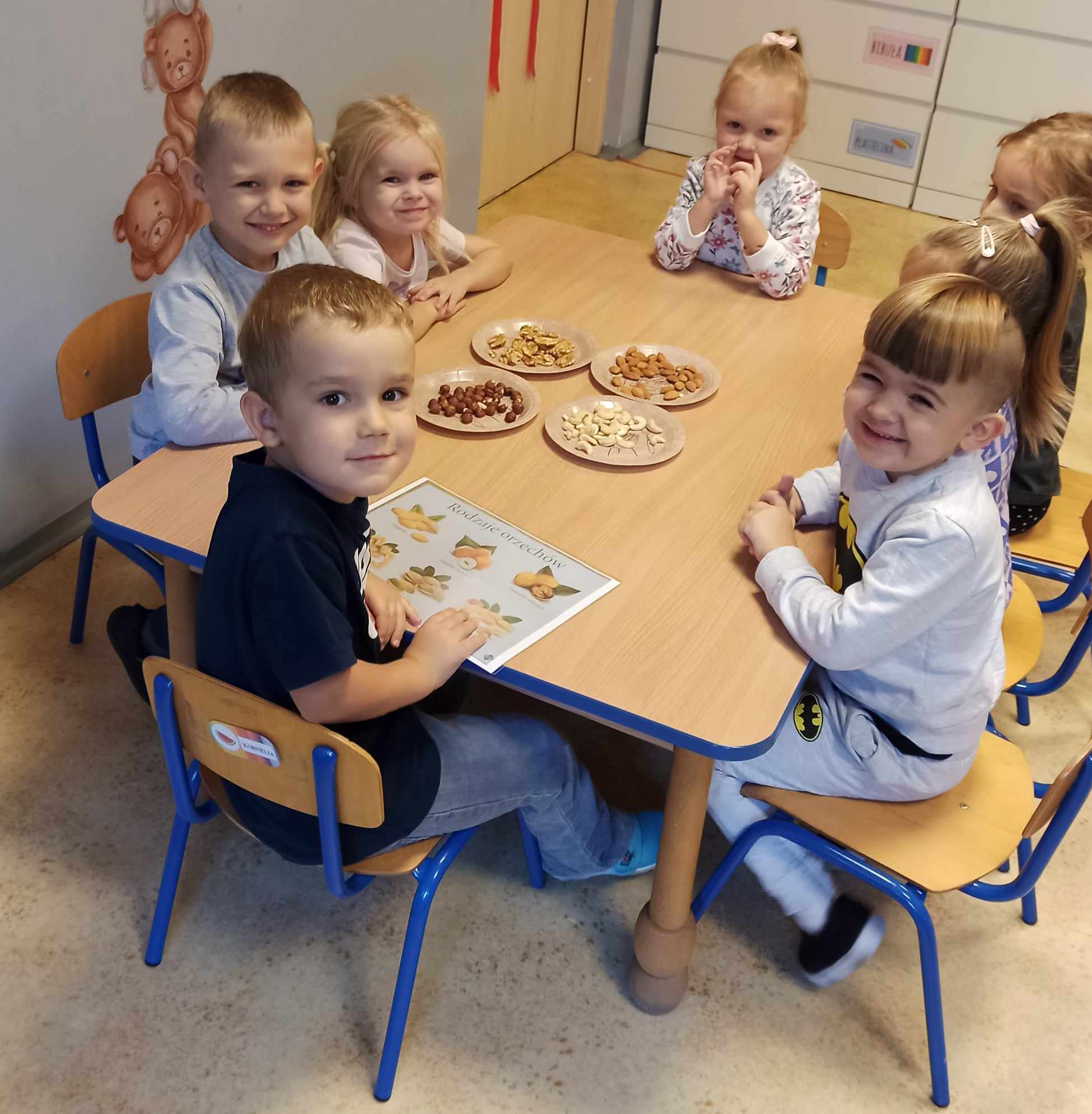 „Misie” w tym tygodniu poznawały dary i mieszkańców lasu. Poznały budowę grzybów, słuchały ciekawostek na temat wiewiórek, klasyfikowały orzechy, a także rysowały jeża. Rozpoczęły przygodę z kodowaniem oraz wykonały grzybki z warzyw.