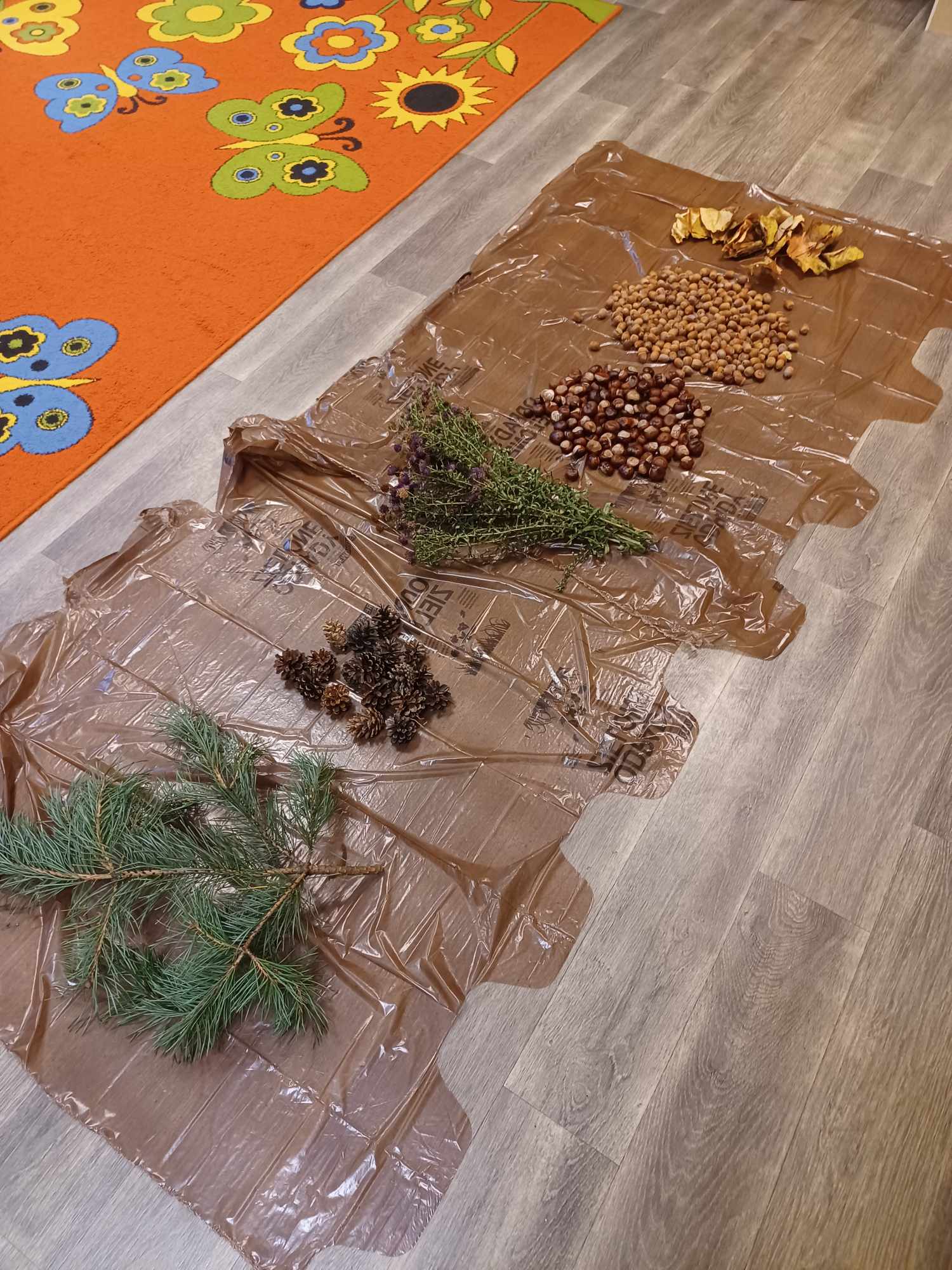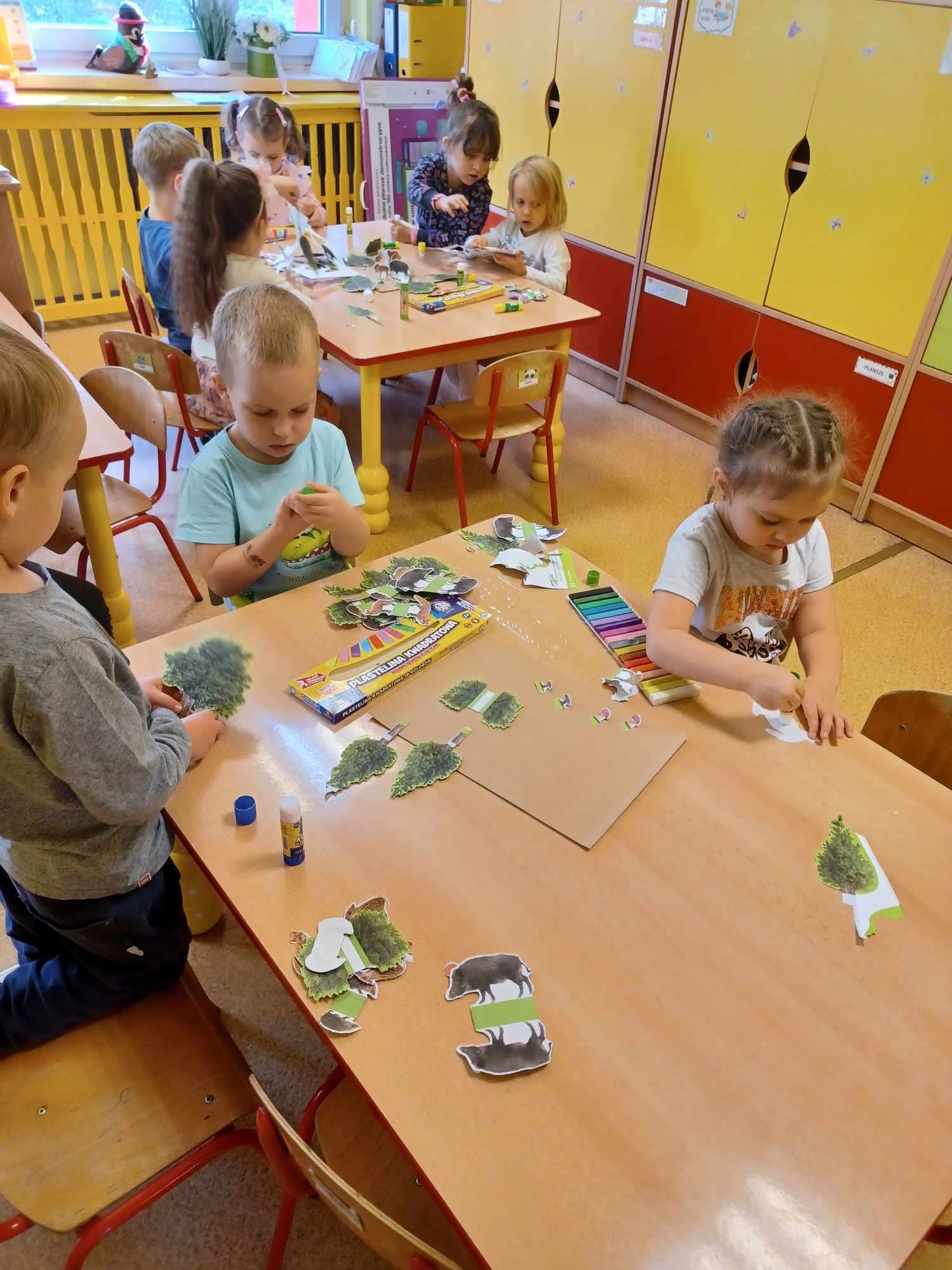 „Motylki” w tym tygodniu rozmawiały o lesie. Poznały zwierzęta, które w nim żyją. Dowiedziały się,że istnieją grzyby jadalne oraz takie, których jeść nie możemy. Wykonały dwie prace plastyczne: „Makietę lasu” oraz „Muchomorki”. Zapoznały się z darami lasu poprzez zmysł wzroku oraz dotyku, chodzac po przygotowanej ścieżce sensorycznej.