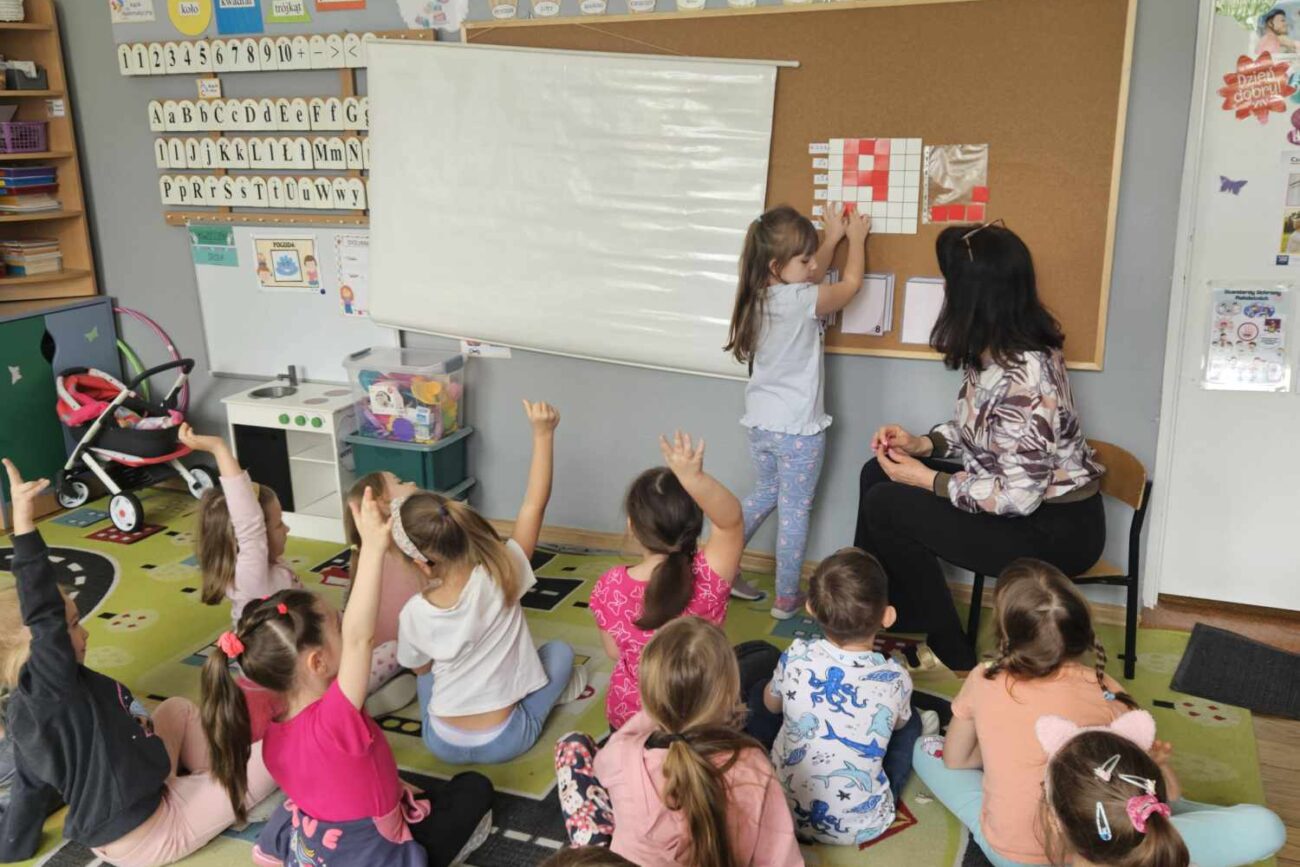 Grupa ,,Biedronki” w tym tygodniu w ramach realizacji modułu: ,,Profilaktyki chorób odkleszczowych z programu Sanepid: ,,Klub Zdrowego Przedszkolaka”, poprzez pogadankę poznała zasady ochrony przed kleszczami, ciekawostki na ich temat oraz choroby przez nie przenoszone. Rozwiązywała także tematyczne karty pracy. Poznała cyfrę 9 oraz z okazji Dnia Flagi rozmawiała o symbolach narodowych, wykonując pracę plastyczną. Uczestniczyła w zabawach na placu zabaw z wykorzystaniem sprzętu ogrodowego.