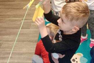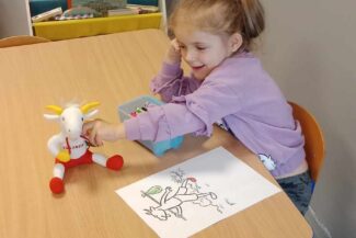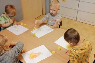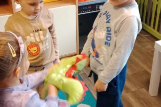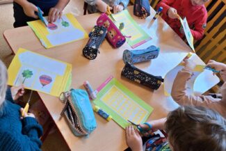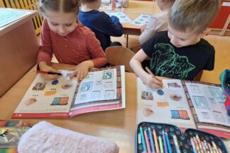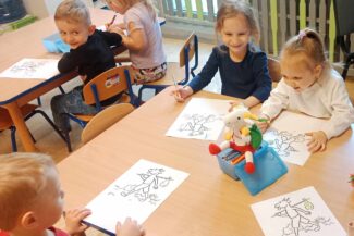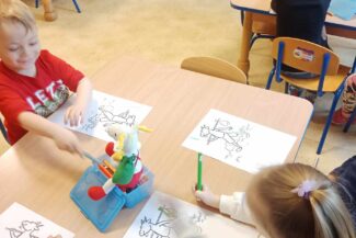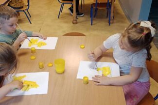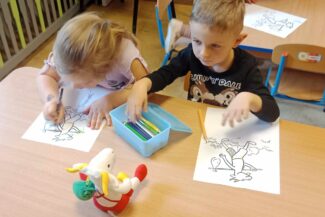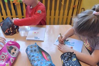i układała do niego ilustracje. Wykonała zakładki do książki oraz zamieniła się w ilustratorów swoich pierwszych książeczek. Urodziny obchodził Dawidek.