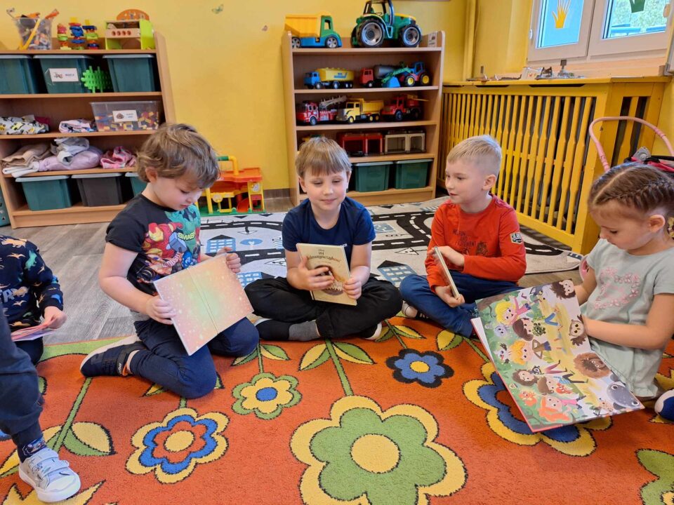 Grupa „Motylki” w tym tygodniu rozmawiała o książkach i tym sposobem cały tydzień świętowała Światowy Dzień Książki. Poznała jak książki powstają. Zaznajomiła się z pojęciami drukarnia, pisarz, ilustrator. Poznała również zasady korzystania z książek. Wysłuchała krótkiej bajki pt.”Prośba ksiażeczki”