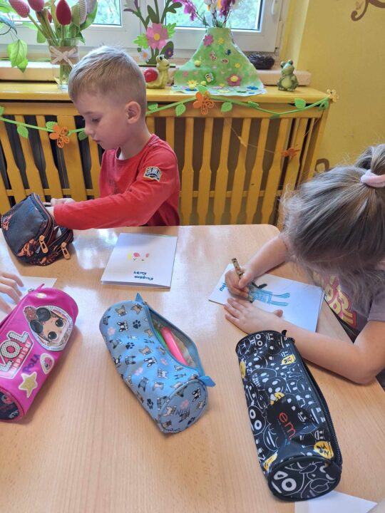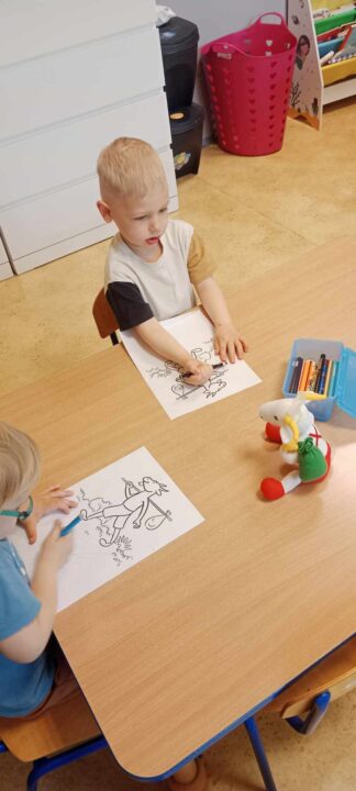 i układała do niego ilustracje. Wykonała zakładki do książki oraz zamieniła się w ilustratorów swoich pierwszych książeczek. Urodziny obchodził Dawidek.